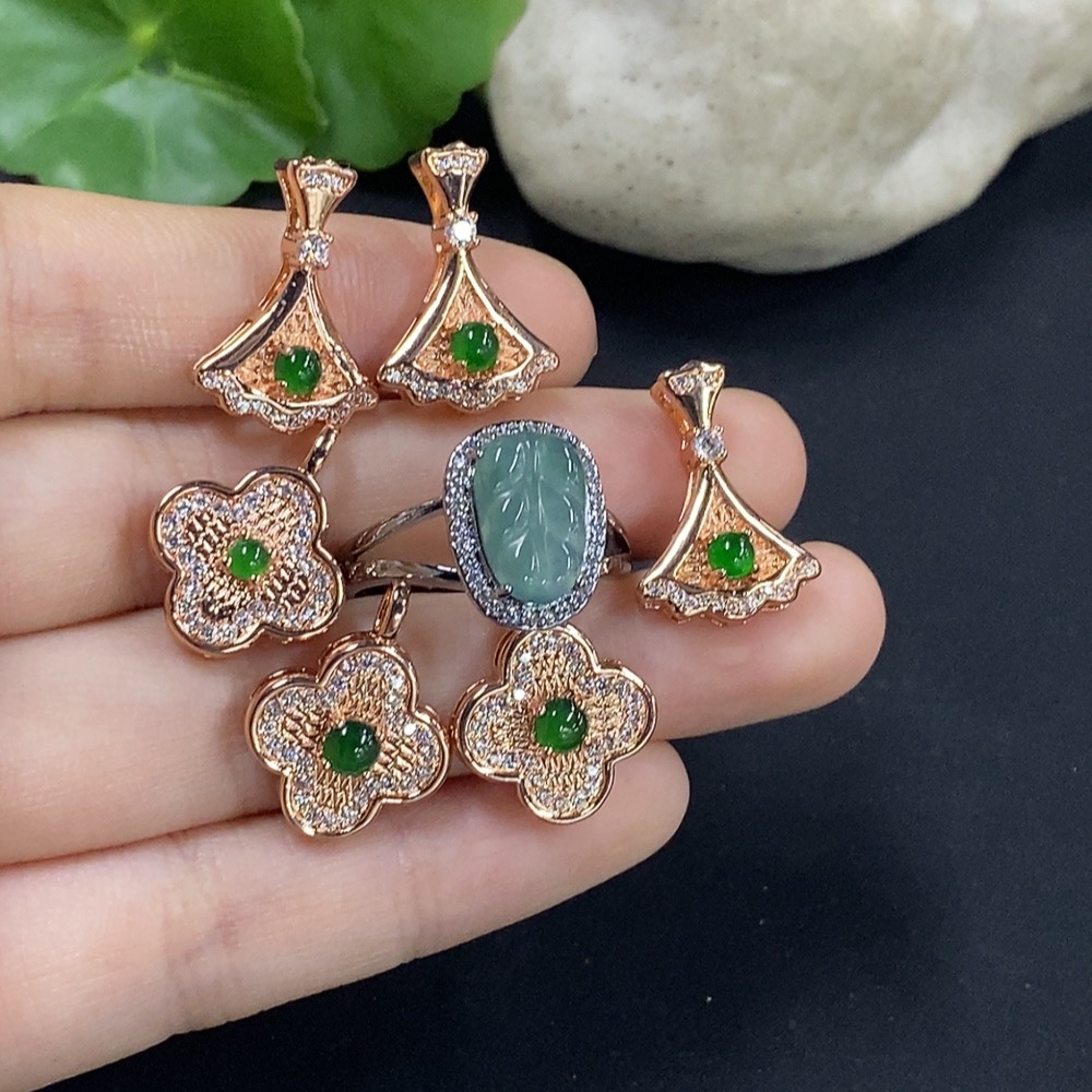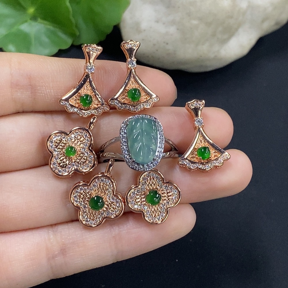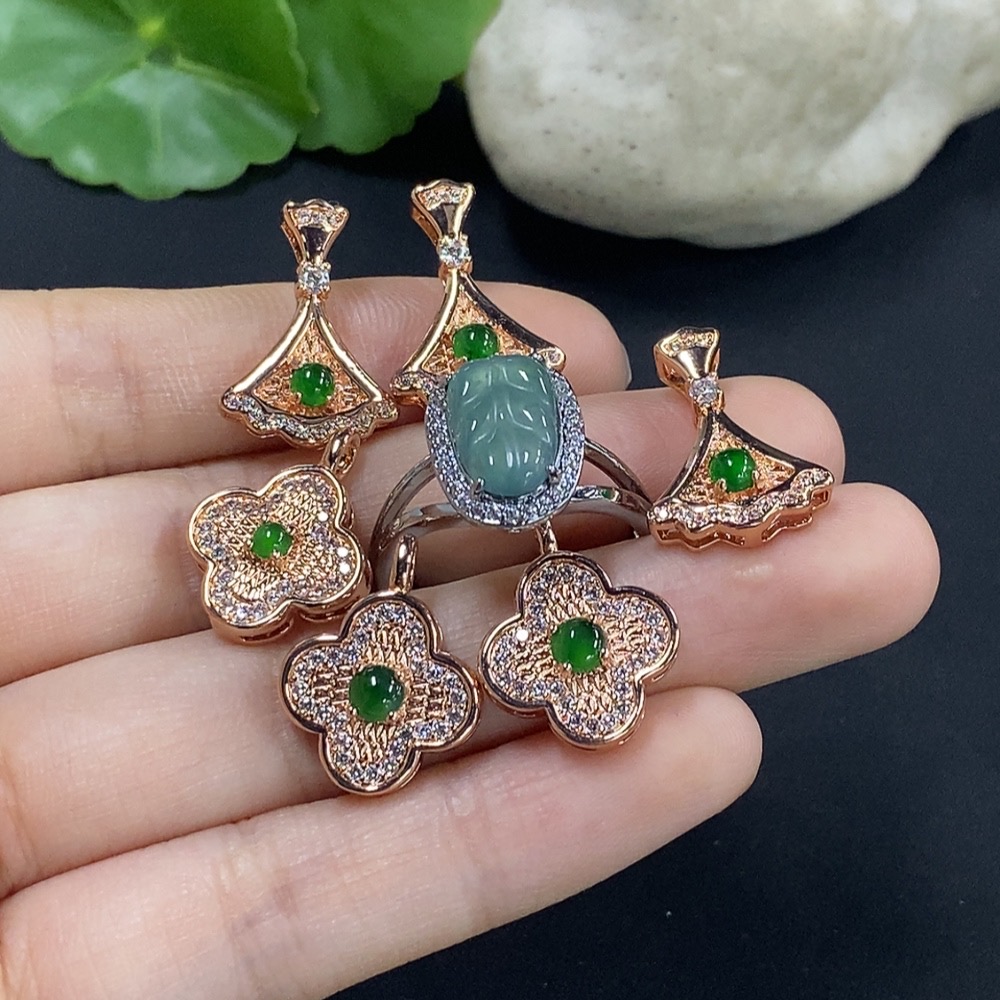 Jadeite cabochon pendant / adjustable ring (non-gold setting)