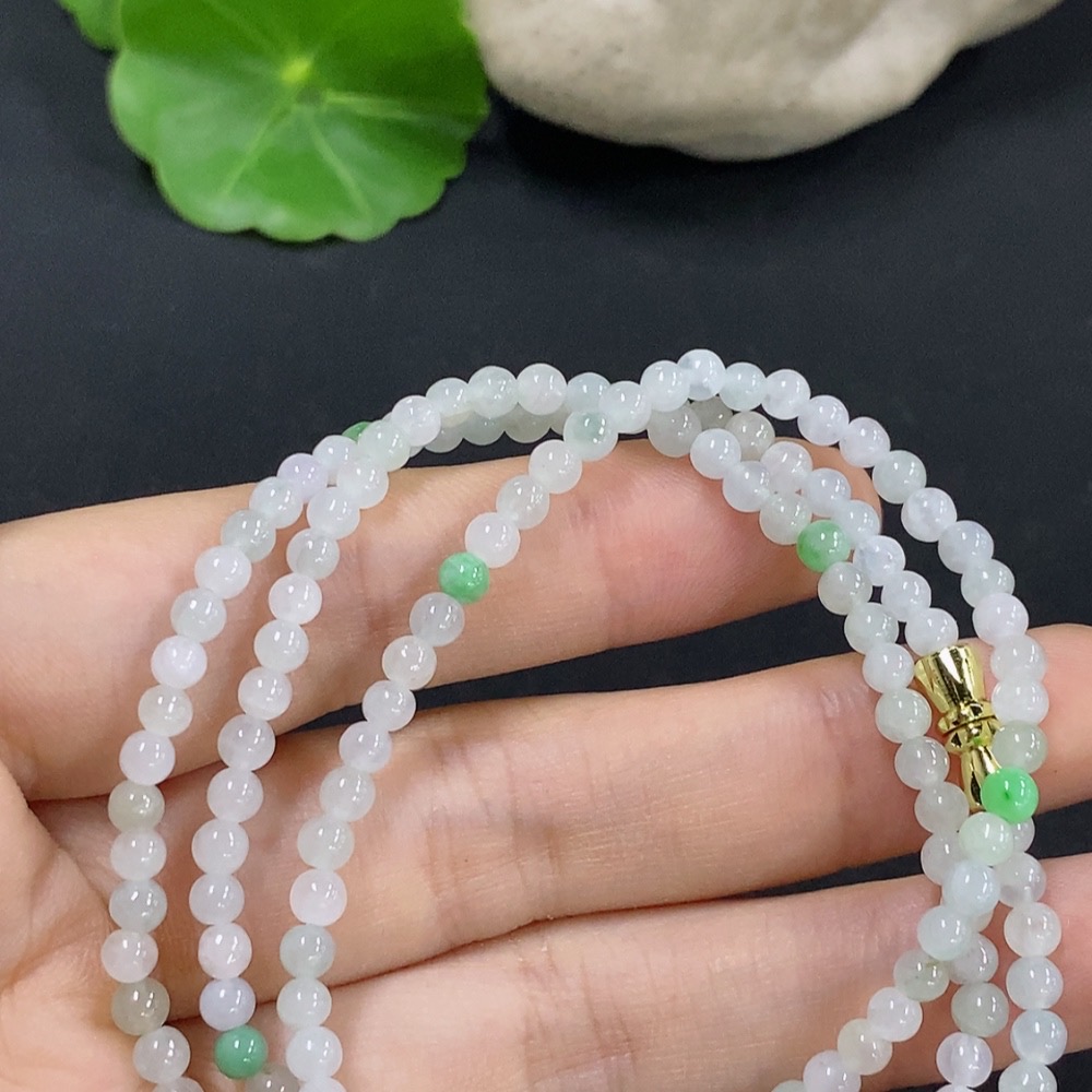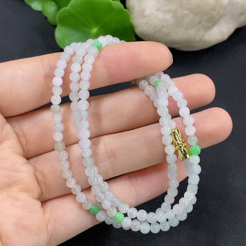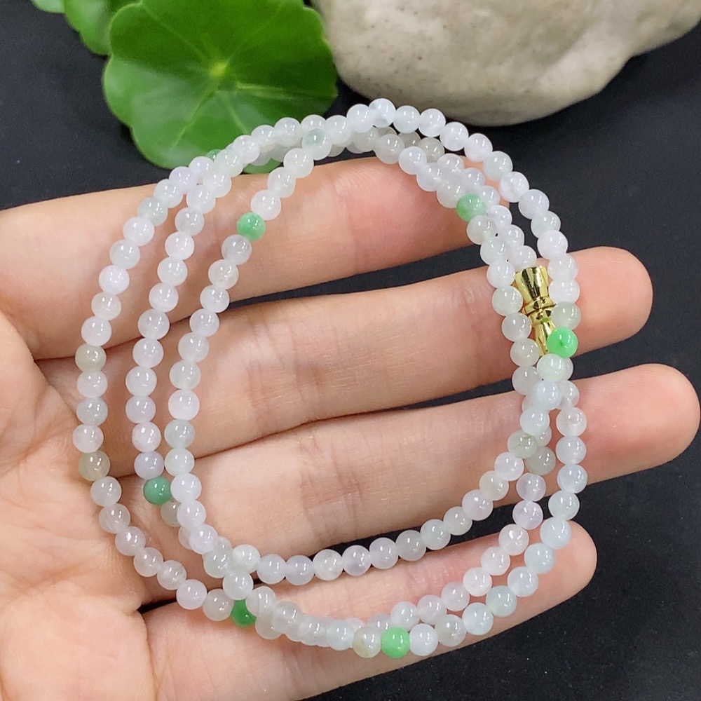 Jadeite Beaded Necklace Approximately 3.7mm Non-Gold Inlaid Total Weight About 13.07g