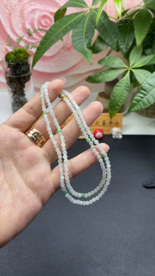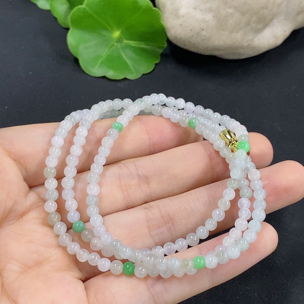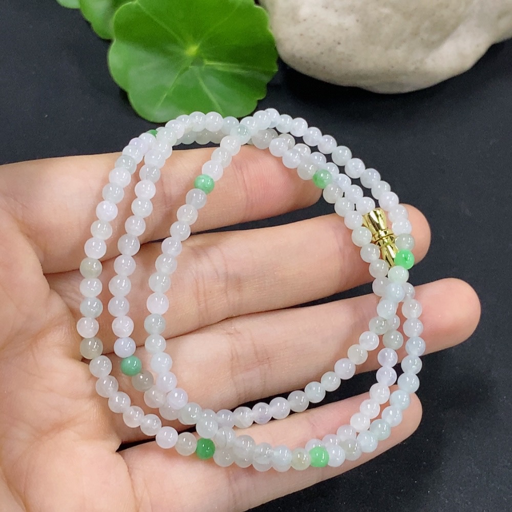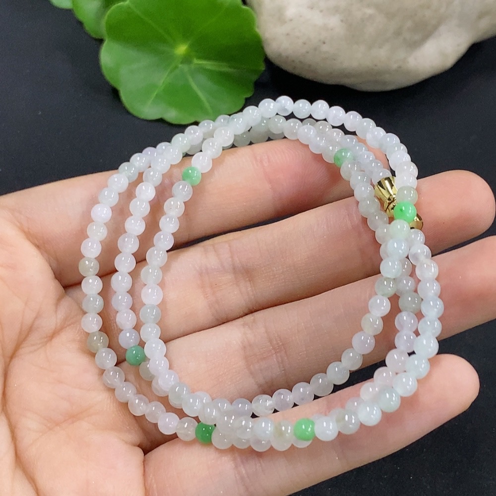 Jadeite Beaded Necklace Approximately 3.7mm Non-Gold Inlaid Total Weight About 13.07g
