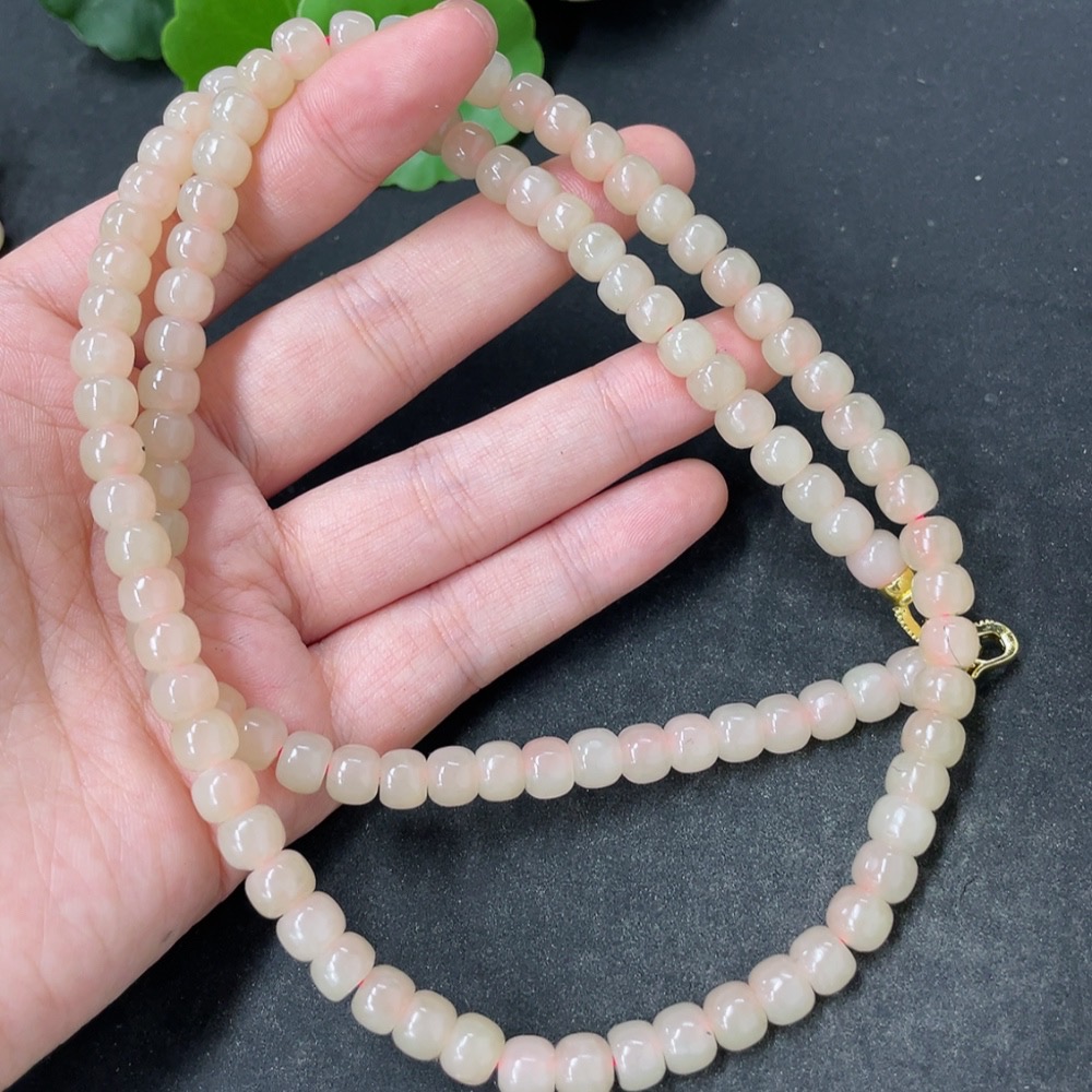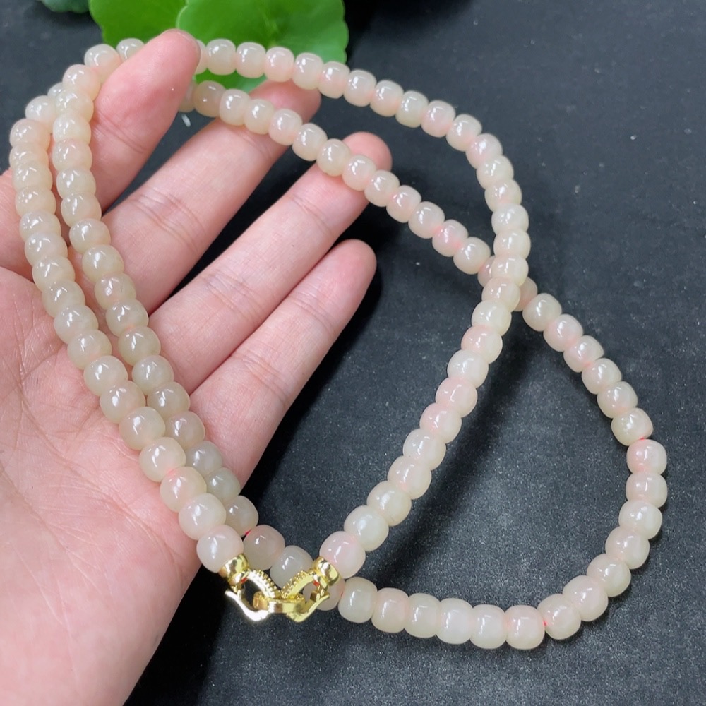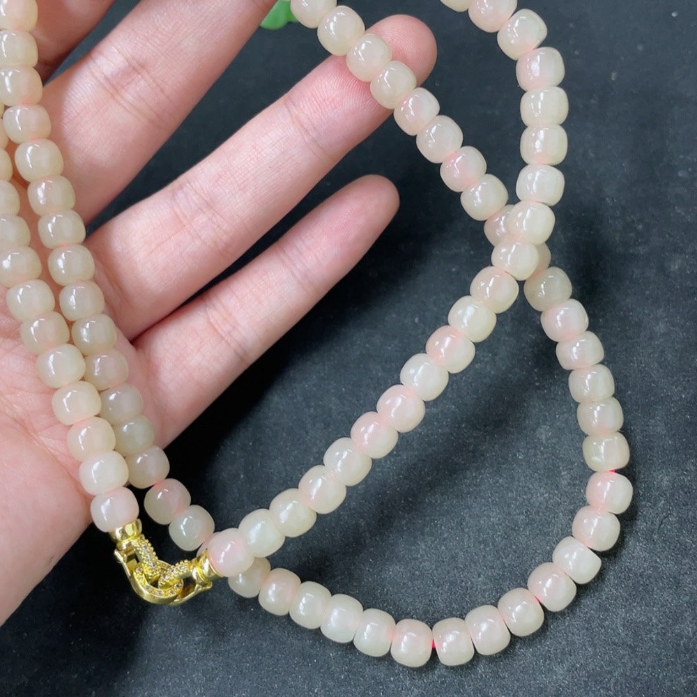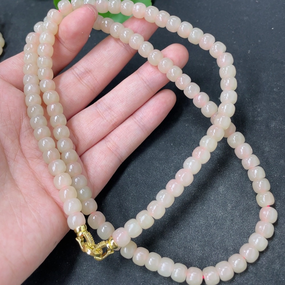 Hetian Jade Bead Necklace Non-Gold Approx. 6.6mm Total Weight Approx. 55.3g