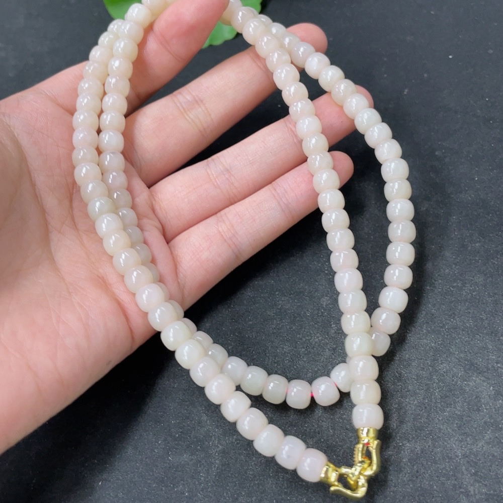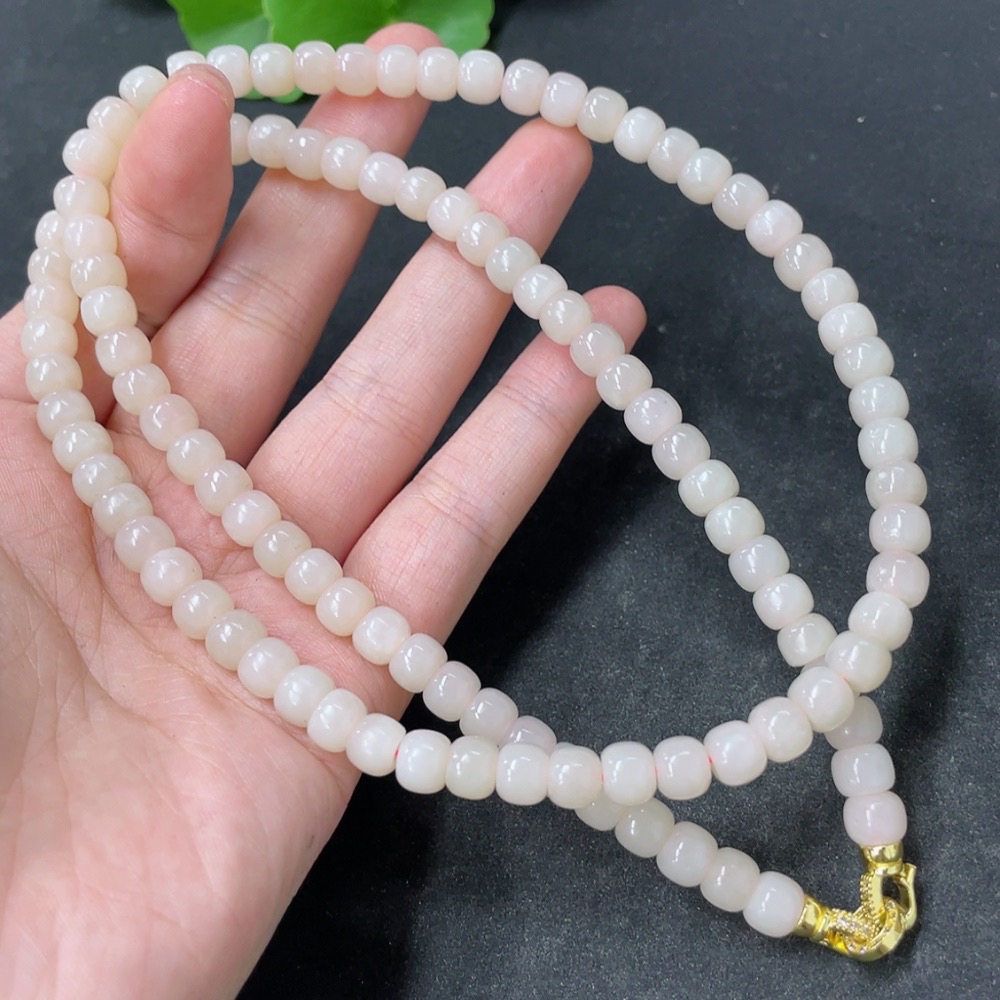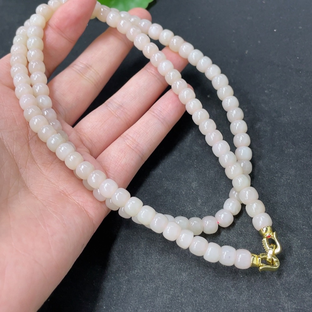 Hetian Jade Bead Chain Non-Gold 6.5mm Approx. Total Weight 54g