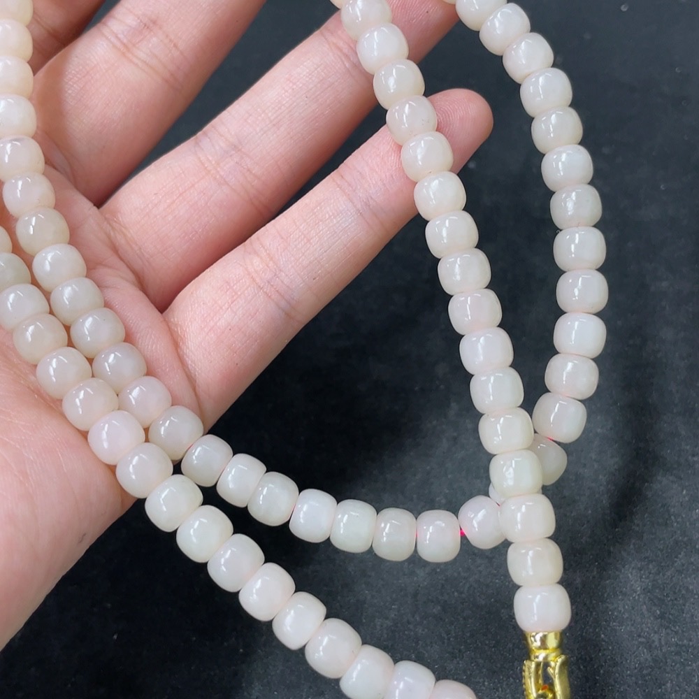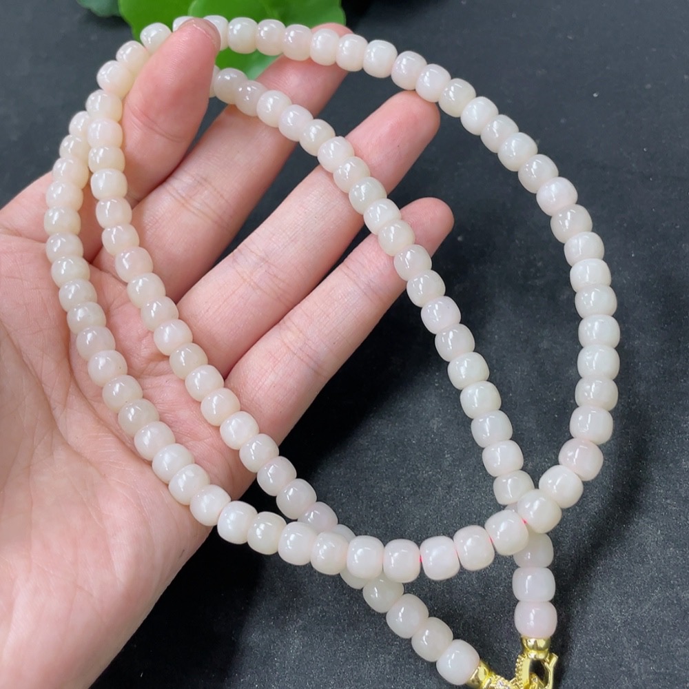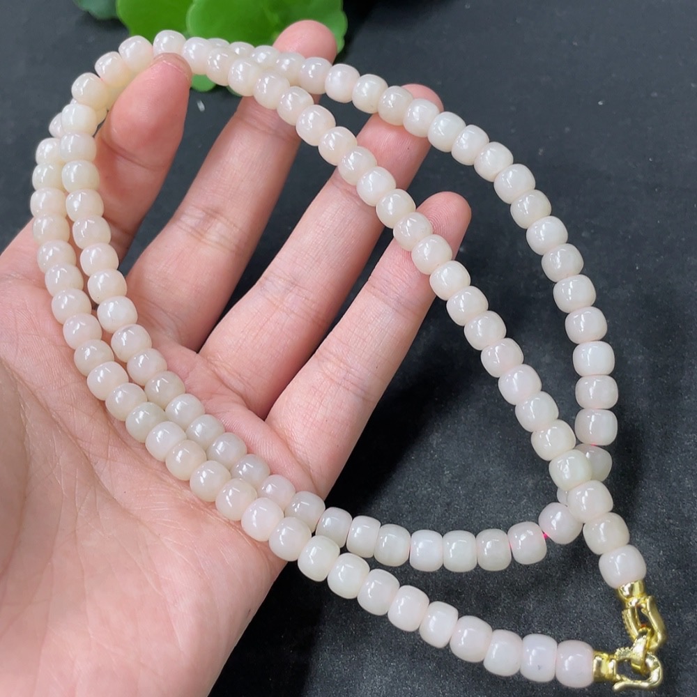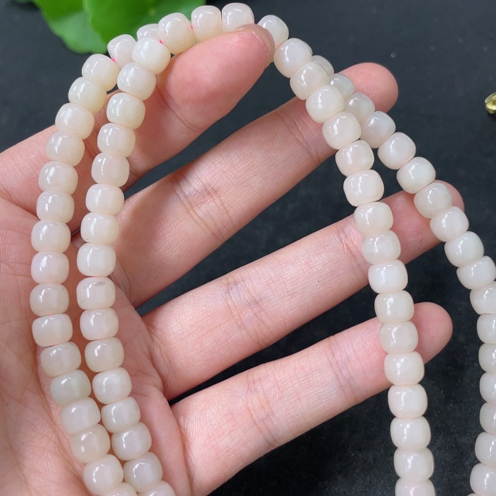 Hetian Jade Bead Chain Non-Gold 6.5mm Approx. Total Weight 54g