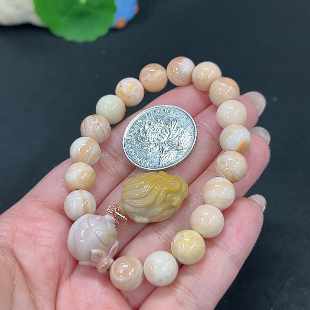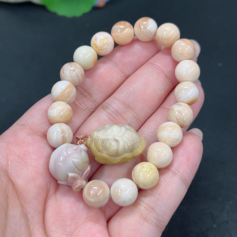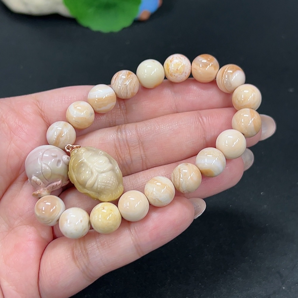 Alashan Agate Bracelet + Inlaid Pendant with Other Mineral Components, Total Weight Approx. 32.9g, Non-Gold