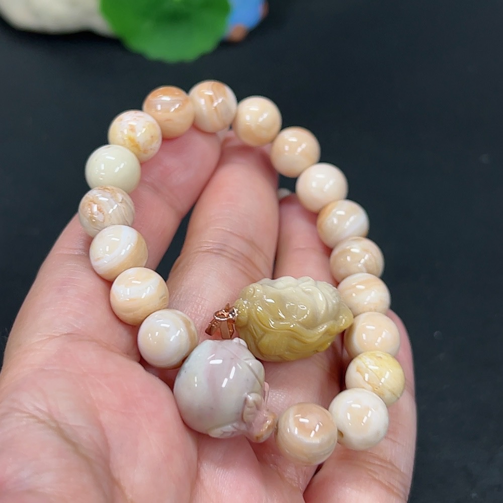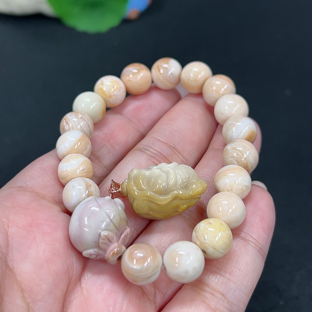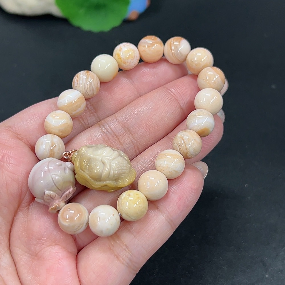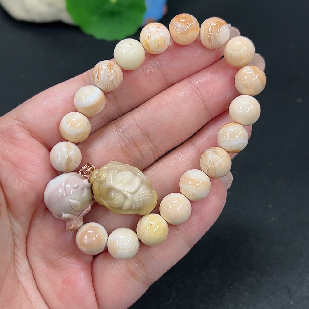 Alashan Agate Bracelet + Inlaid Pendant with Other Mineral Components, Total Weight Approx. 32.9g, Non-Gold