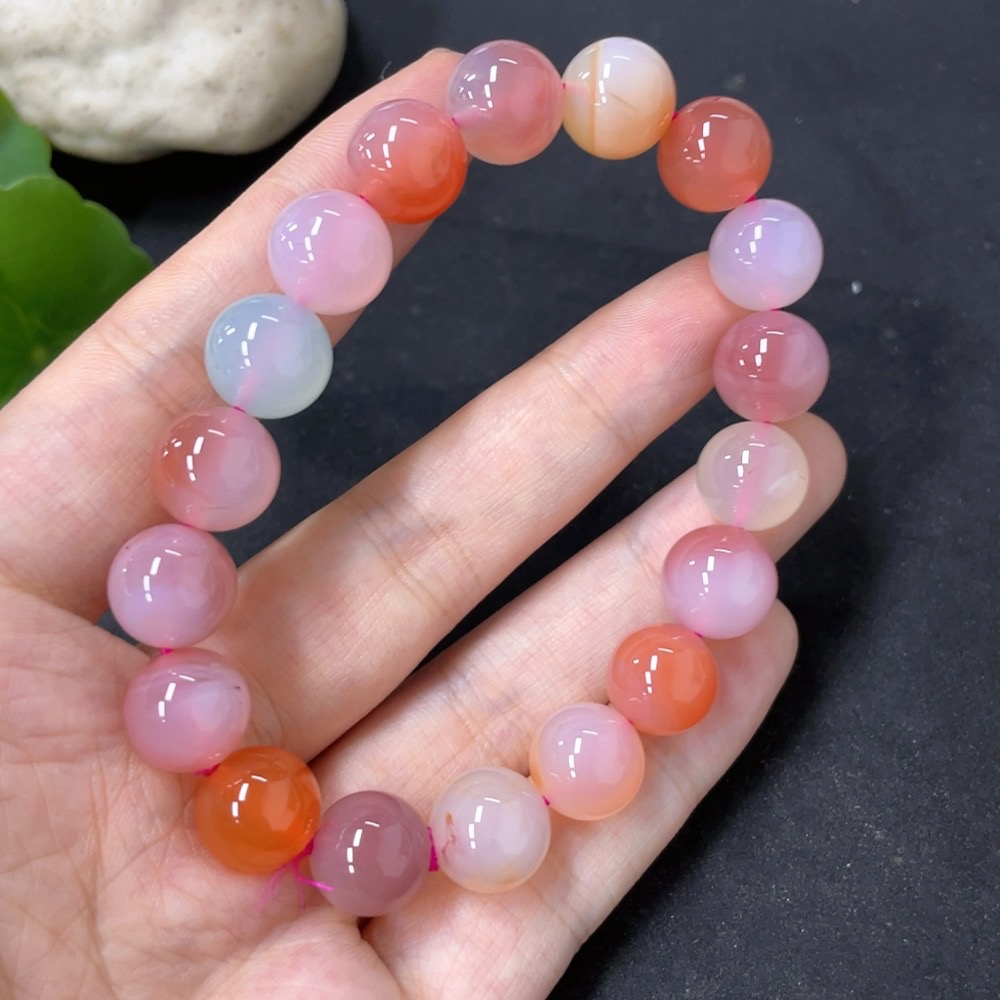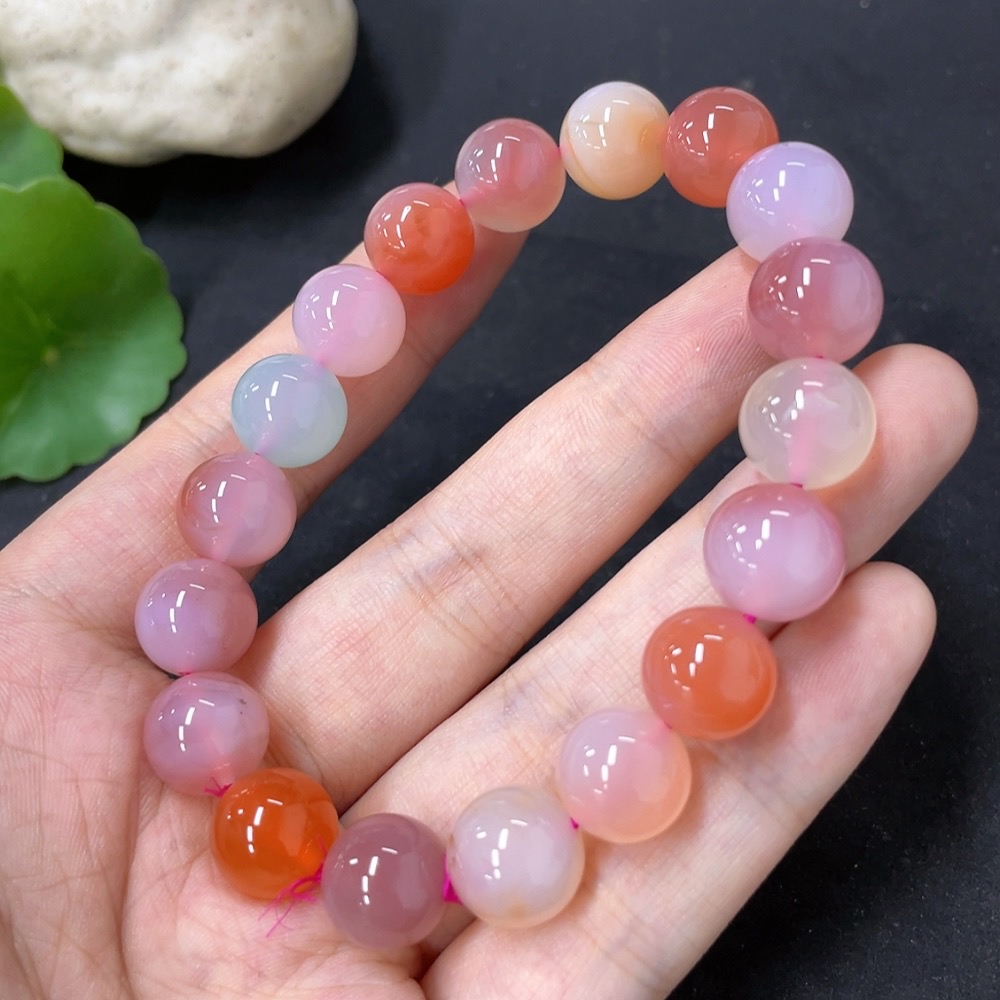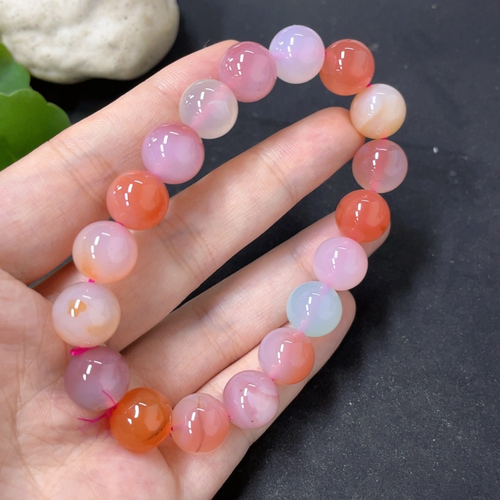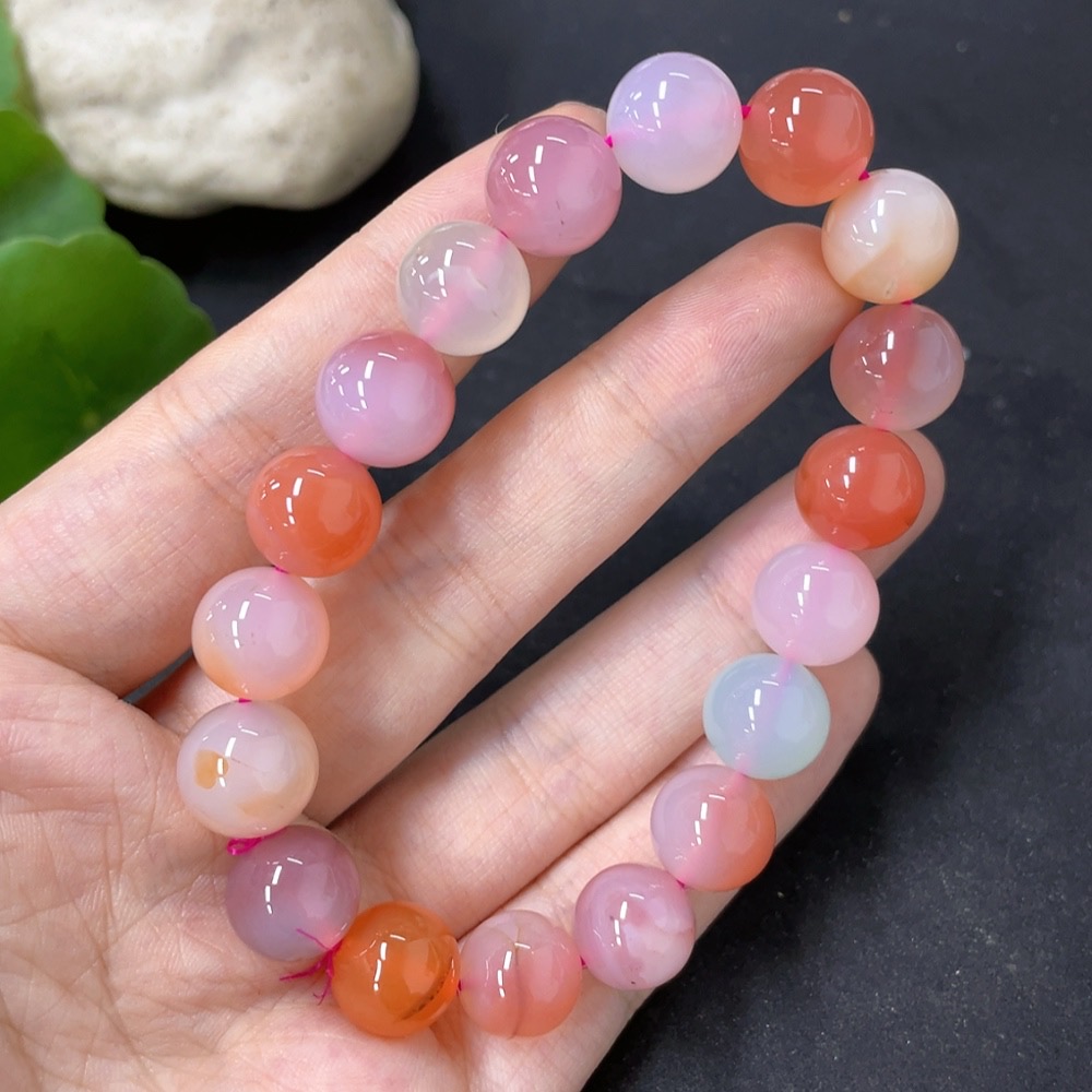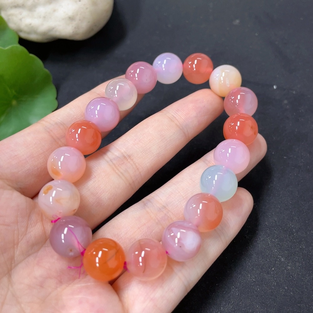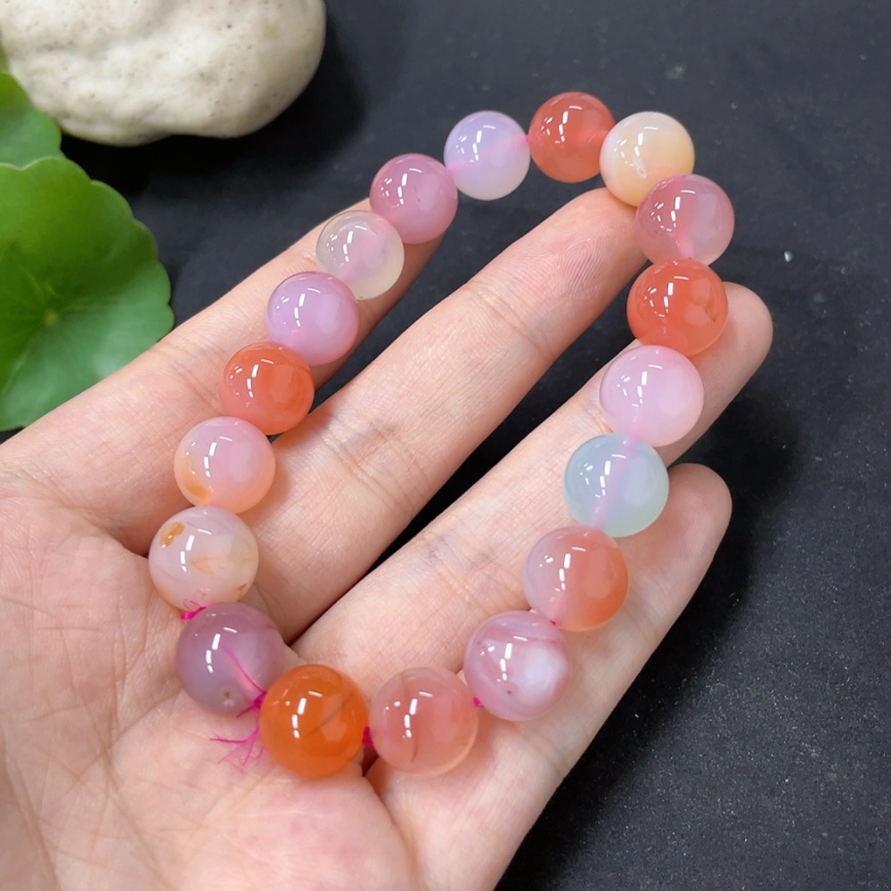 Salt Source Agate Bracelet with Visible Organic Matter, Approx. 10.8mm Beads, Total Weight ~34.2g