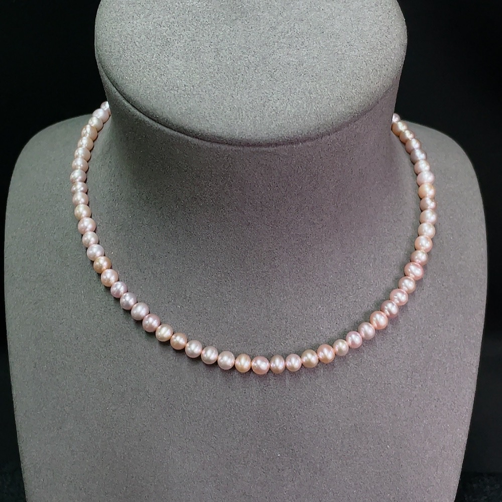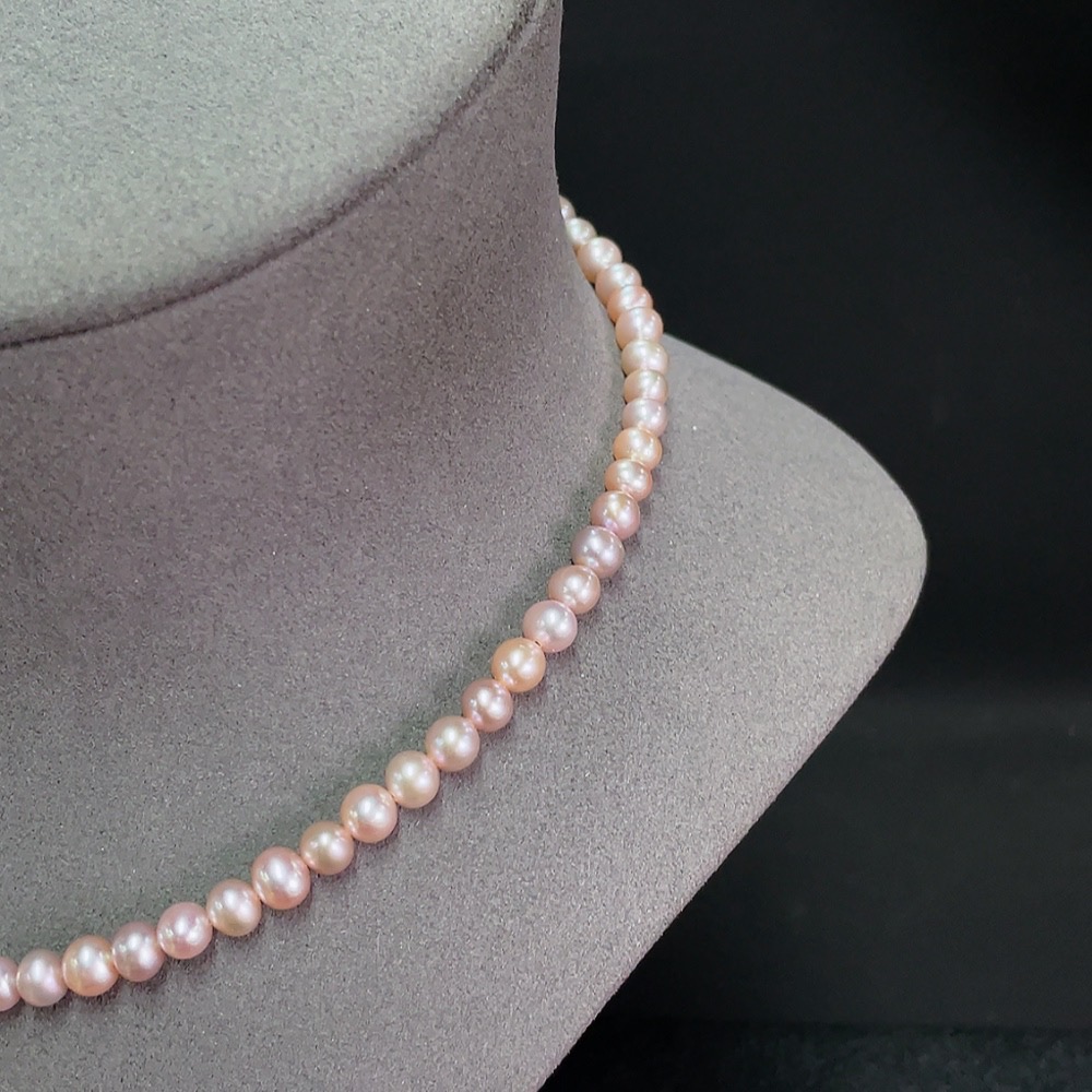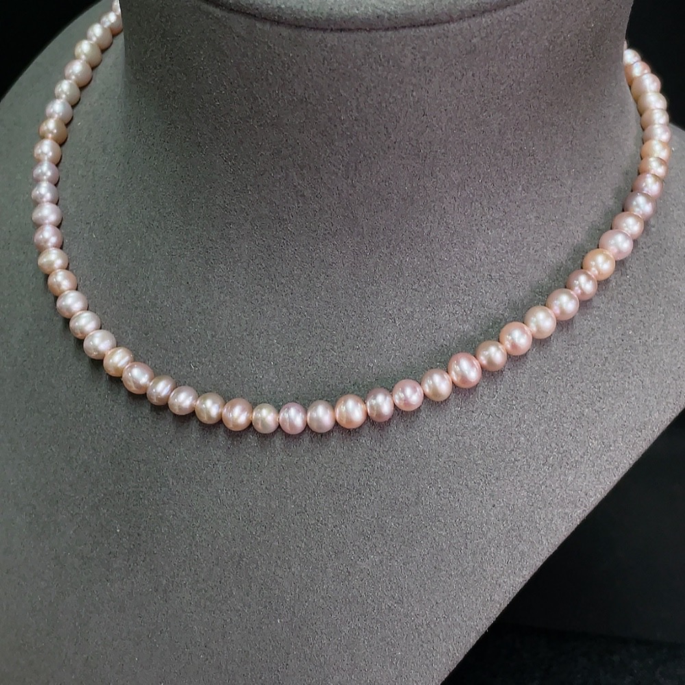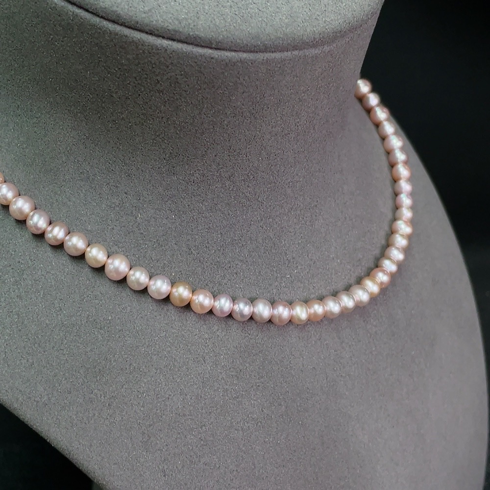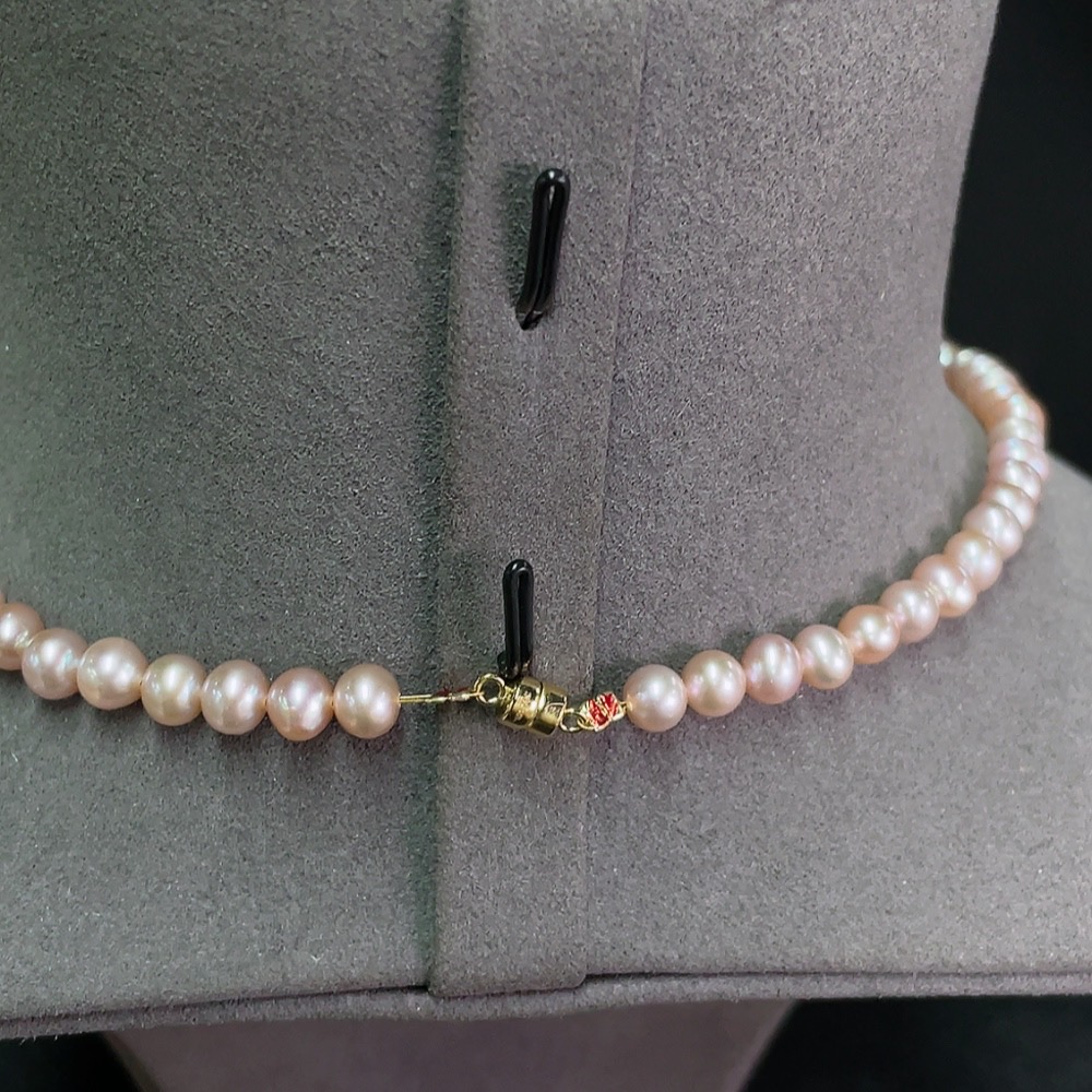 Pearl bead strand, marked red non-gold, clasp gold content 35%, undetectable inside clasp, string non-gold, card 6.2mm approx, total weight approx 18.87g