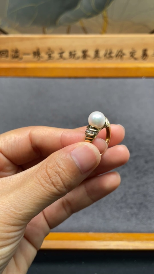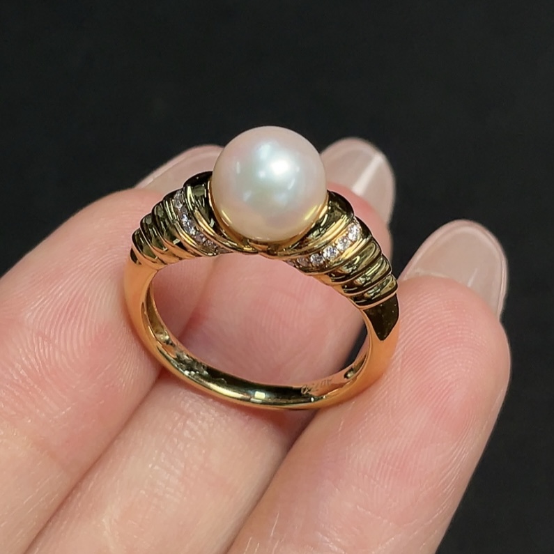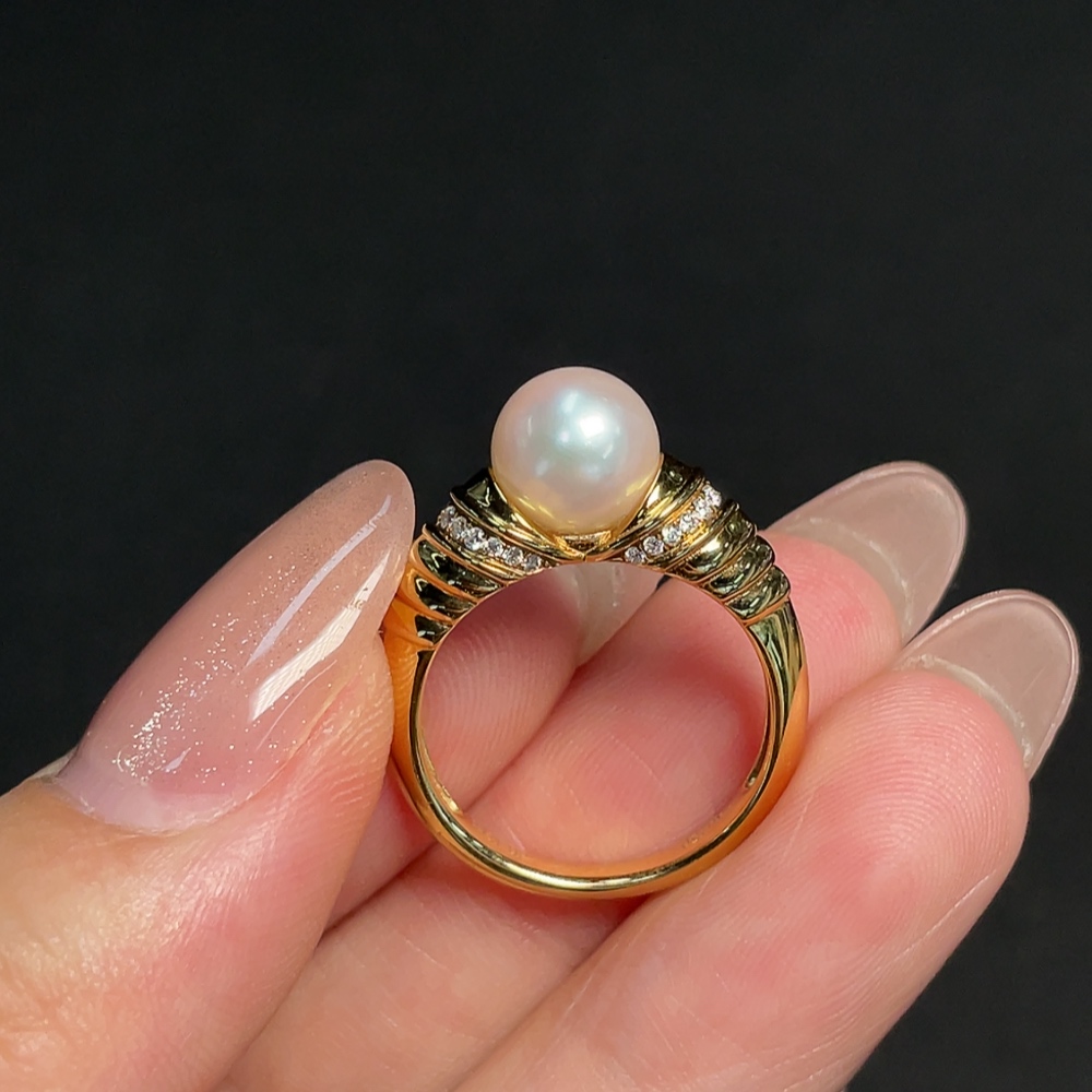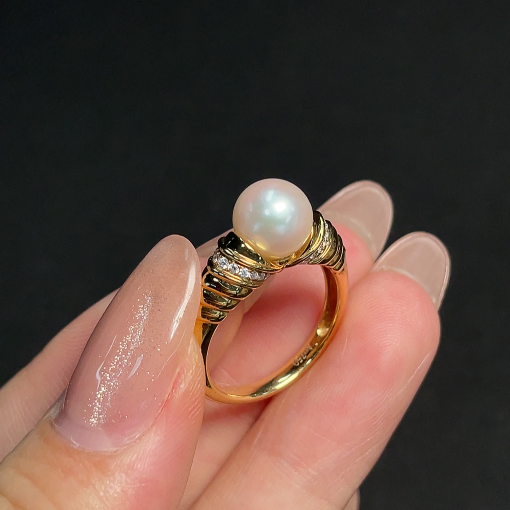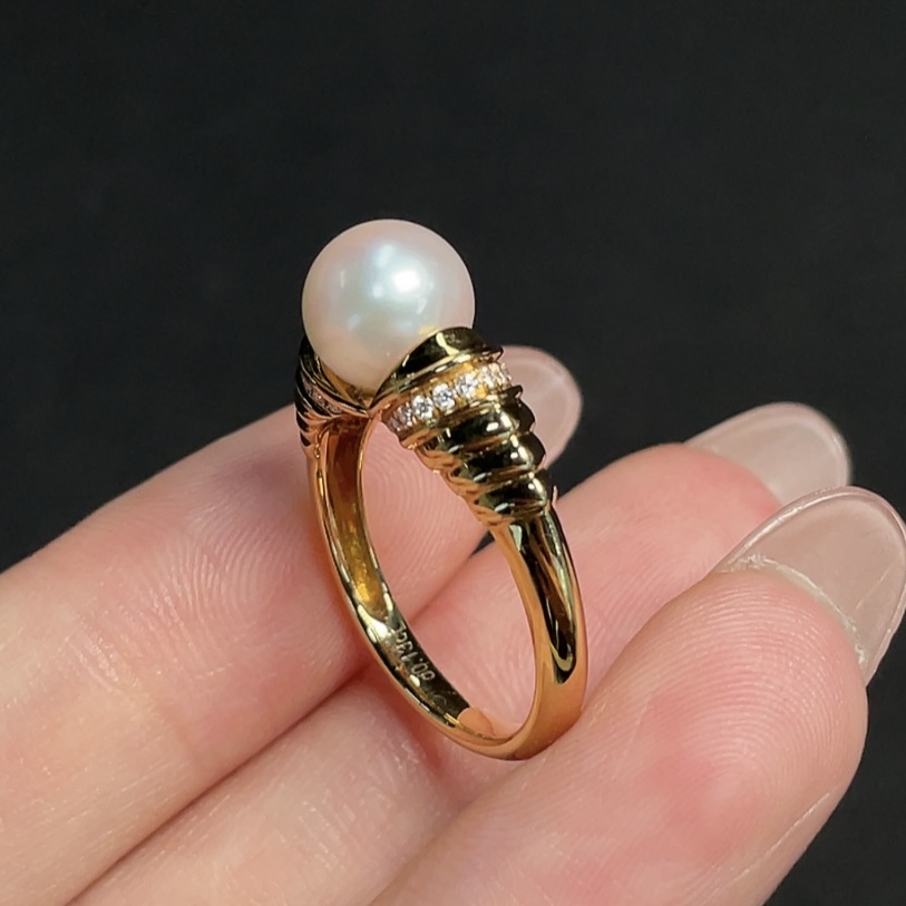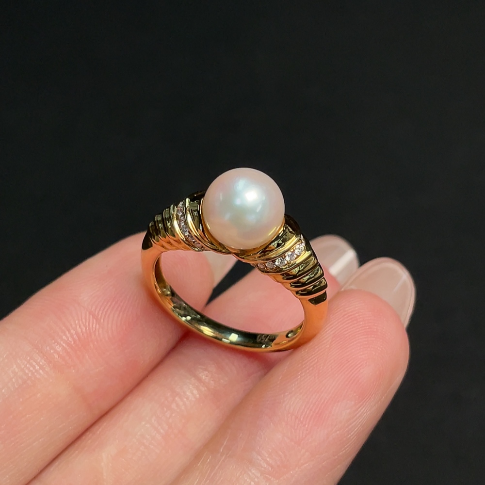 18k Saltwater Pearl Ring with Diamond Accents, Total Weight Approx. 4.18g, Size 14, Pearl Size Approx. 7.8mm