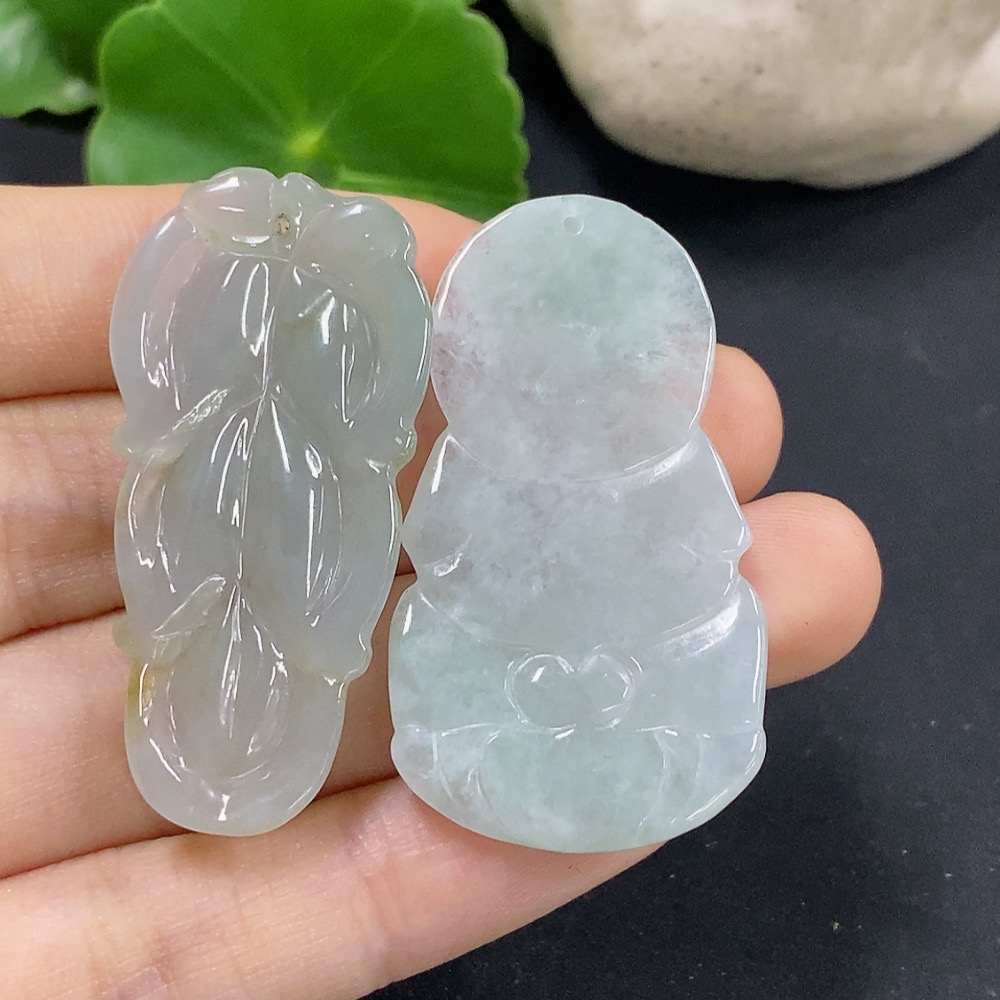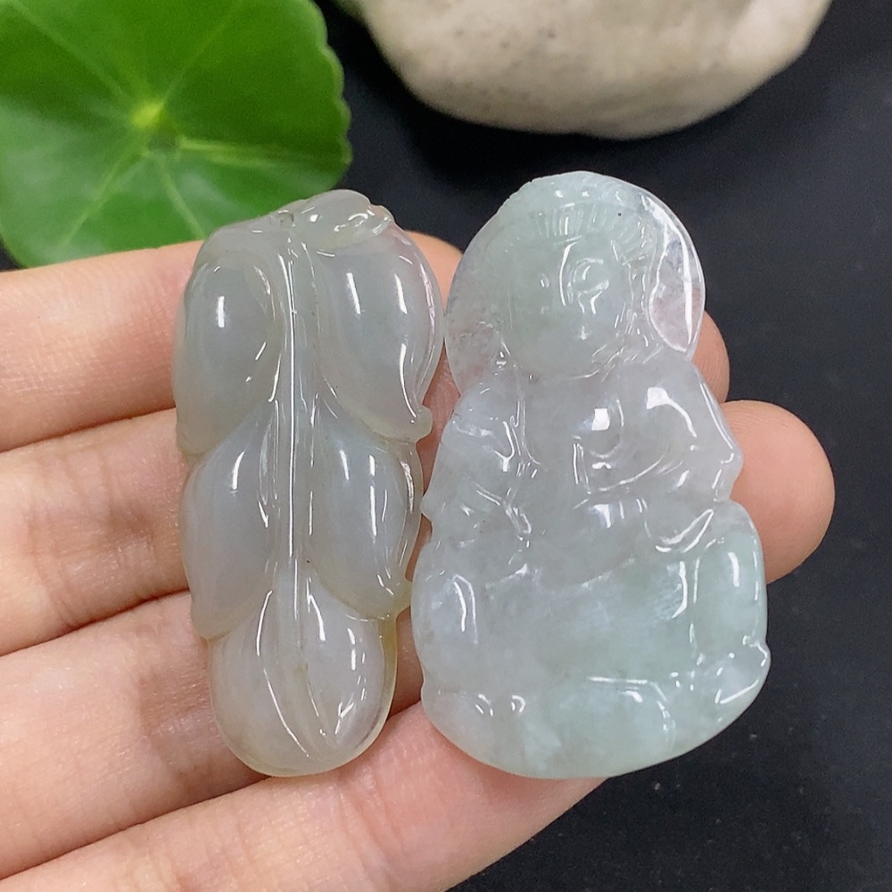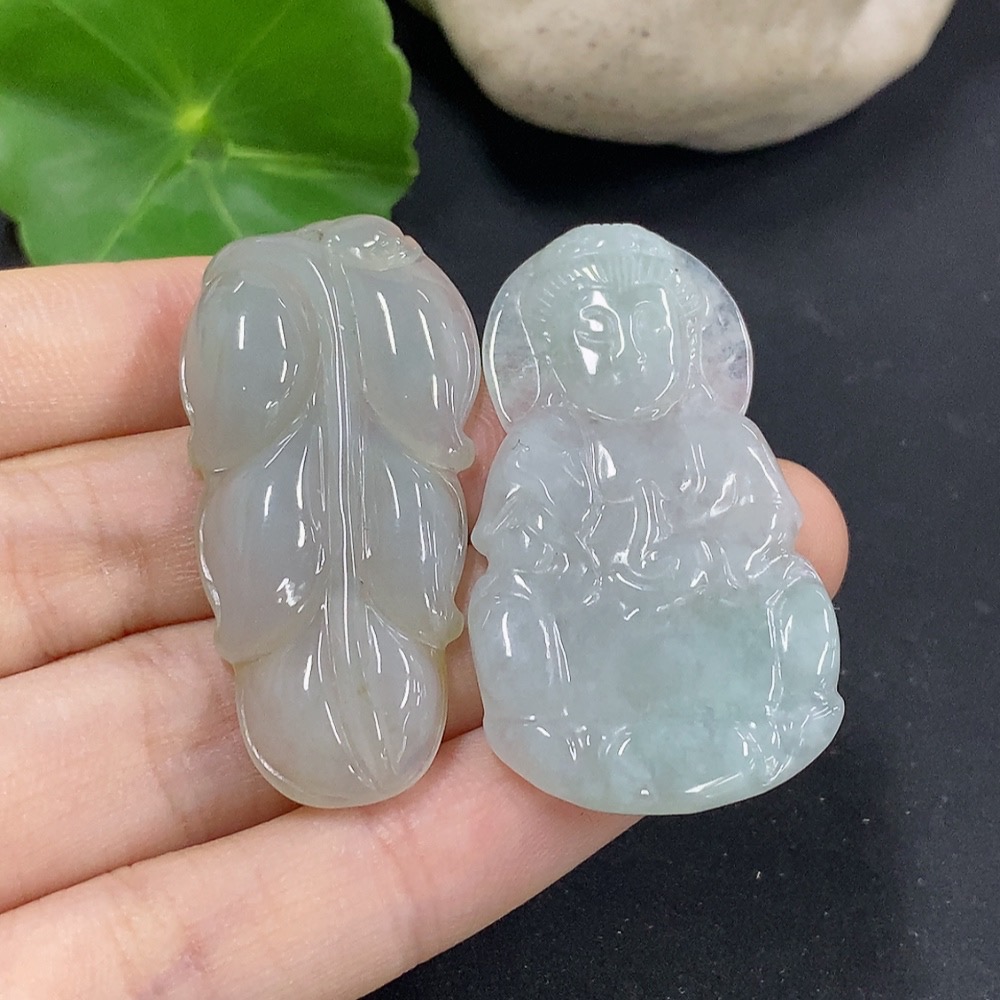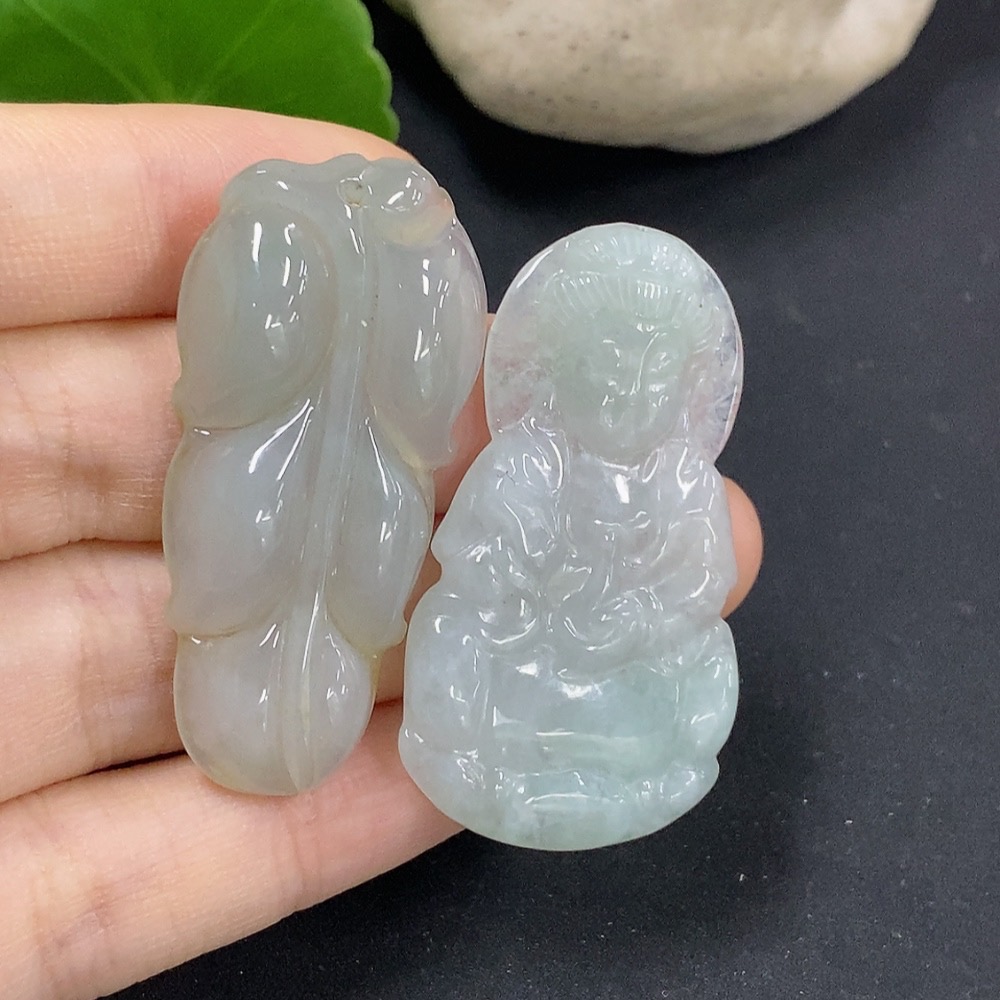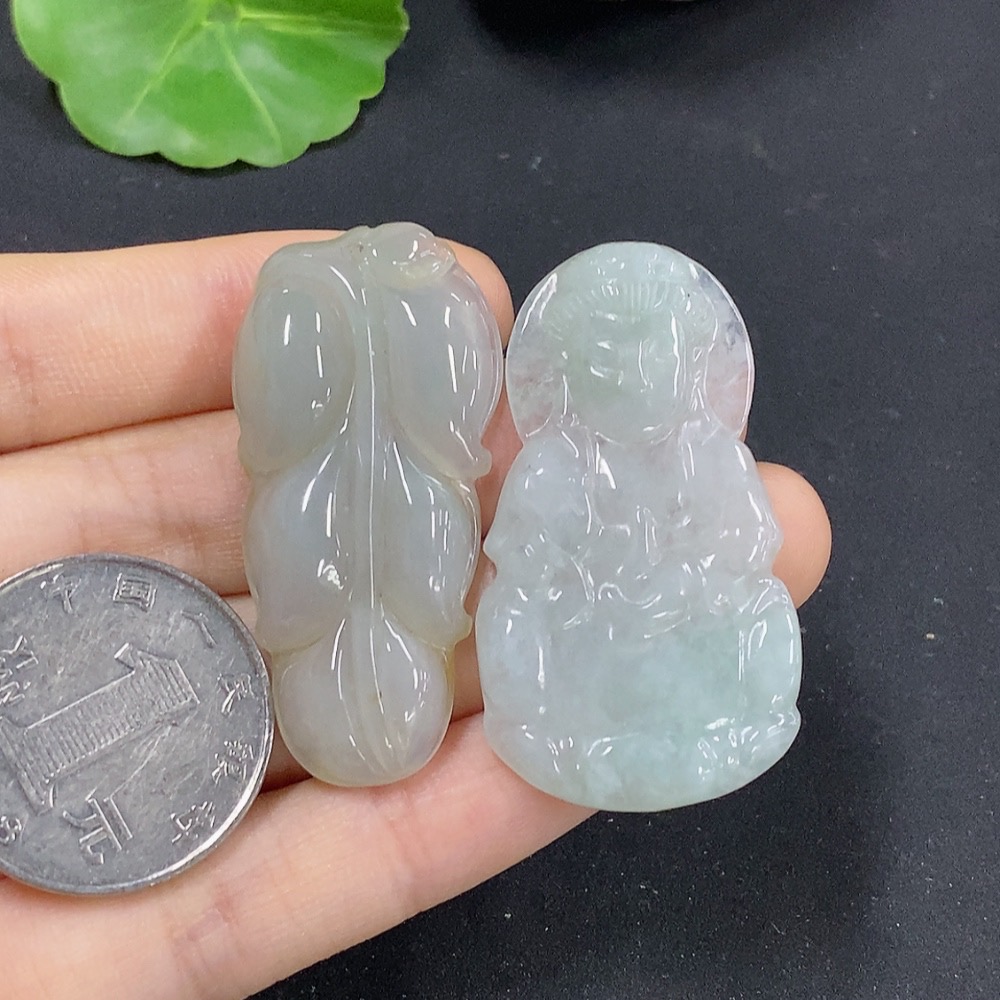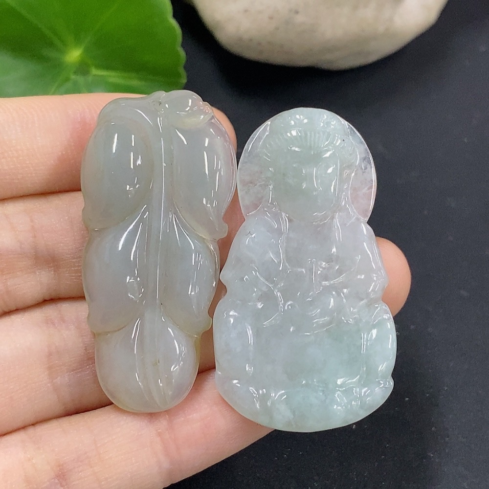 Jadeite Leaf/Guanyin Pendant