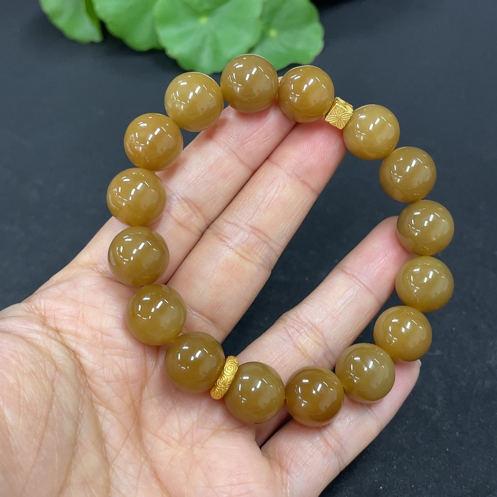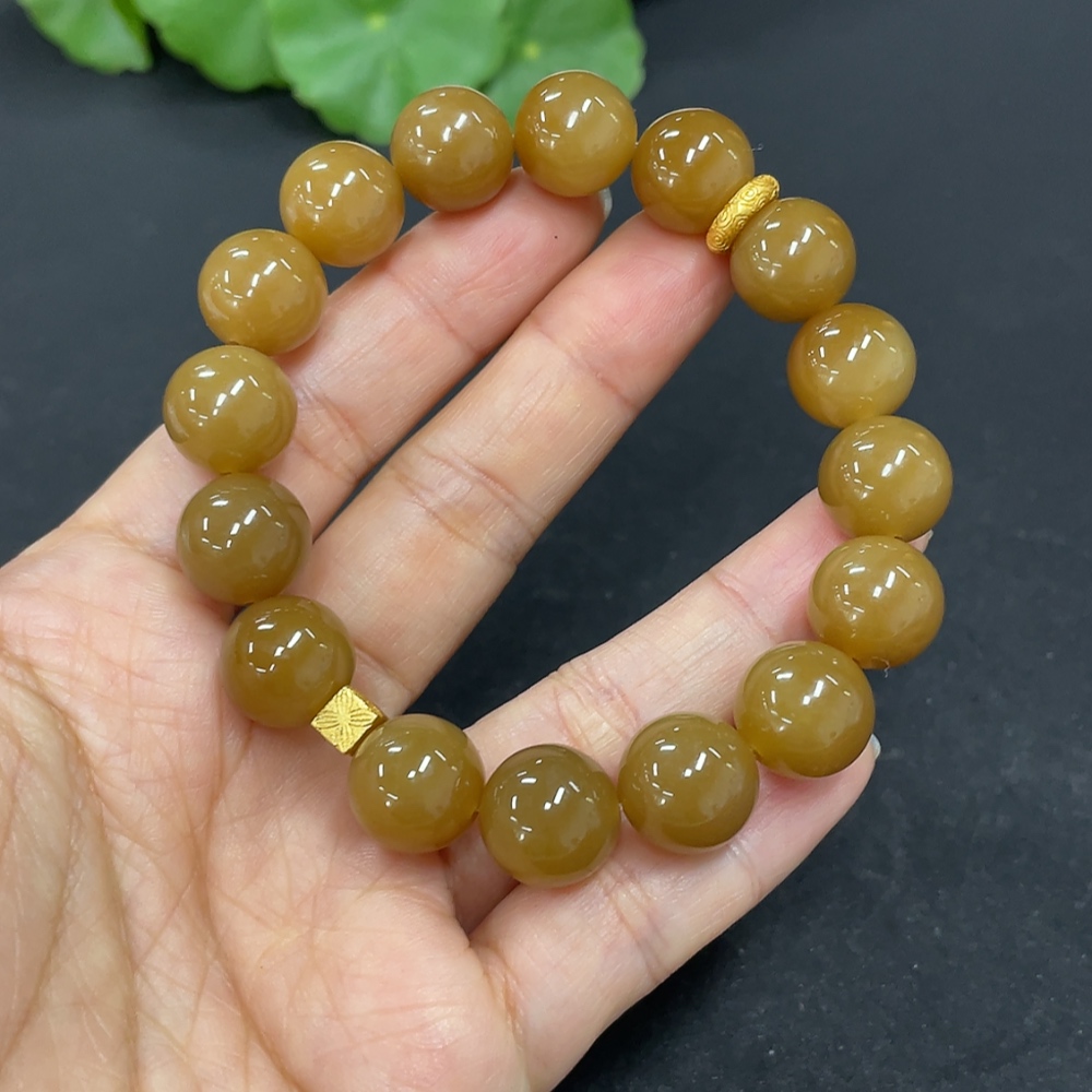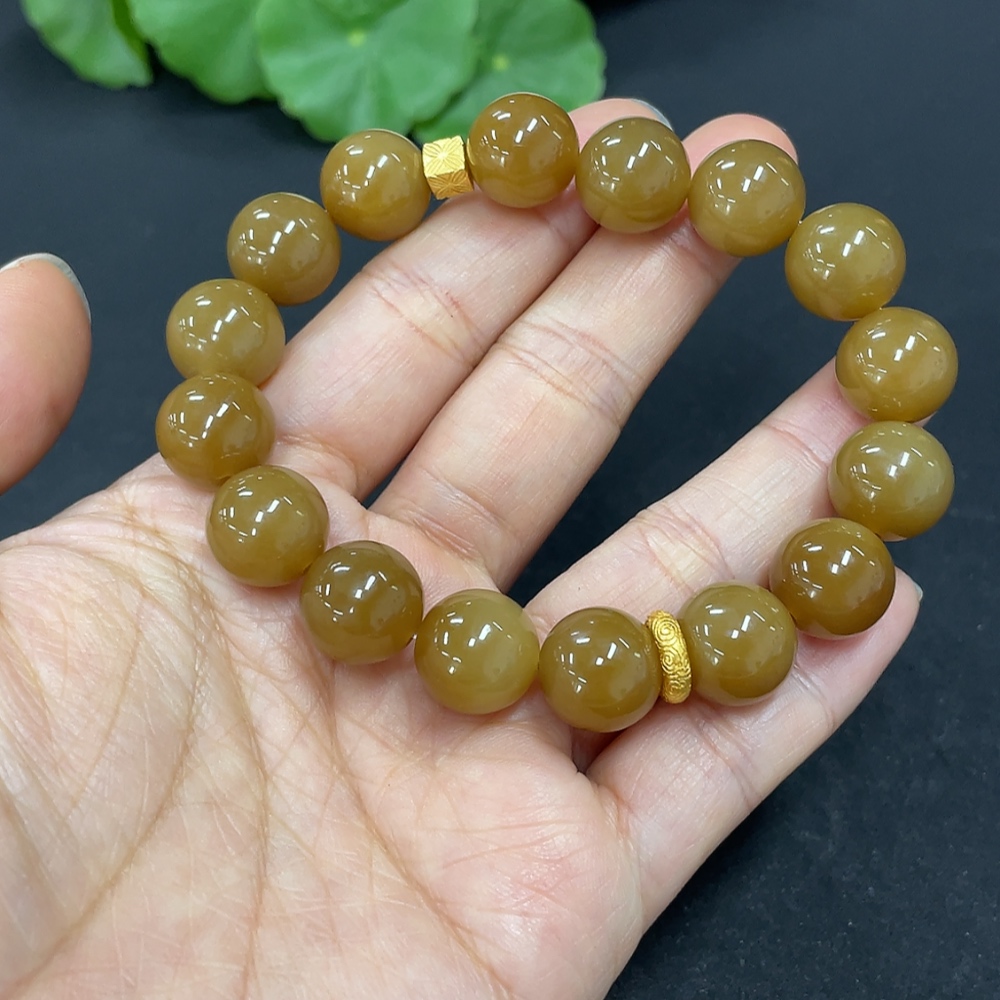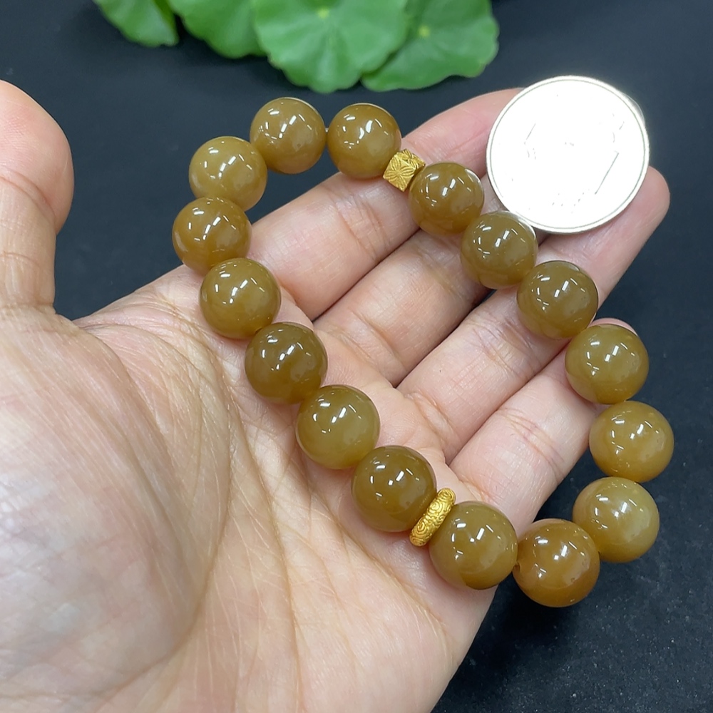 Hetian Jade Bead Bracelet Approx.11.7mm Non-Gold Total Weight Approx.43.7g