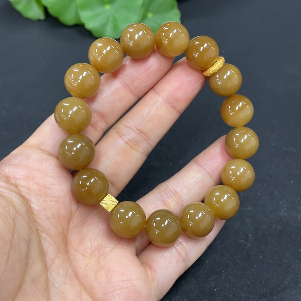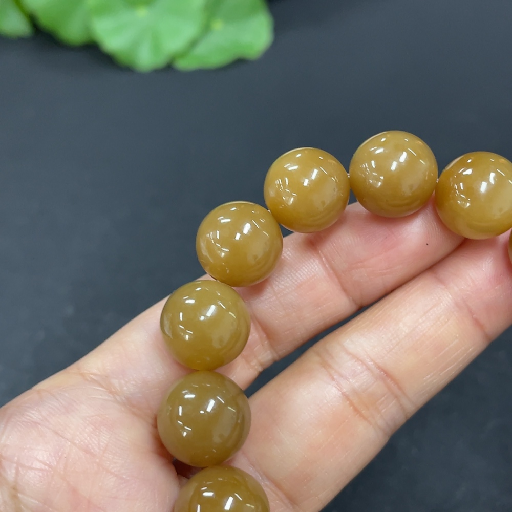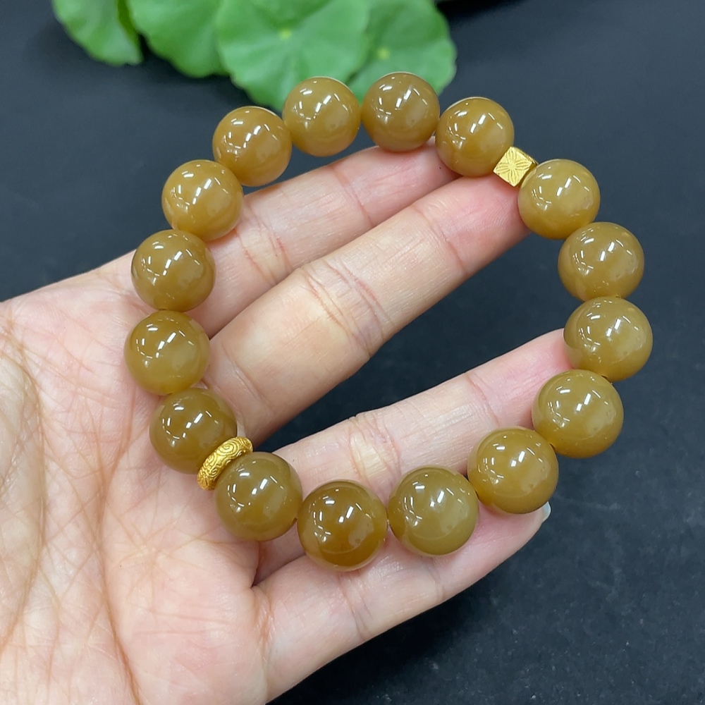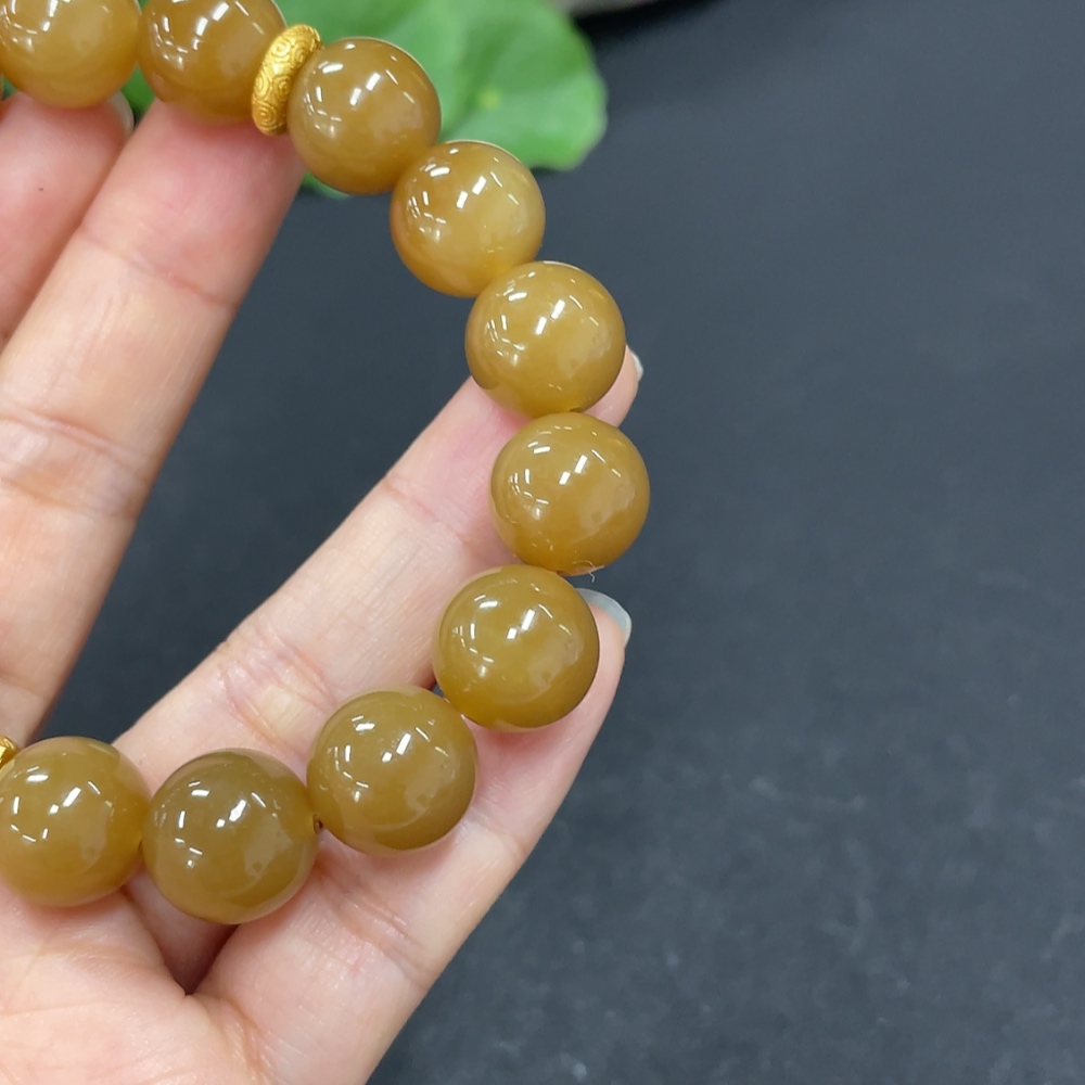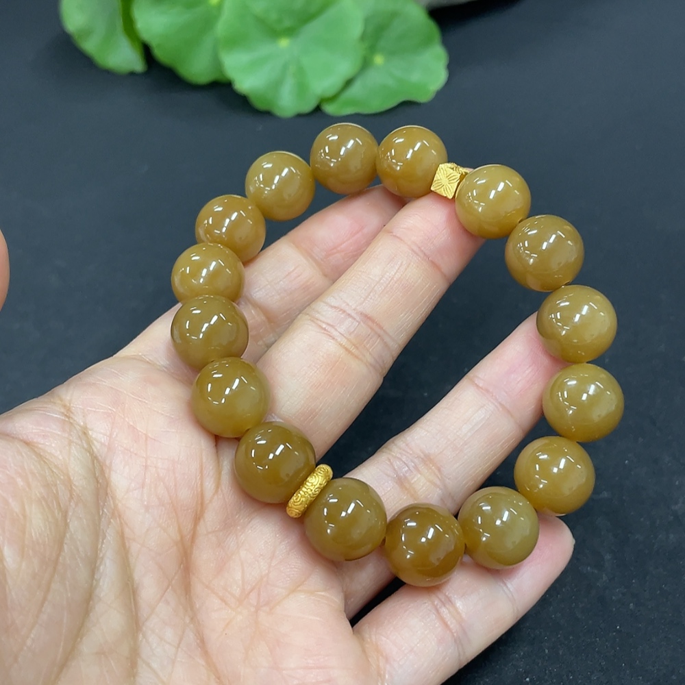 Hetian Jade Bead Bracelet Approx.11.7mm Non-Gold Total Weight Approx.43.7g