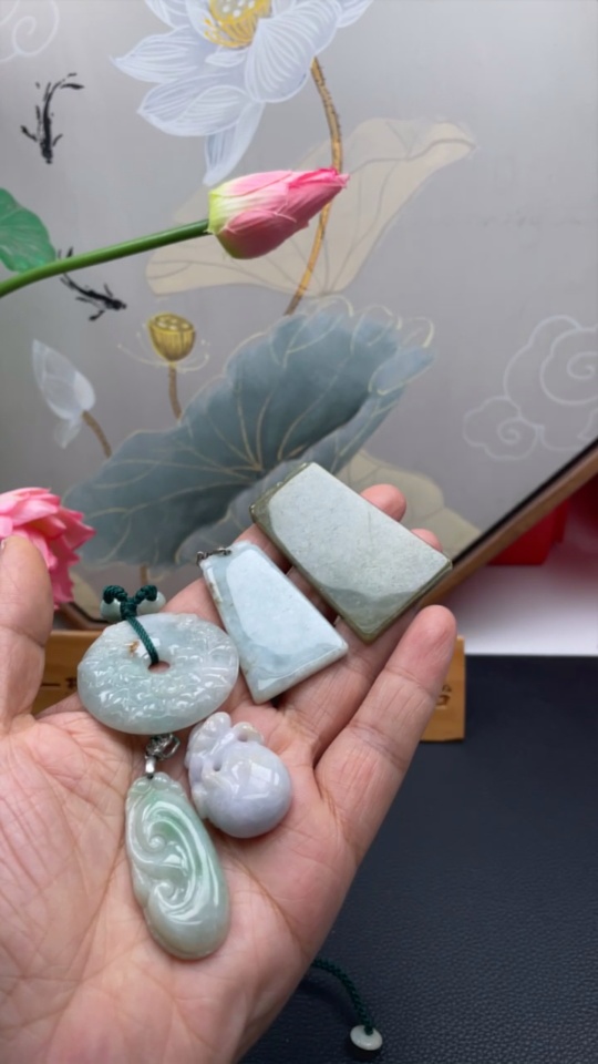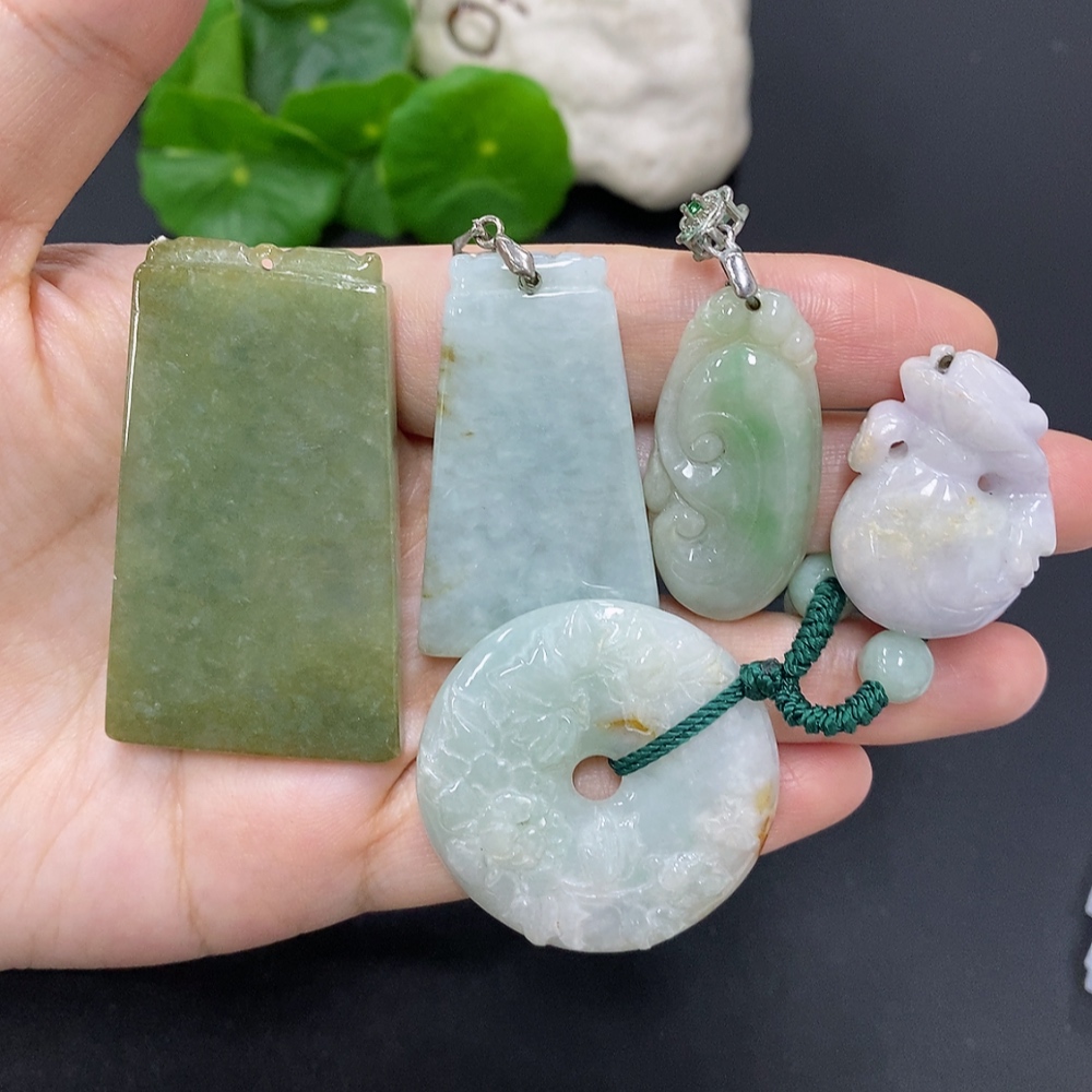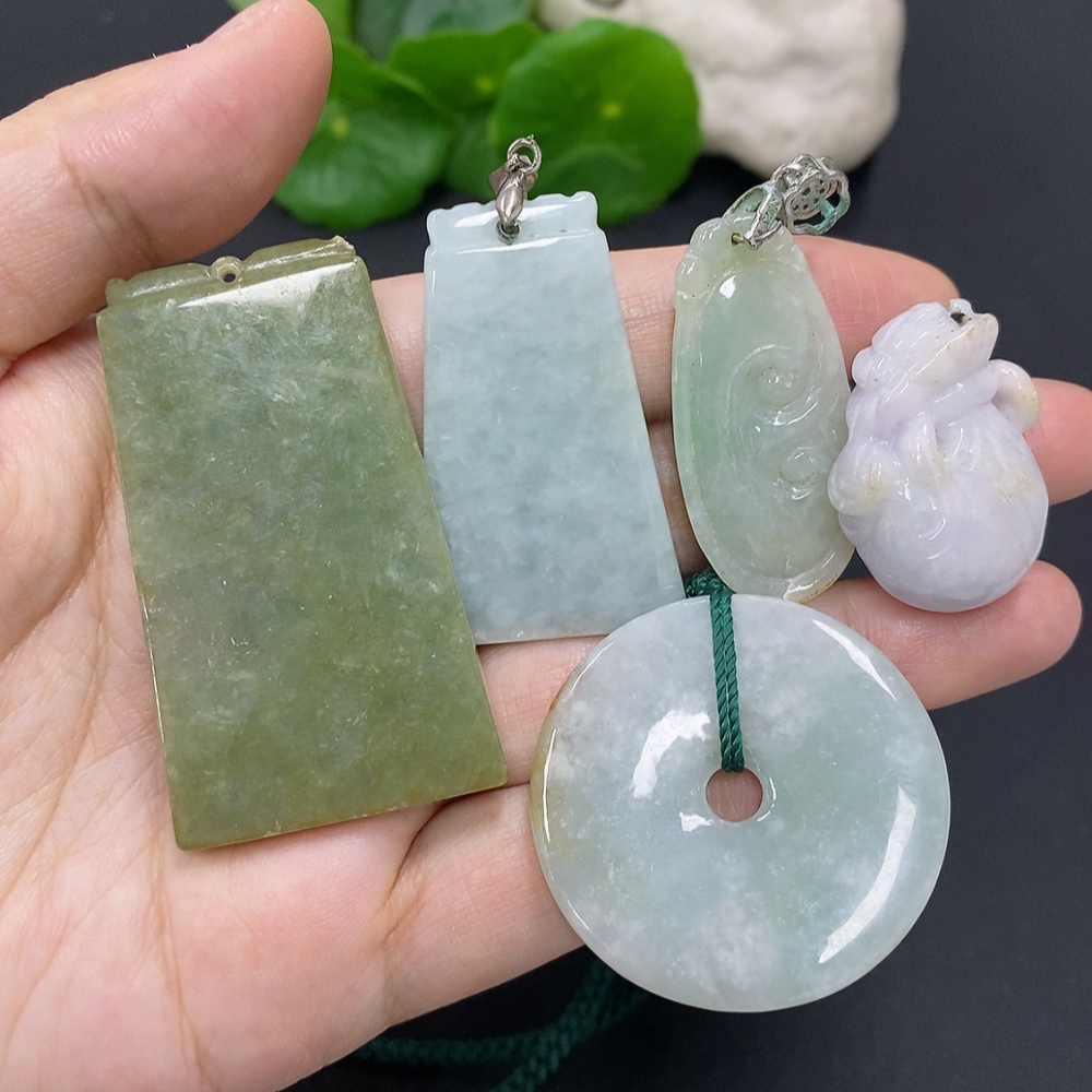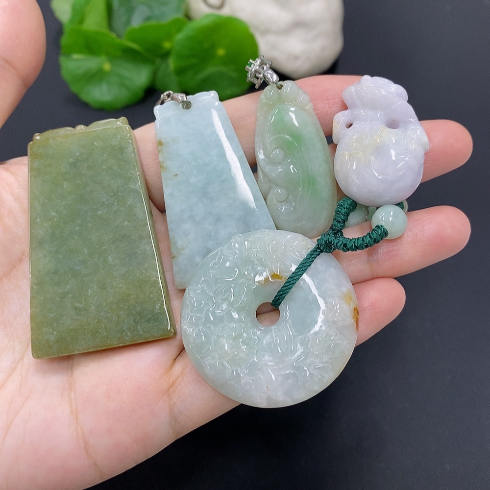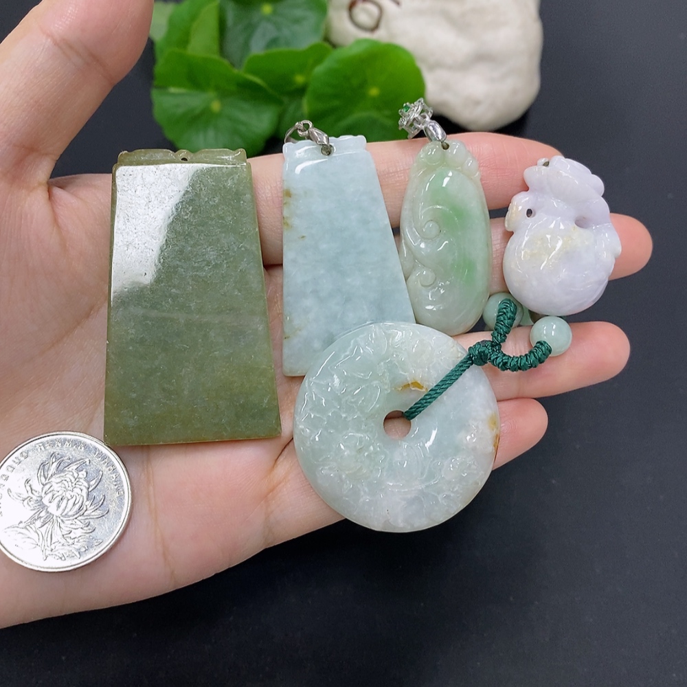 Jadeite Pendant Sell as a Lot Non-Gold Inlaid
