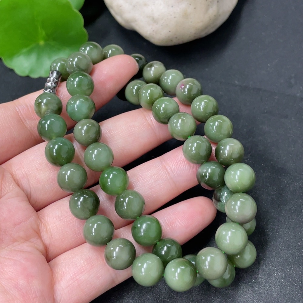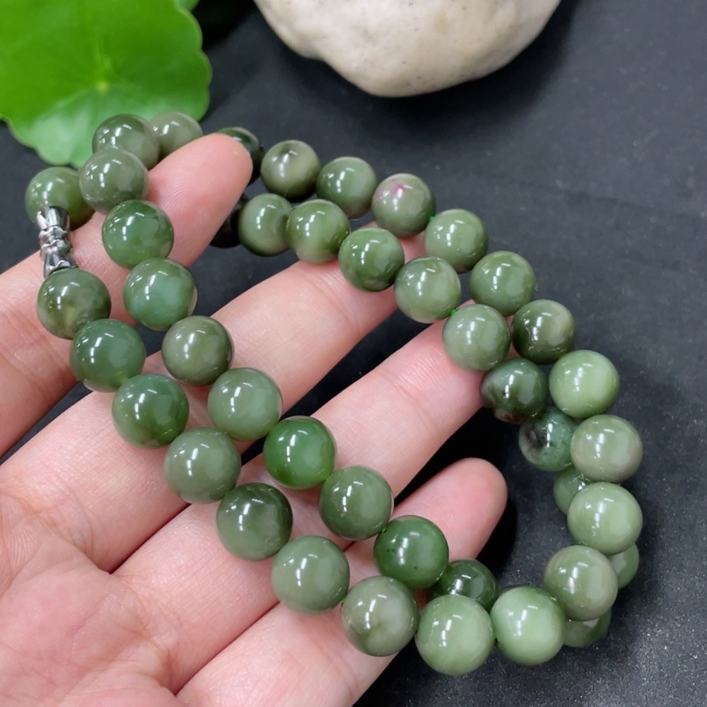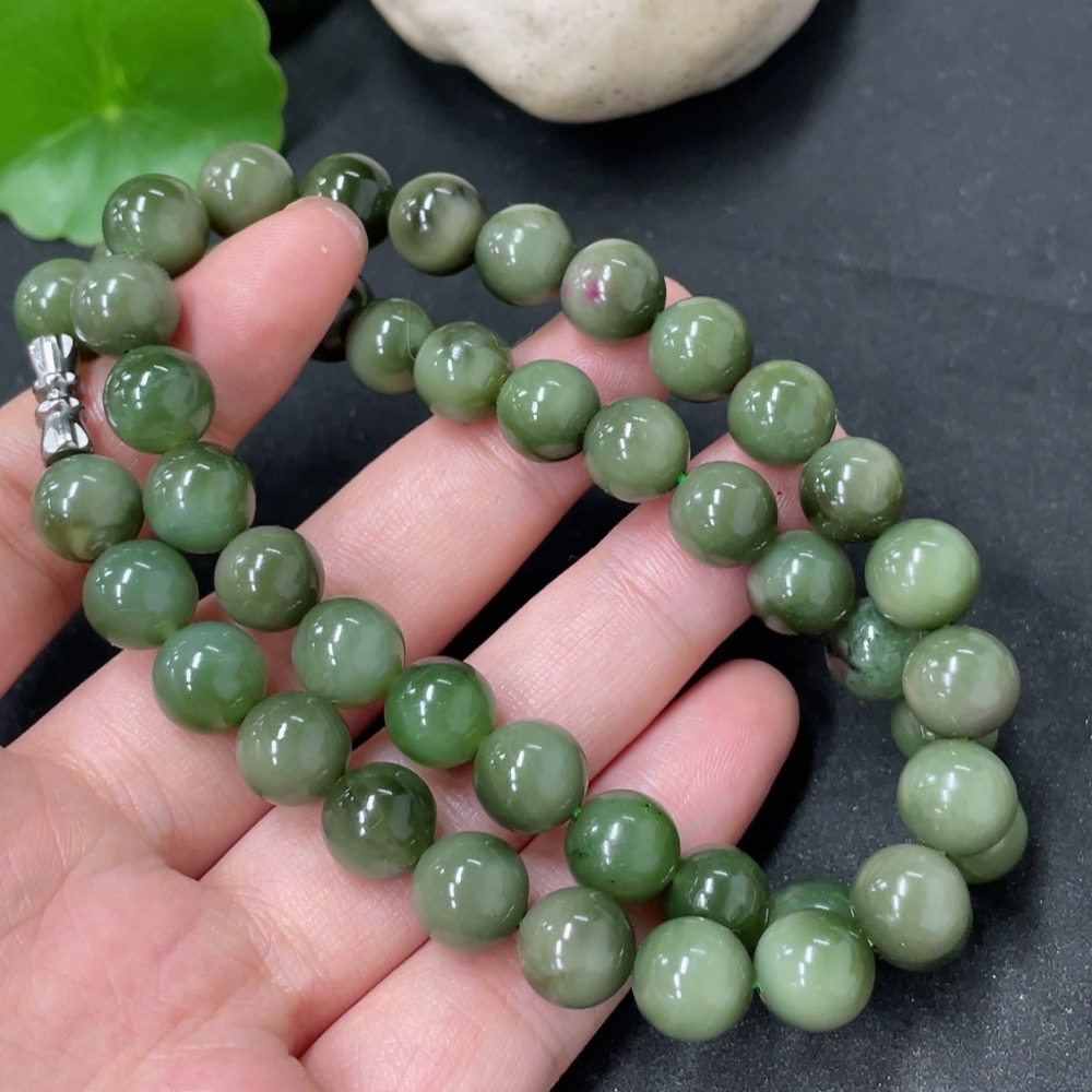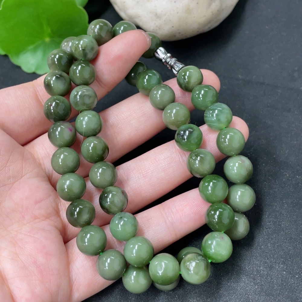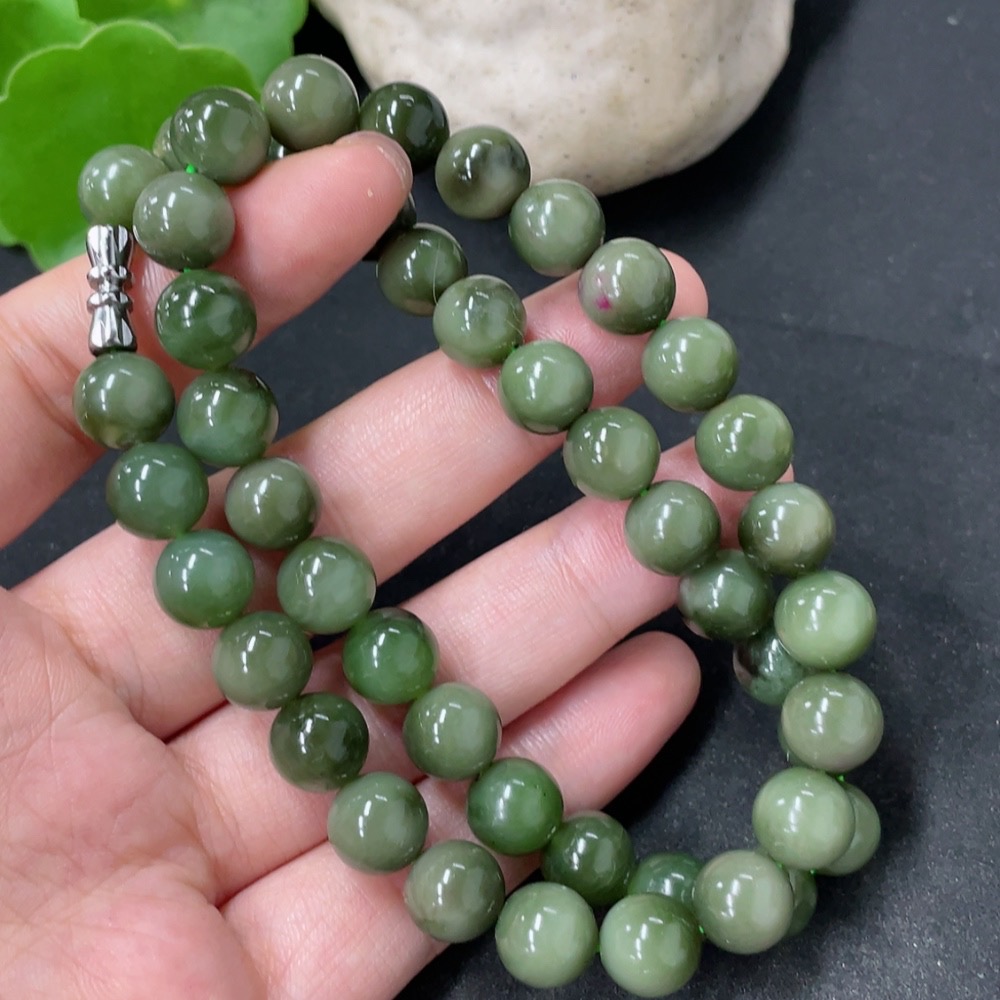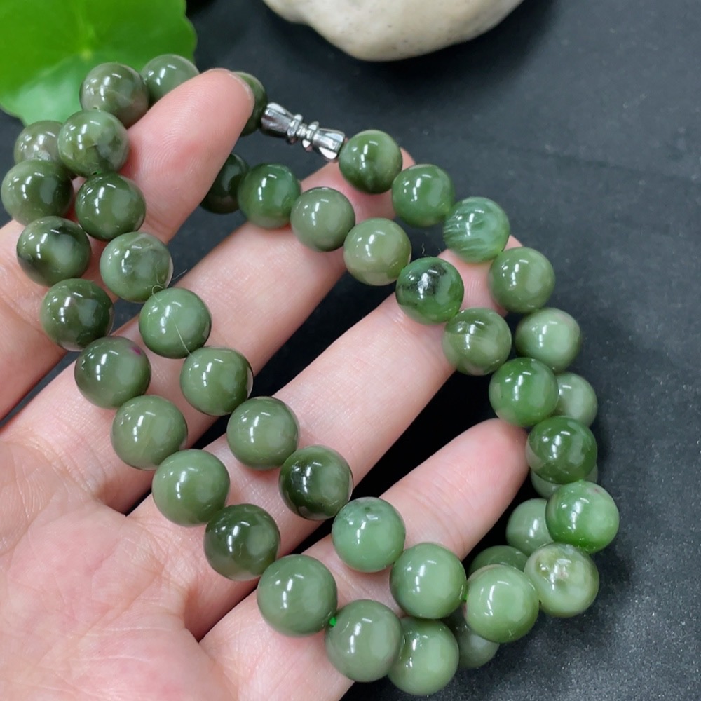 Hetian Jade Bead Necklace Non-Gold Approx. 9mm Total Weight Approx. 59.1g