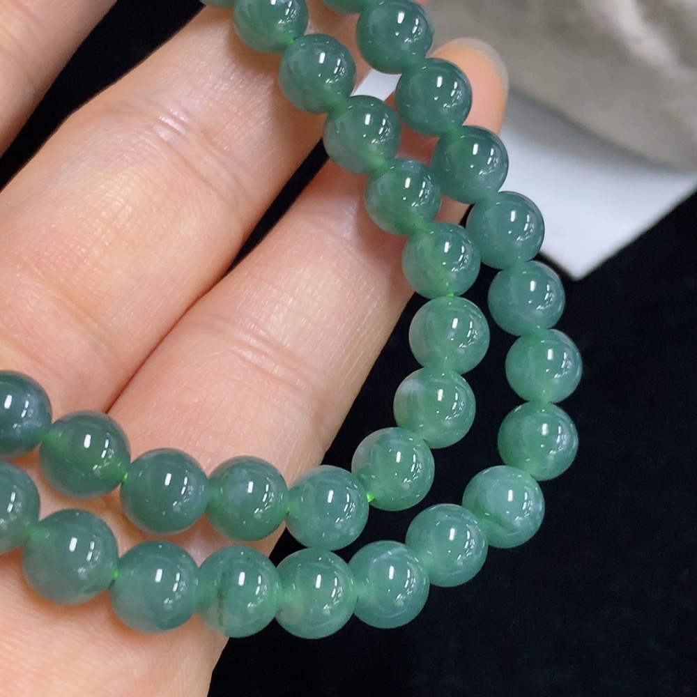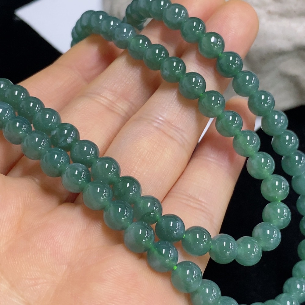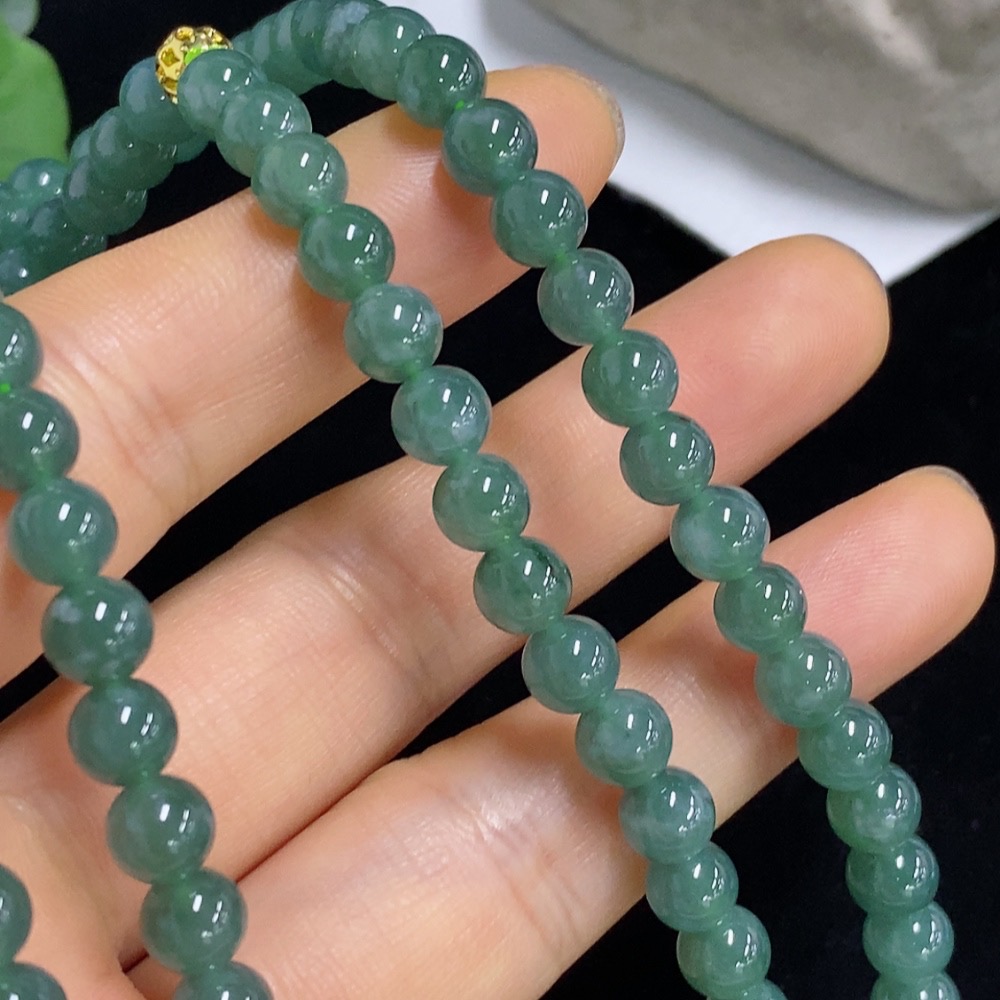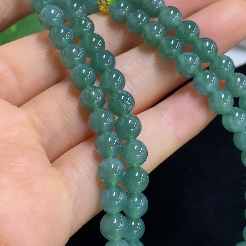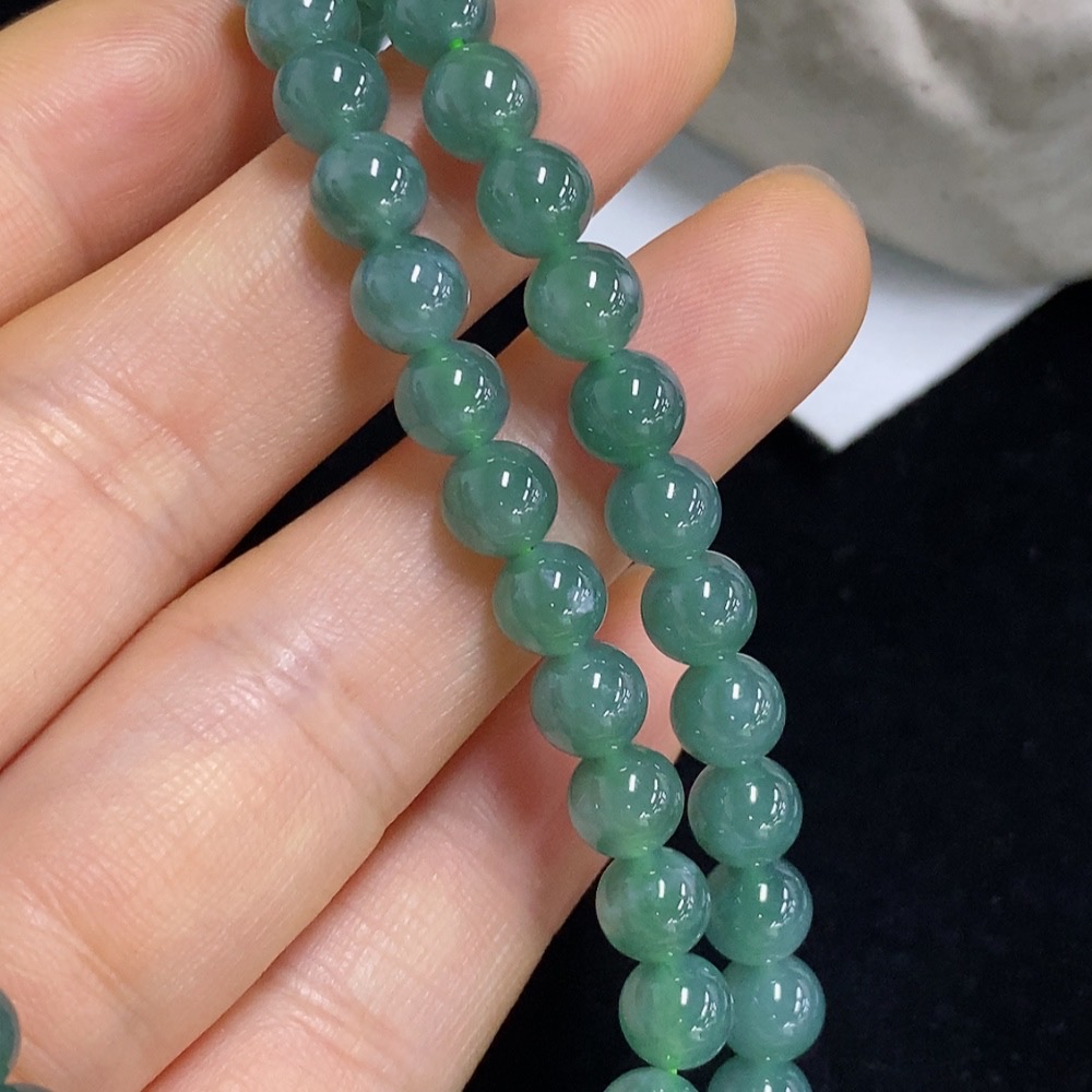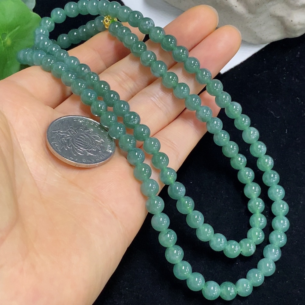 Jadeite Bead Necklace Approx. 6.3mm Non-Gold Total Weight Approx. 47.79g