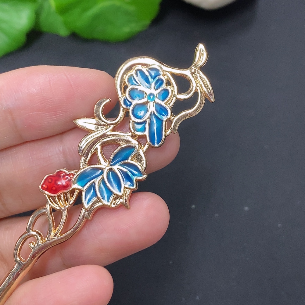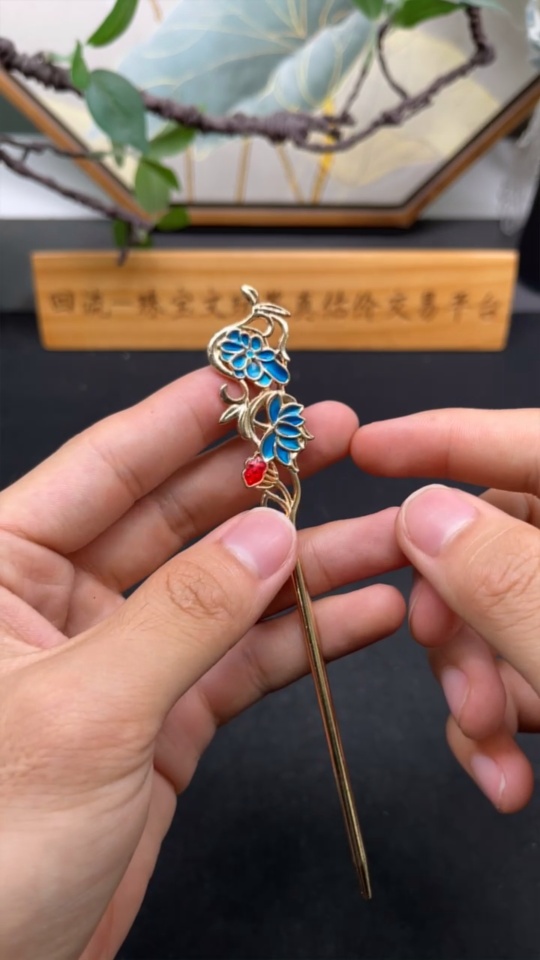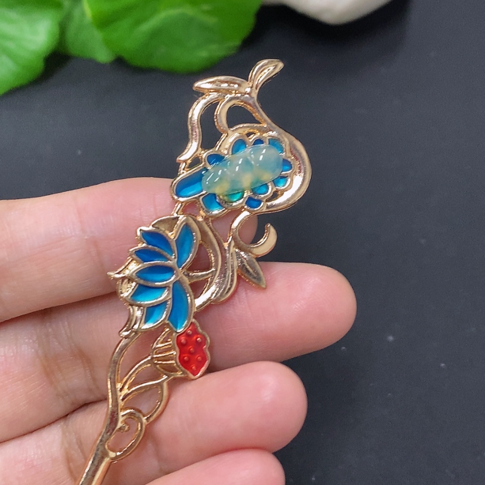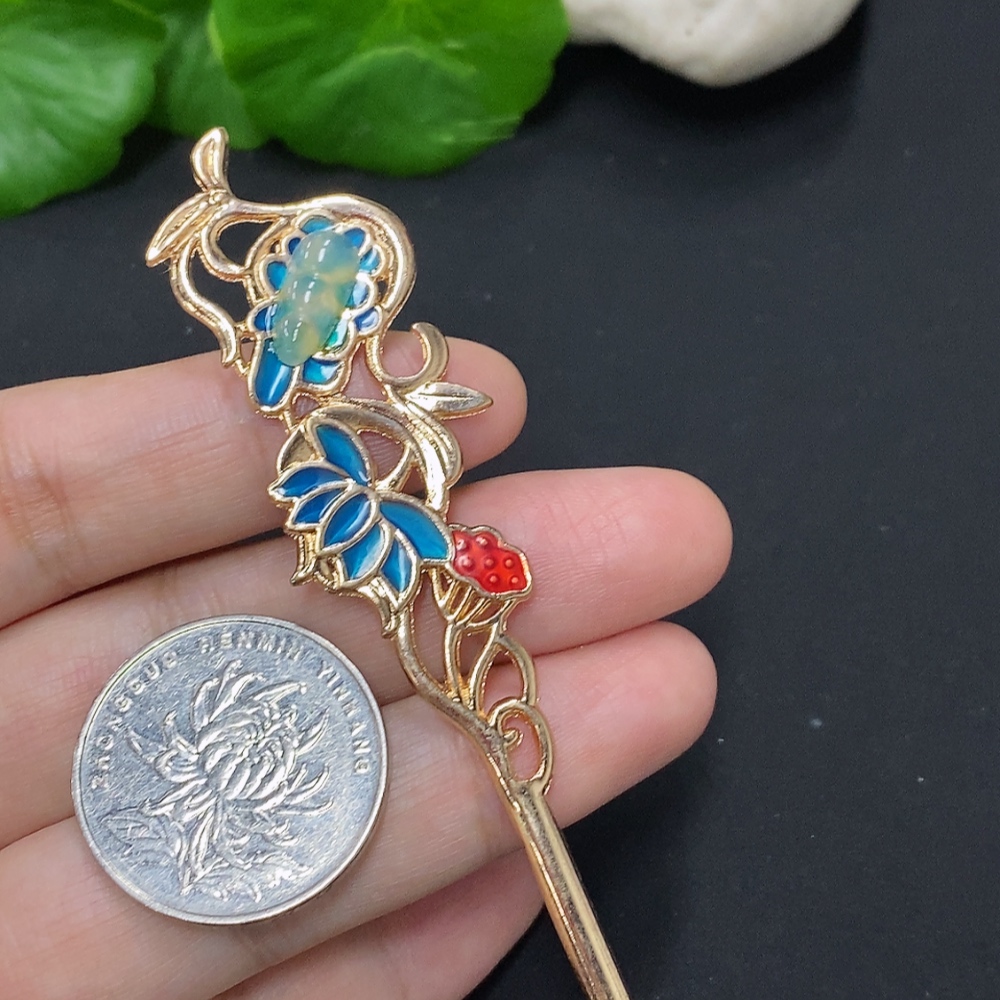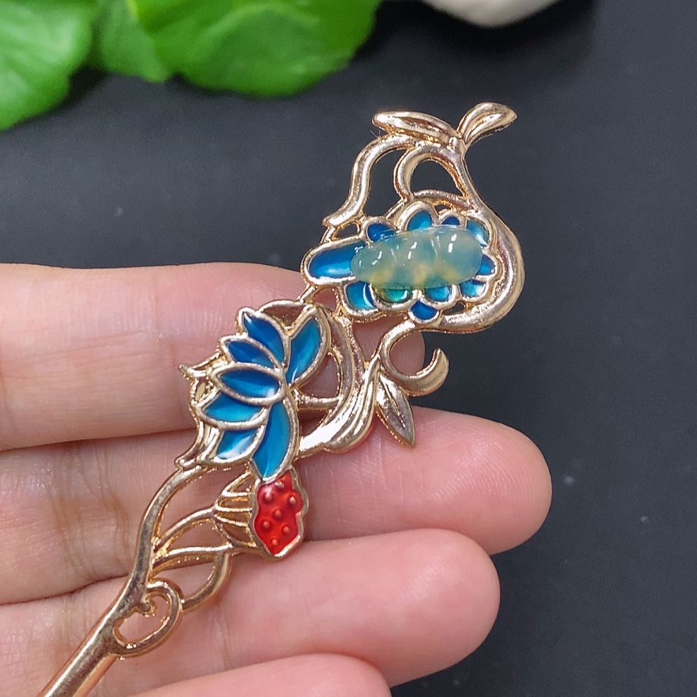 Jadeite Auspicious Bean Inlaid Hairpin Non-Gold Inlaid Total Weight About 9g