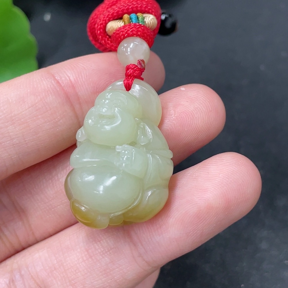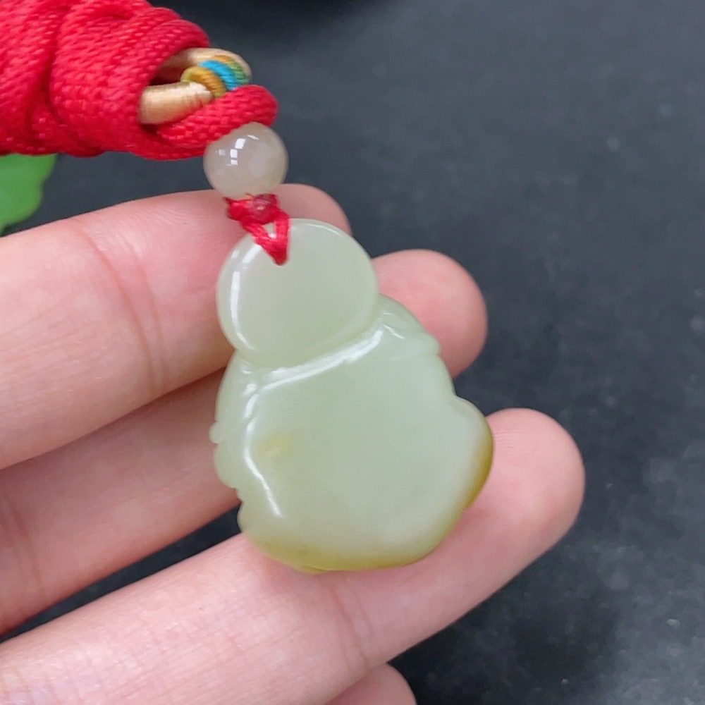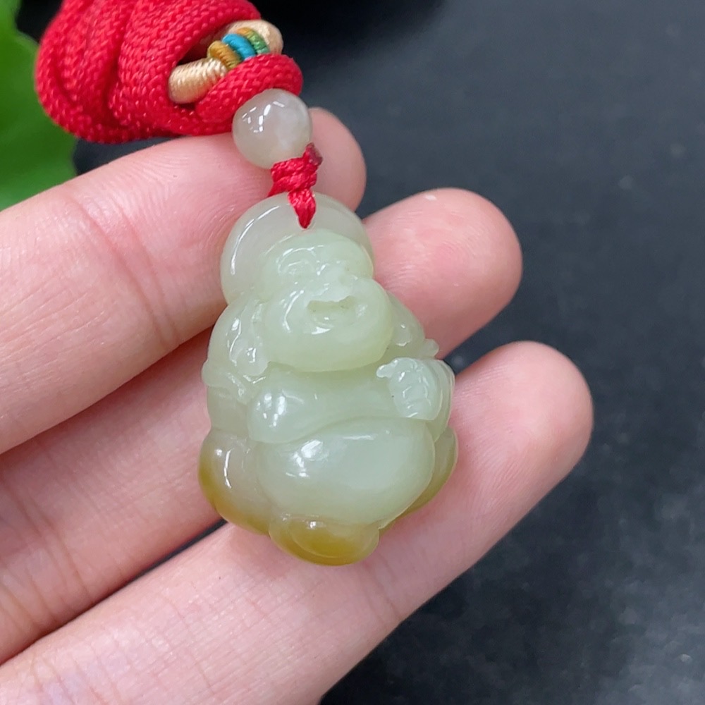 Hetian Jade Pendant - Buddha Figure, Total Weight (including rope): 12.4g