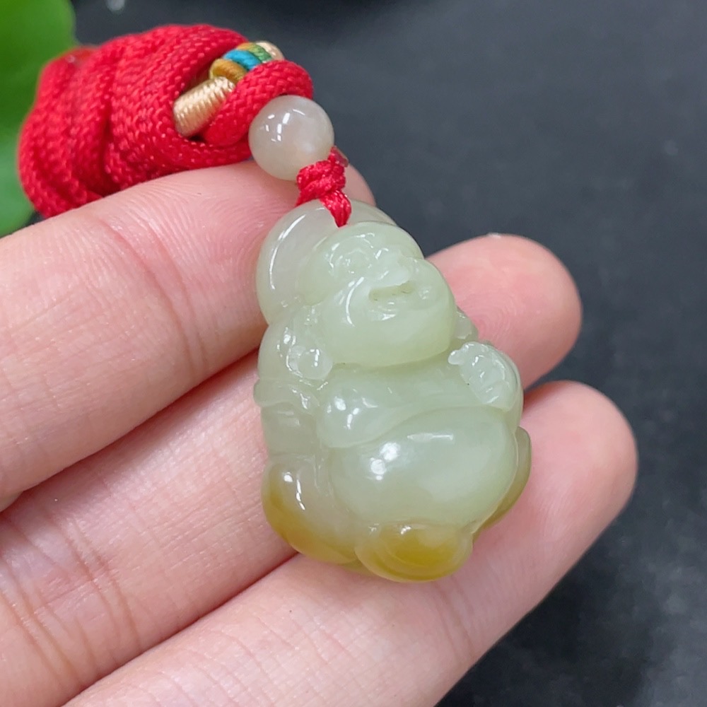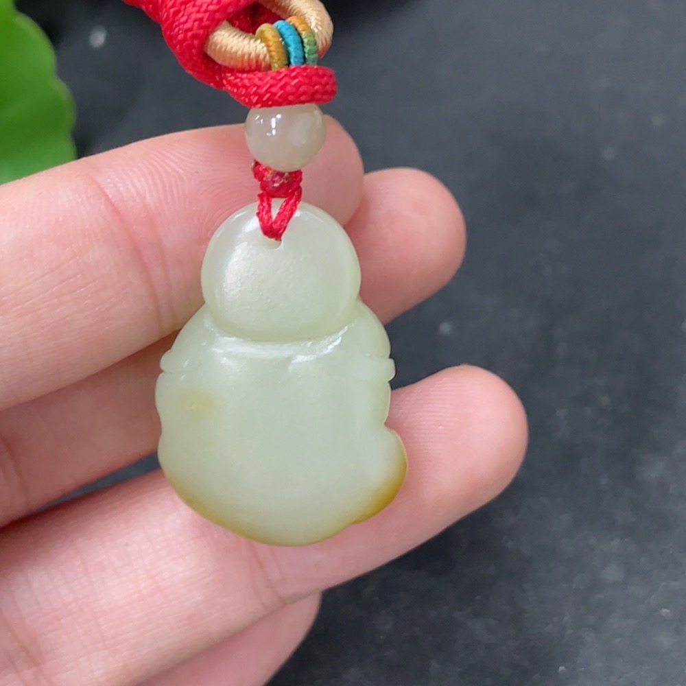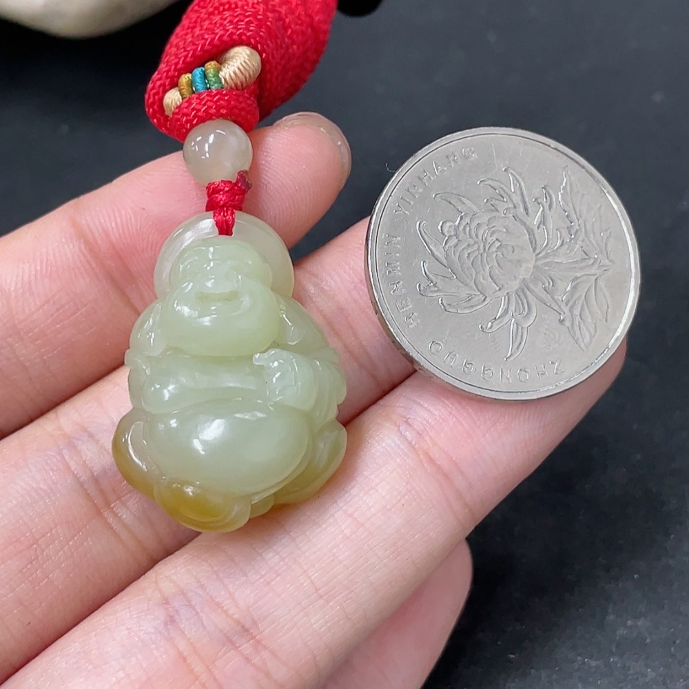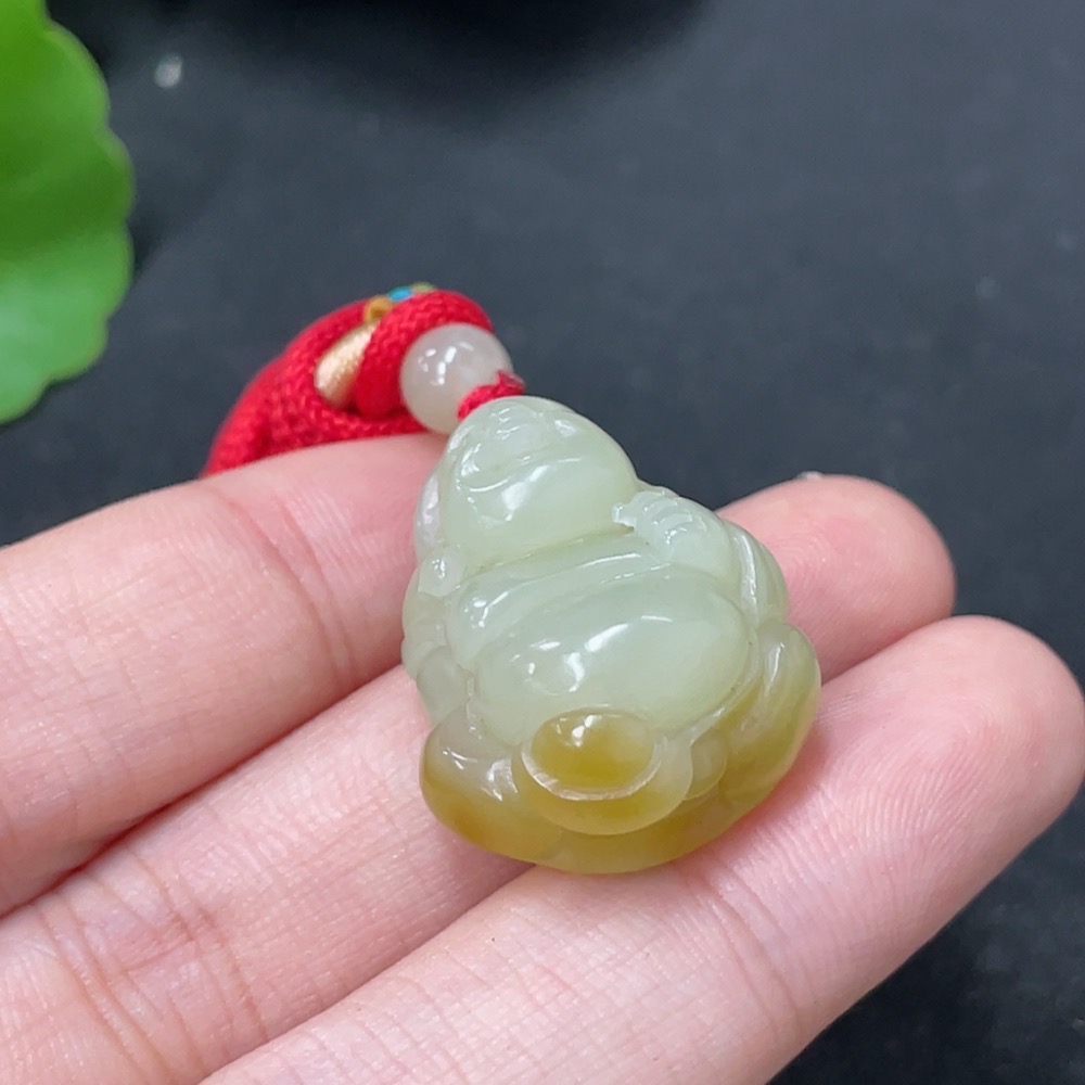 Hetian Jade Pendant - Buddha Figure, Total Weight (including rope): 12.4g