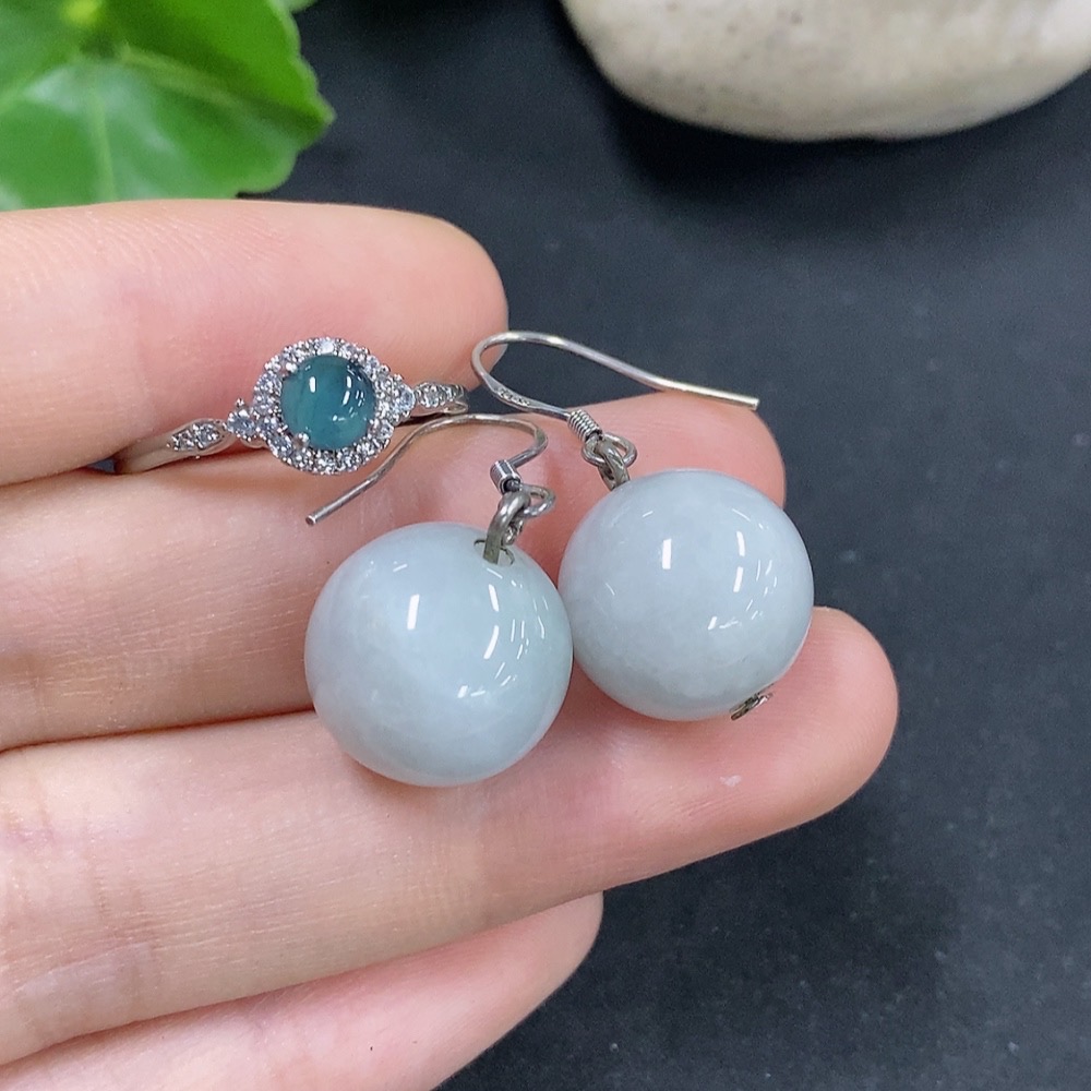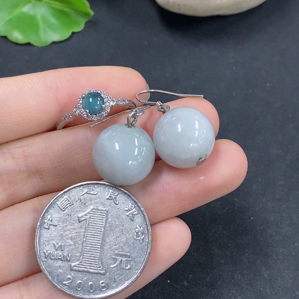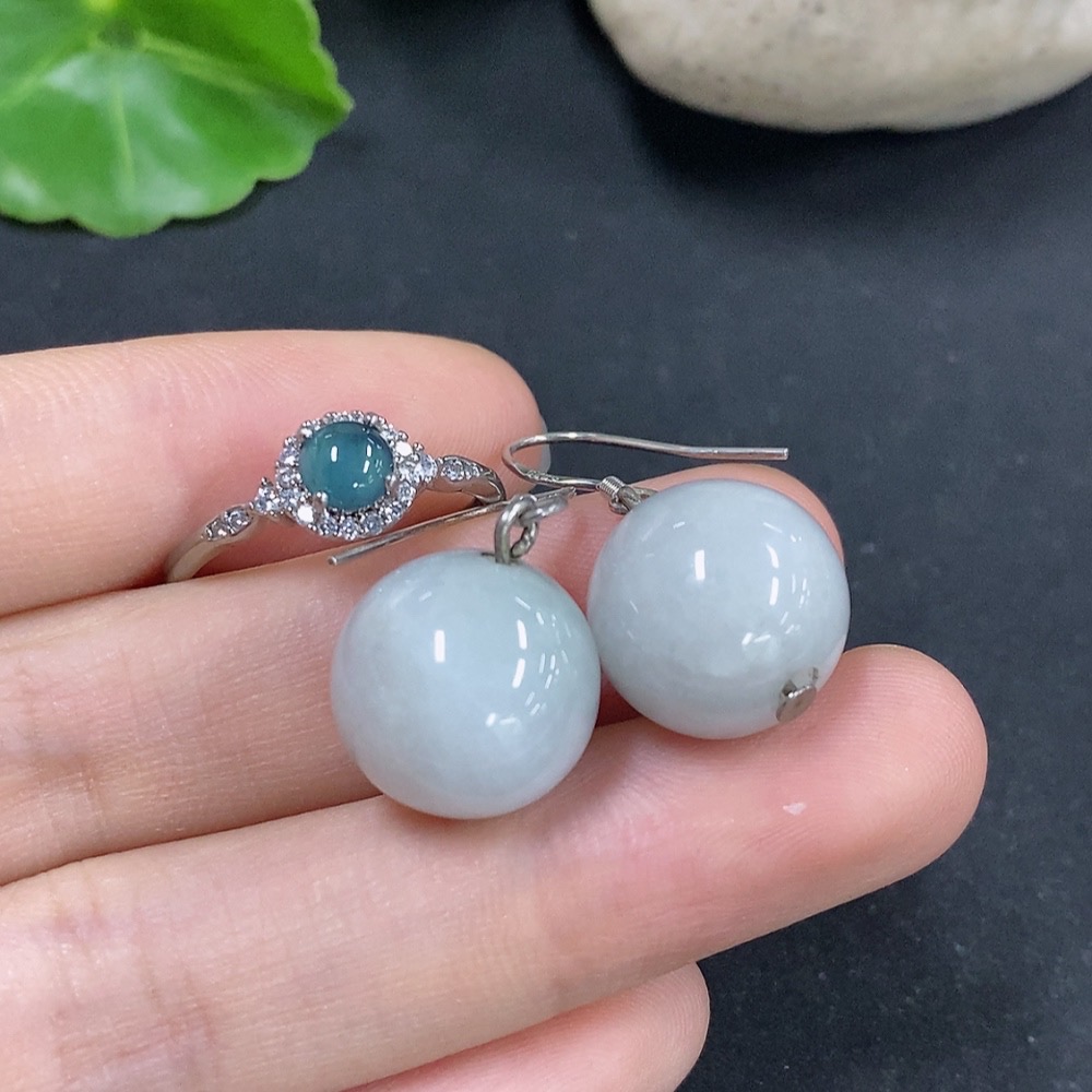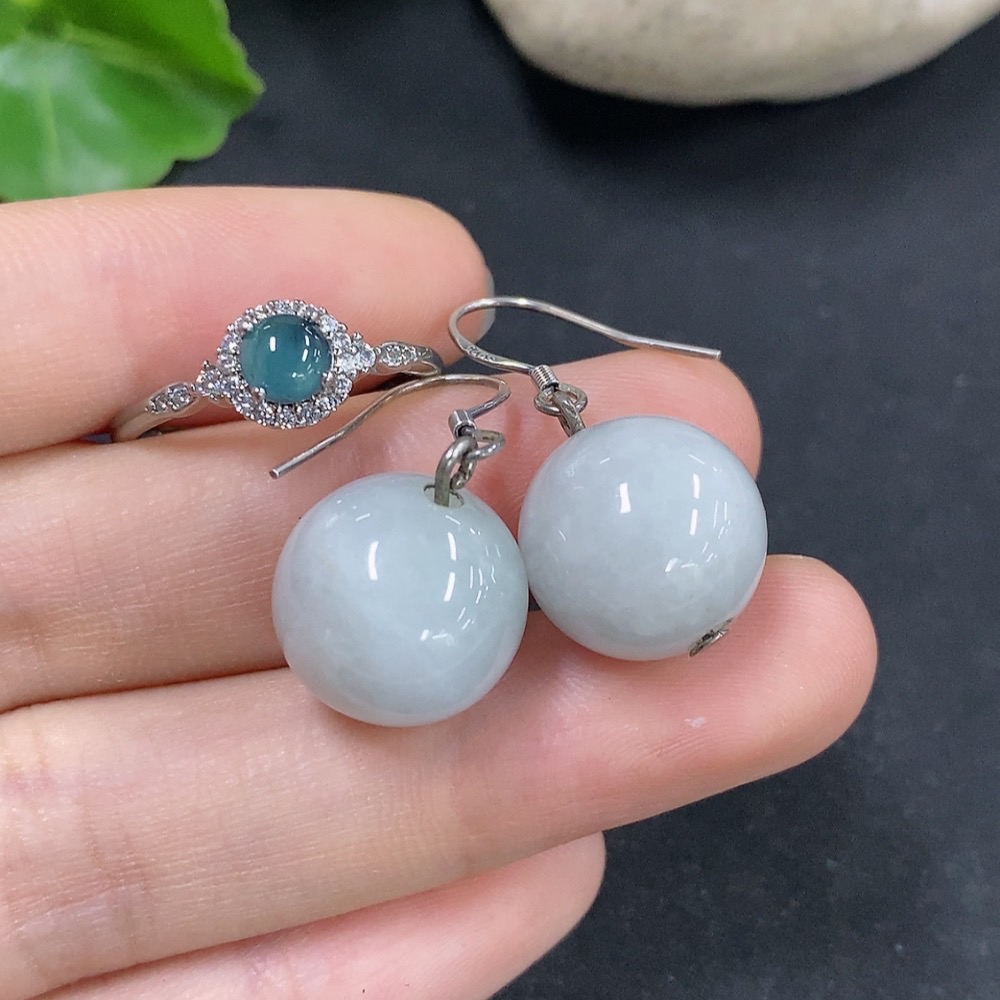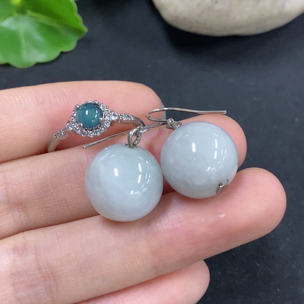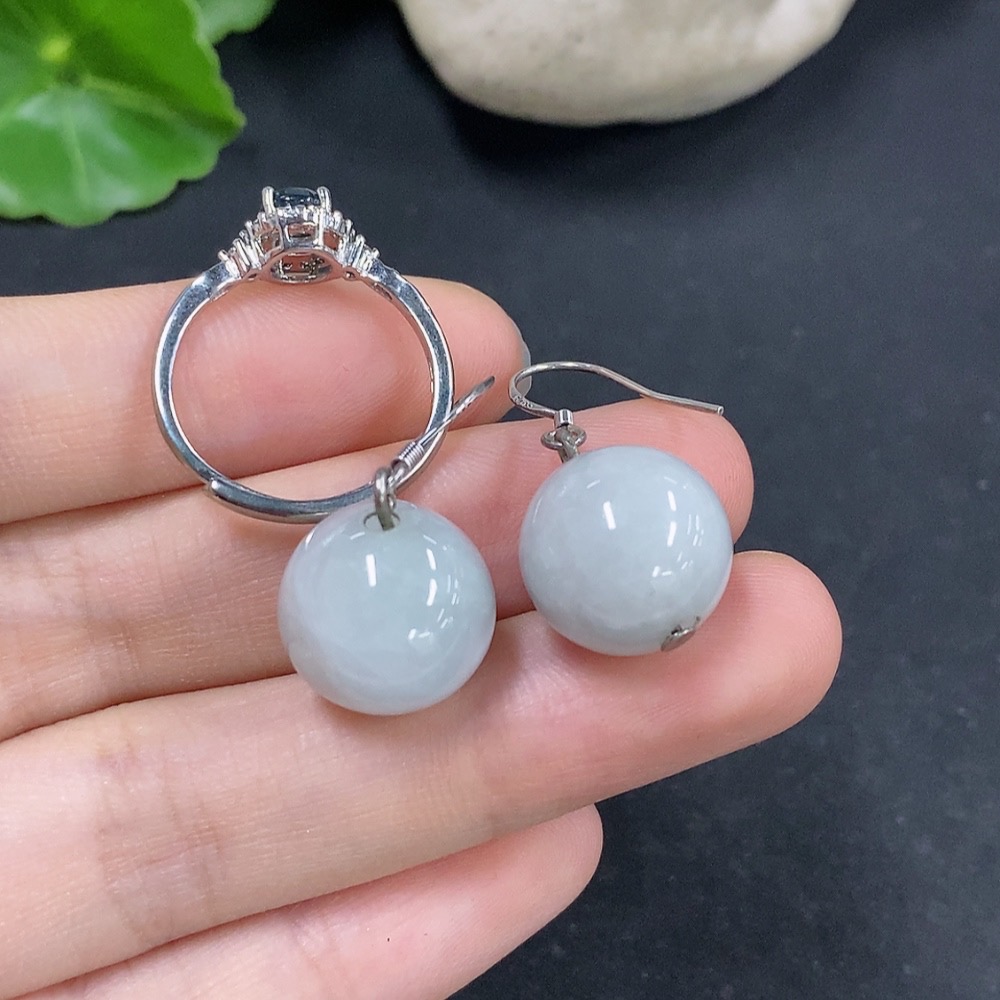 Jadeite Bead Inlaid Earrings / Adjustable Ring (Non-Gold Inlaid)