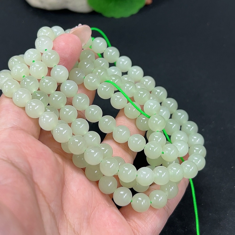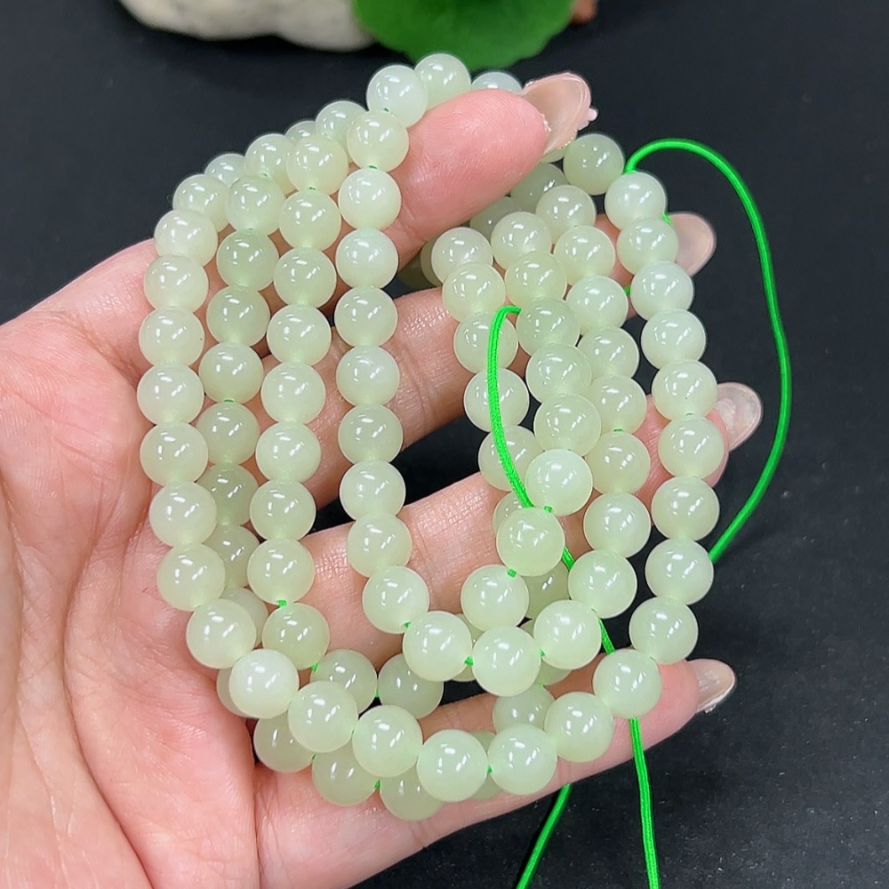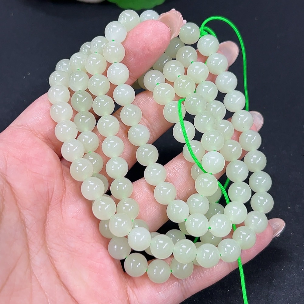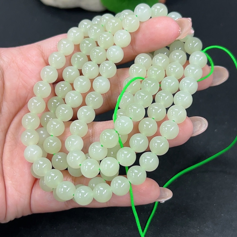 Hetian Jade Bead Necklace Approx. 7.8mm Total Weight Approx. 82.7g