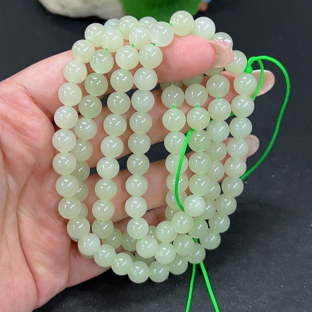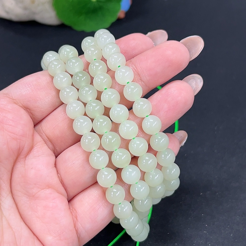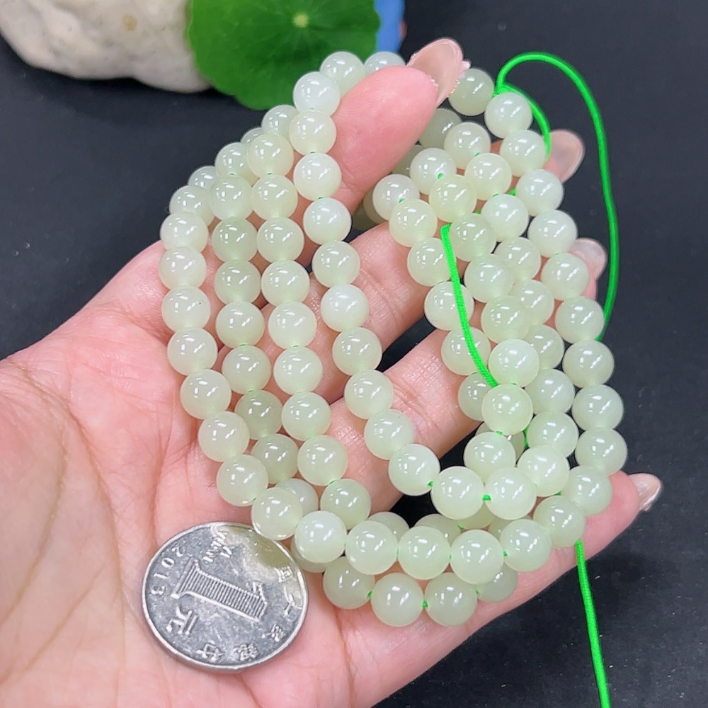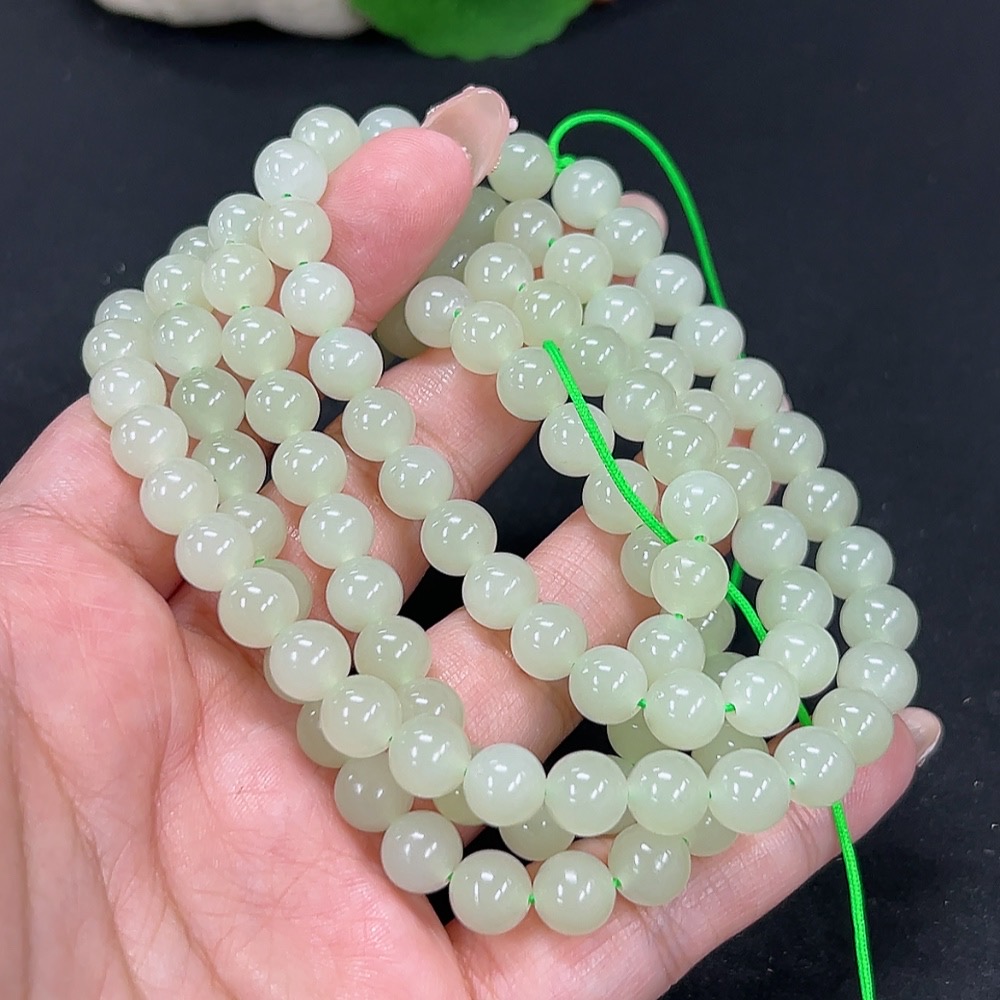 Hetian Jade Bead Necklace Approx. 7.8mm Total Weight Approx. 82.7g