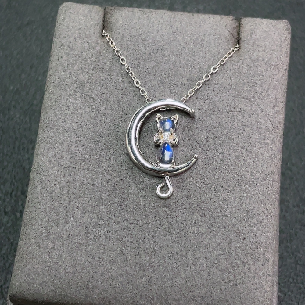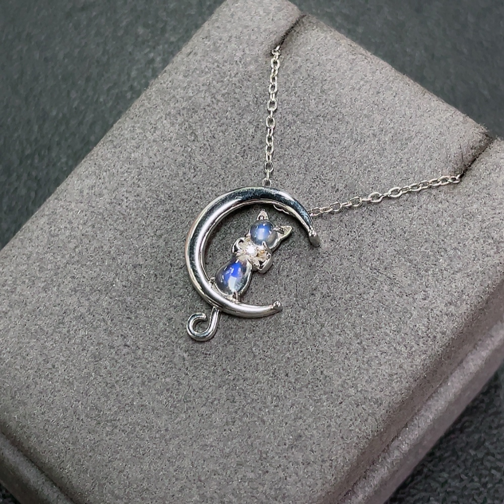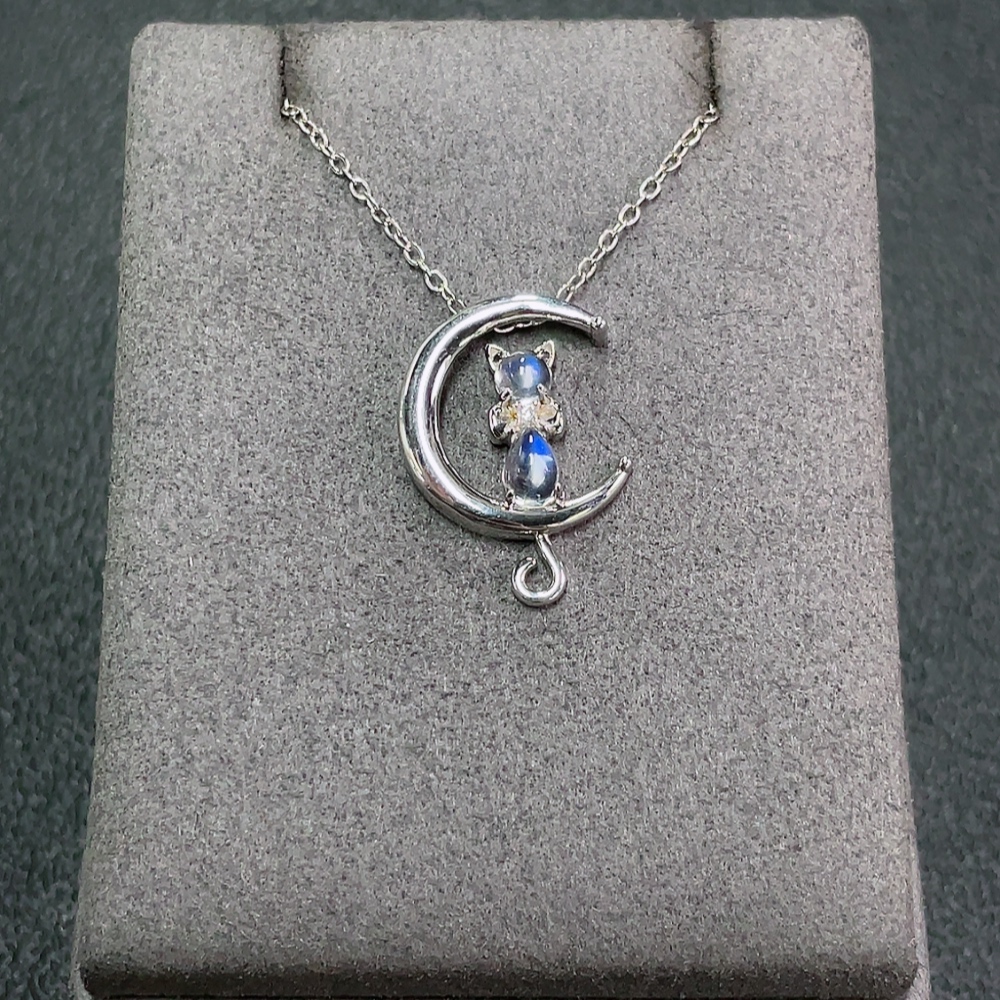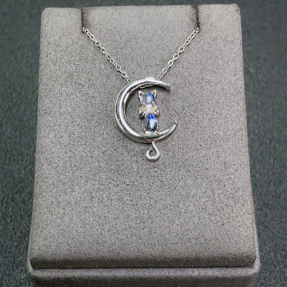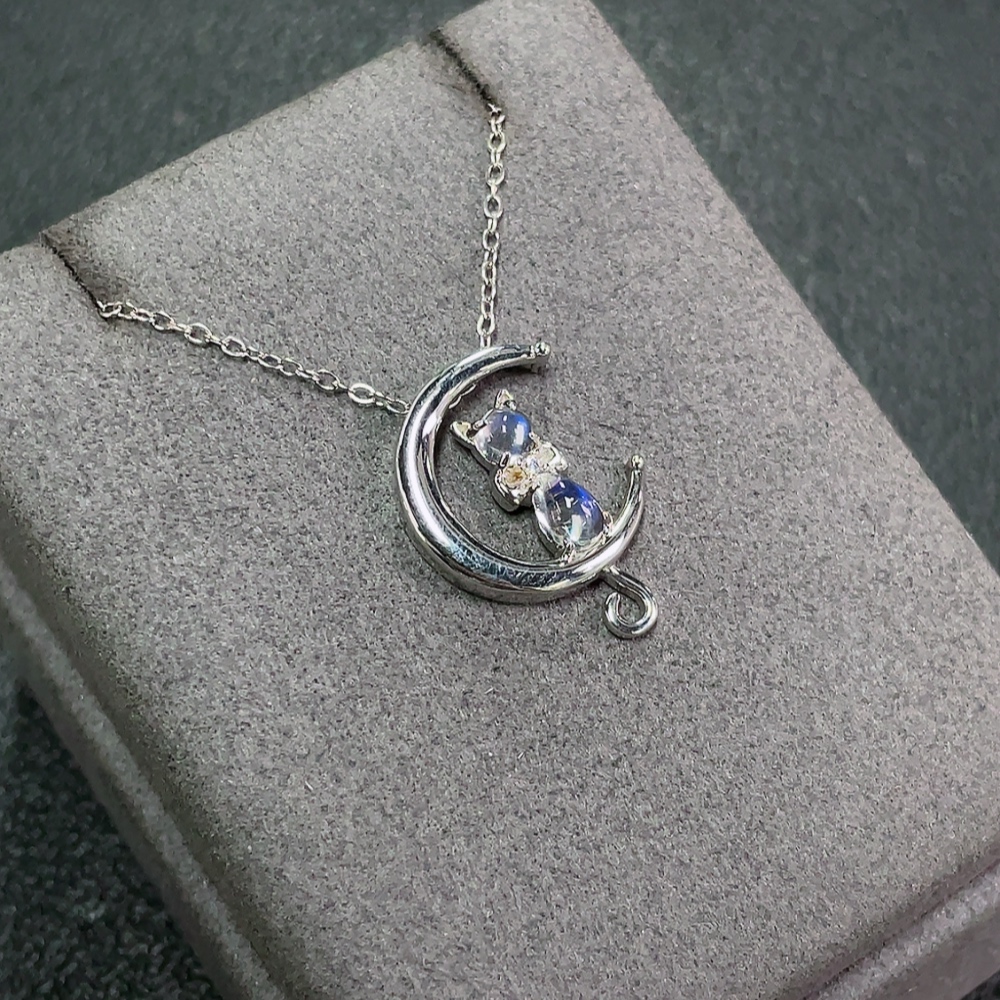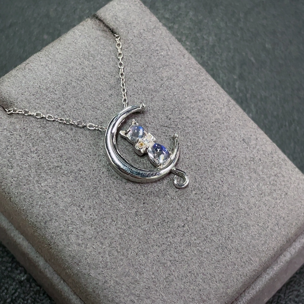 Moonstone Necklace with Visible Organic Matter, Non-Gold, Total Weight Approx. 3.69g