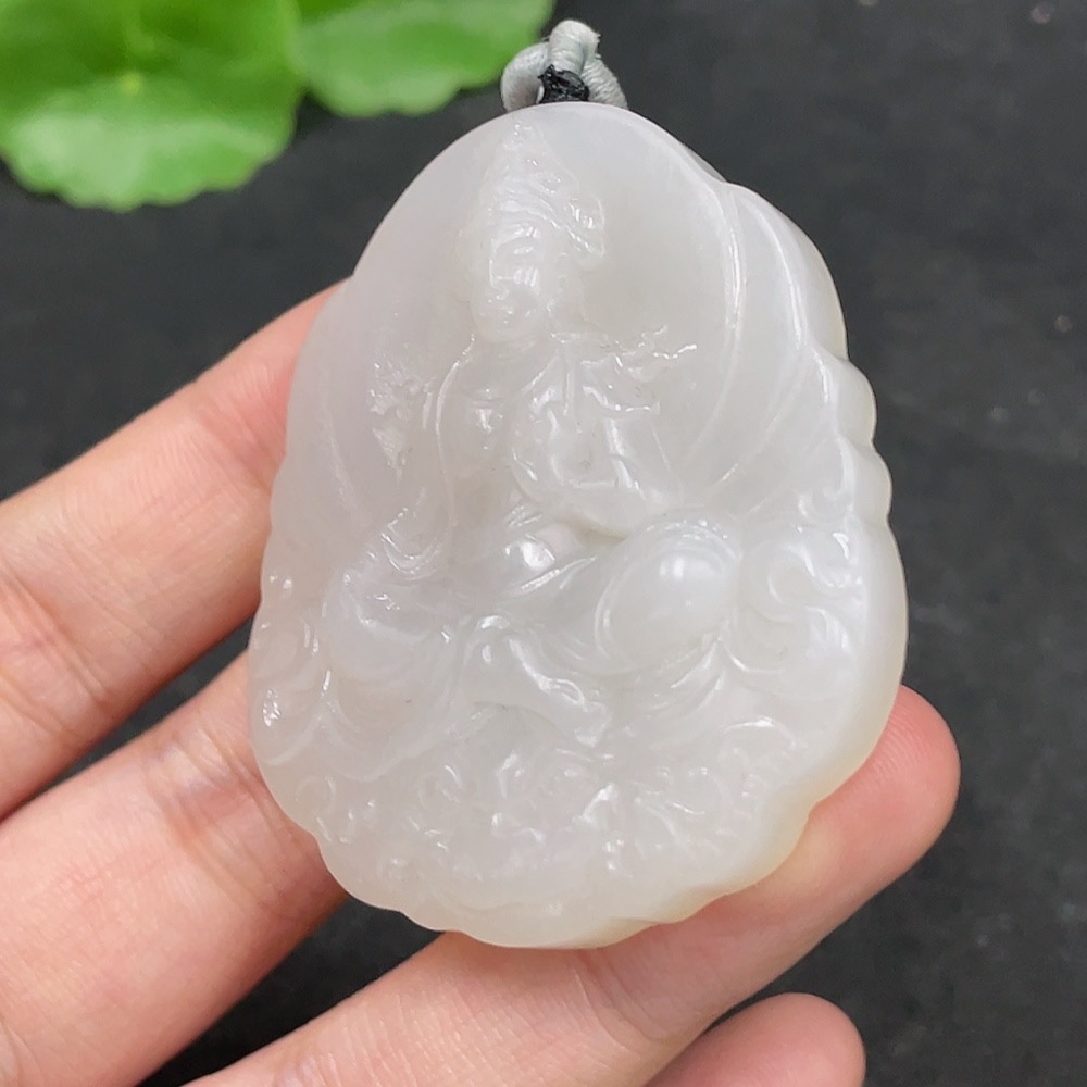 Hetian Jade Pendant Guanyin Total Weight (including rope) 43.4g