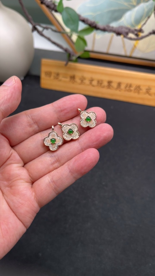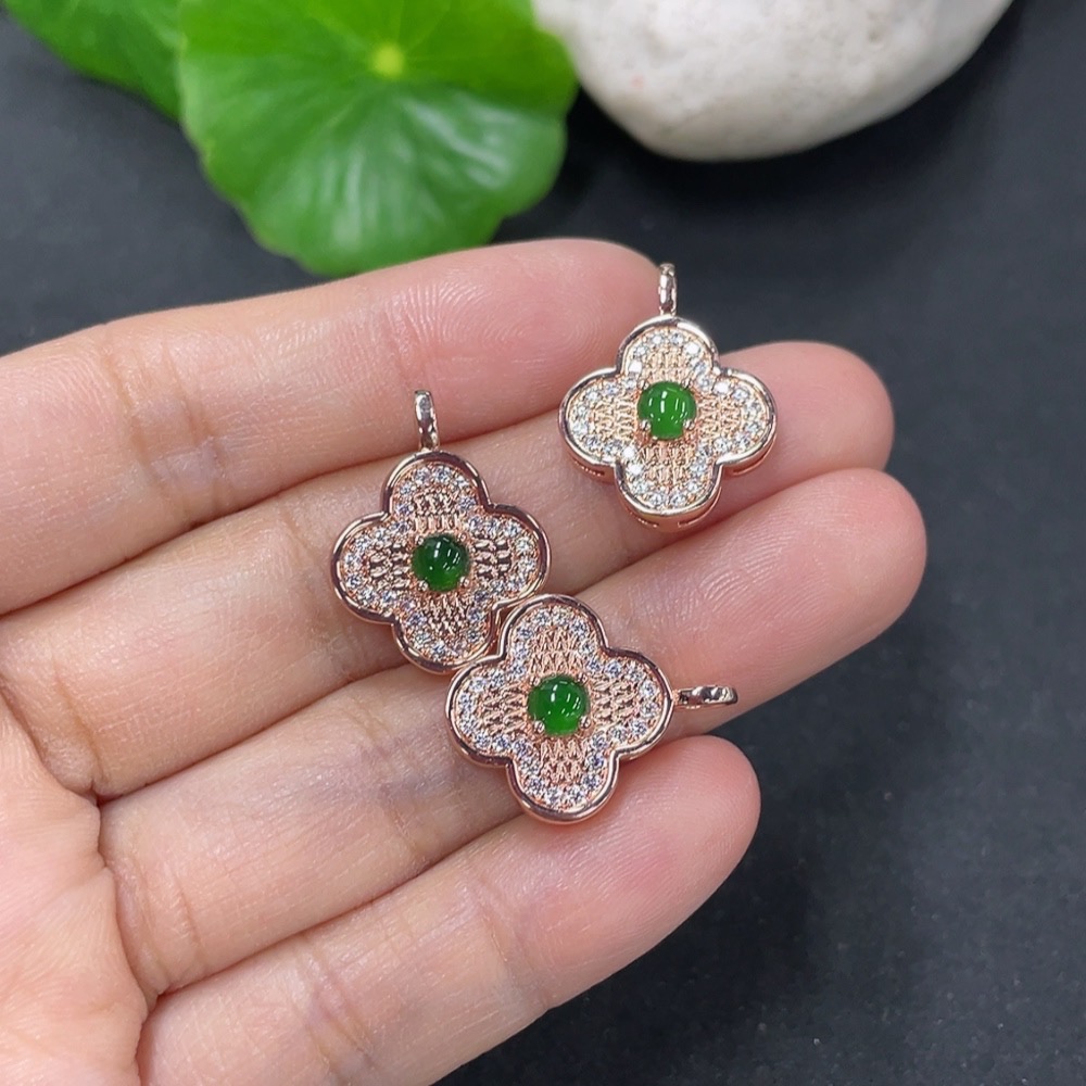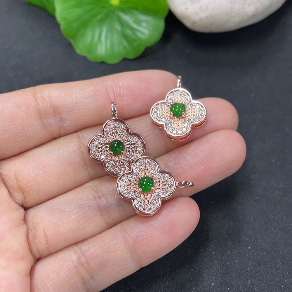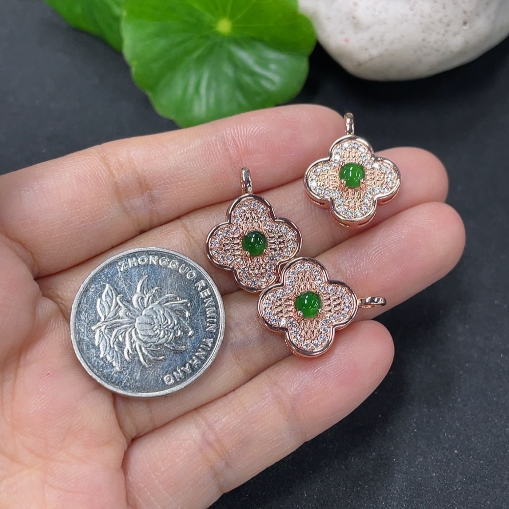 Jadeite Inlaid Pendant Sell as a Lot Non-Gold