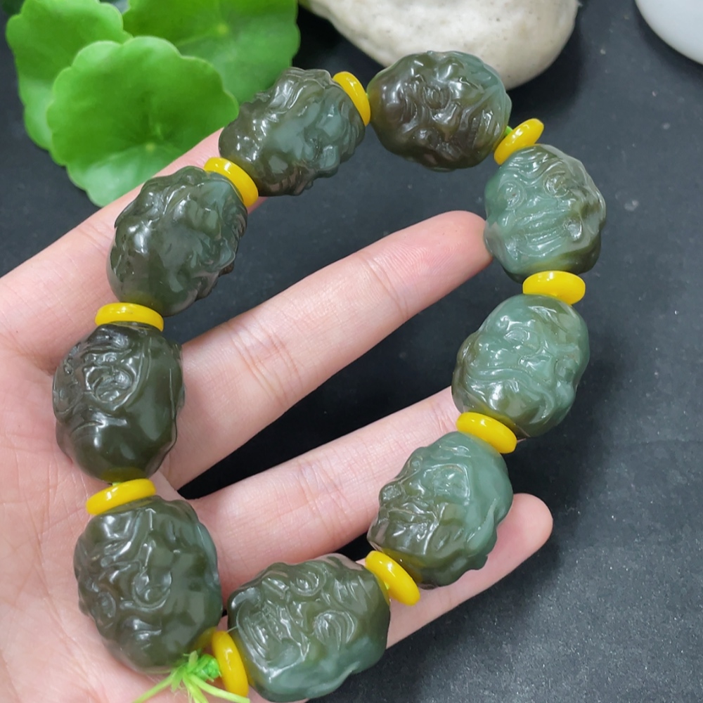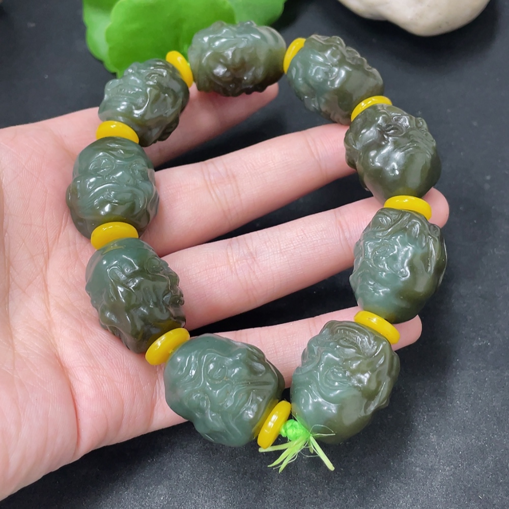 Hetian Jade Eighteen Arhats Bracelet Total weight about 126.2g Beads not Hetian Jade