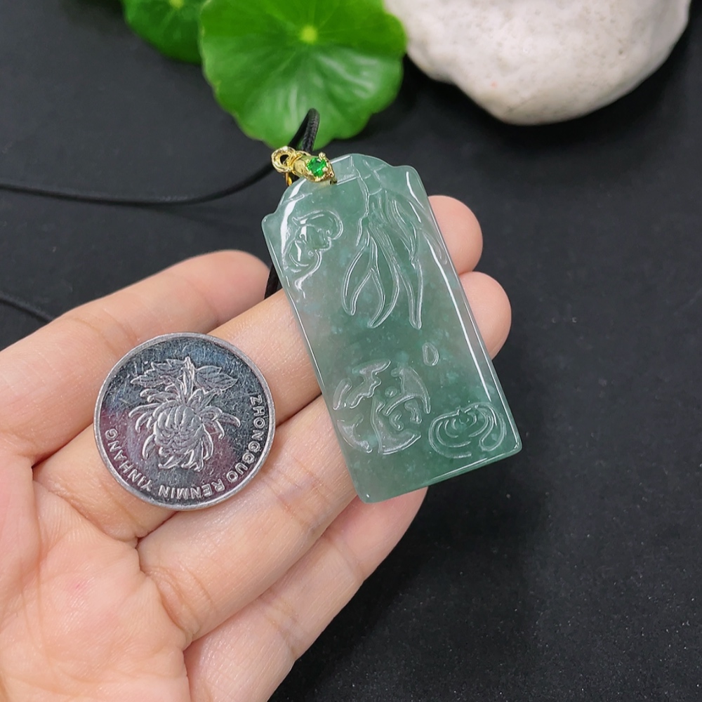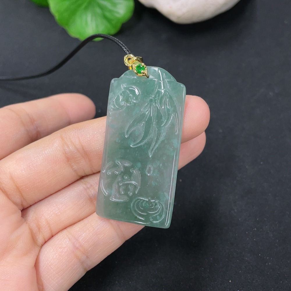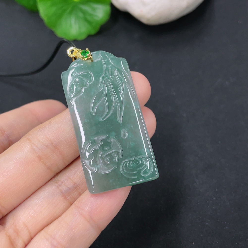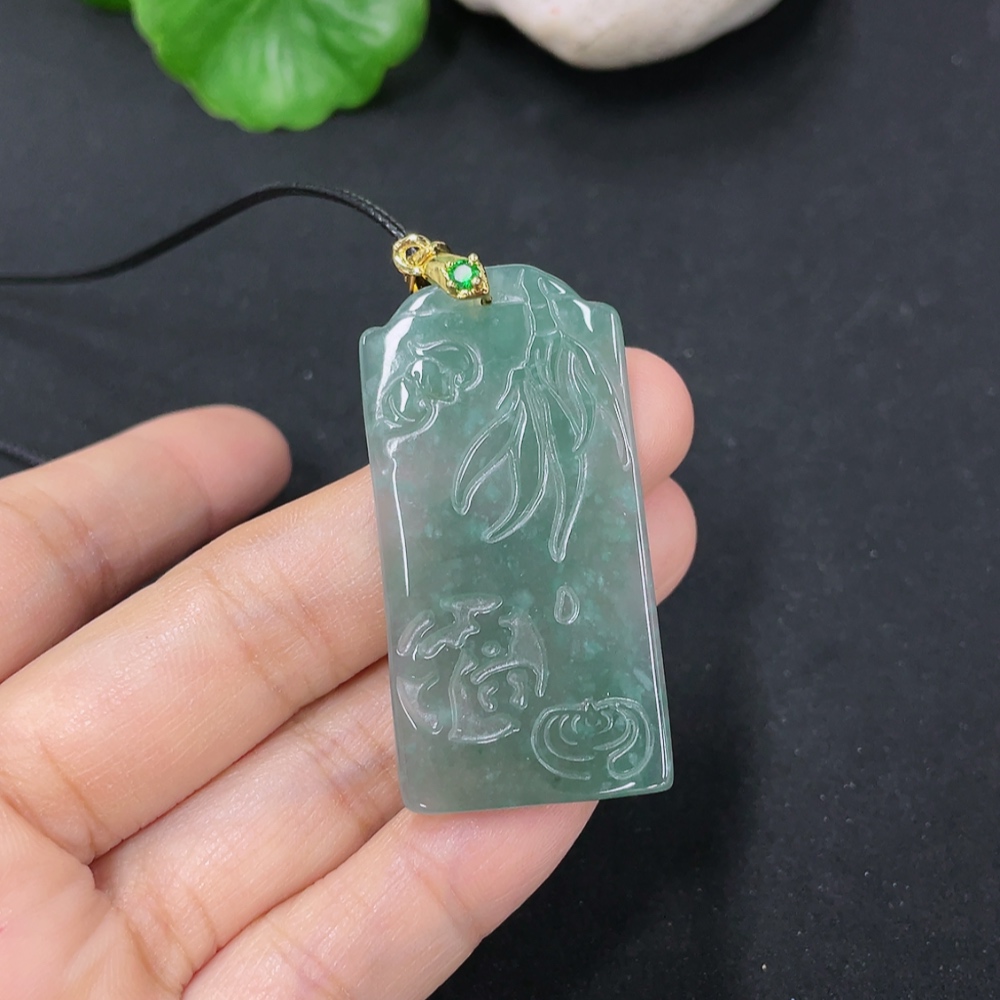 Jadeite Pendant Non-Gold Inlaid Total Weight Including Rope Approximately 8.9g