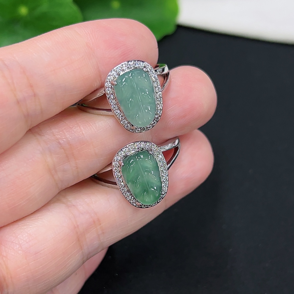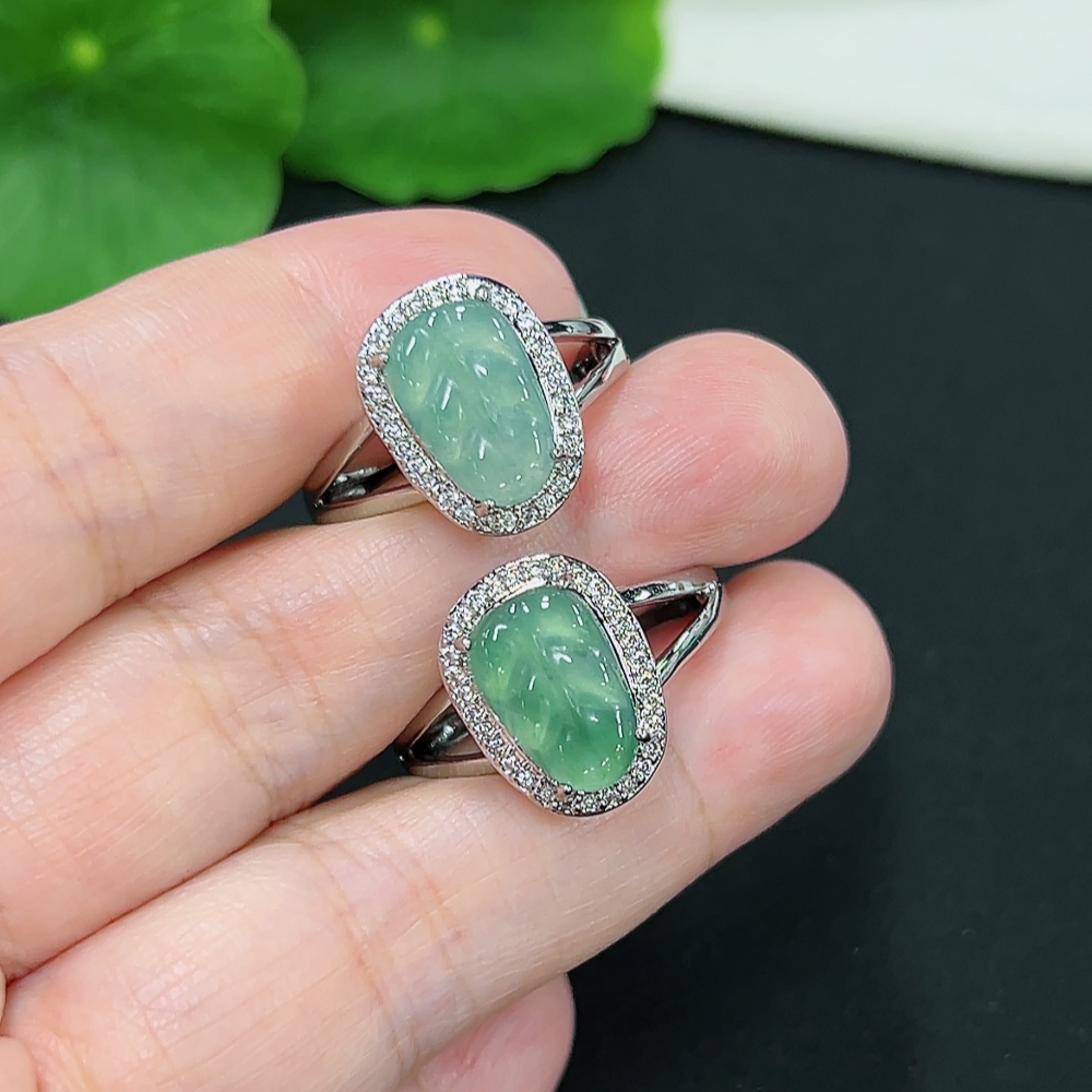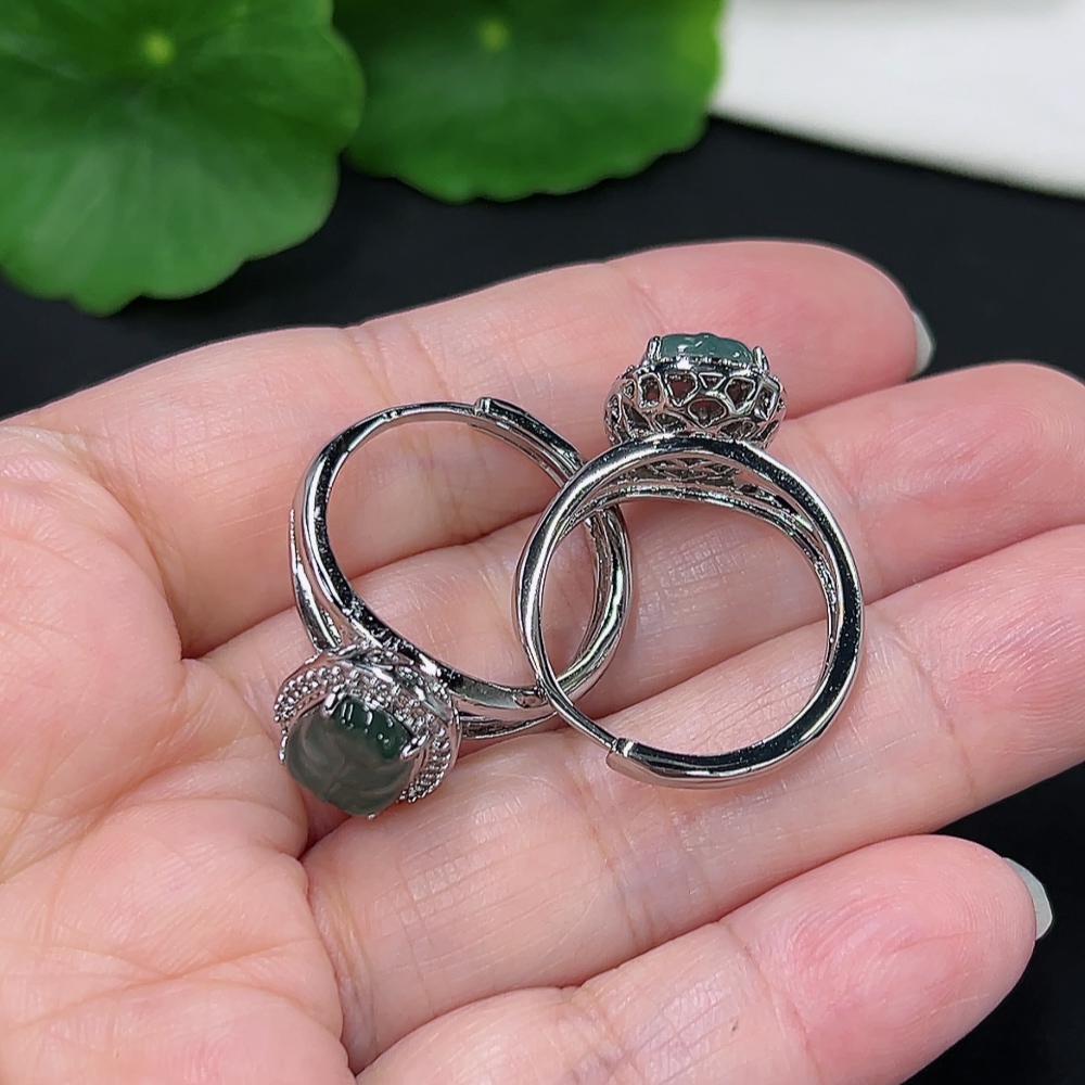 Jadeite Inlaid Ring Sell as a Lot Non-Gold Inlaid Adjustable