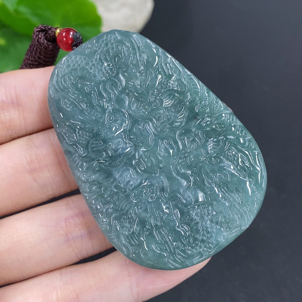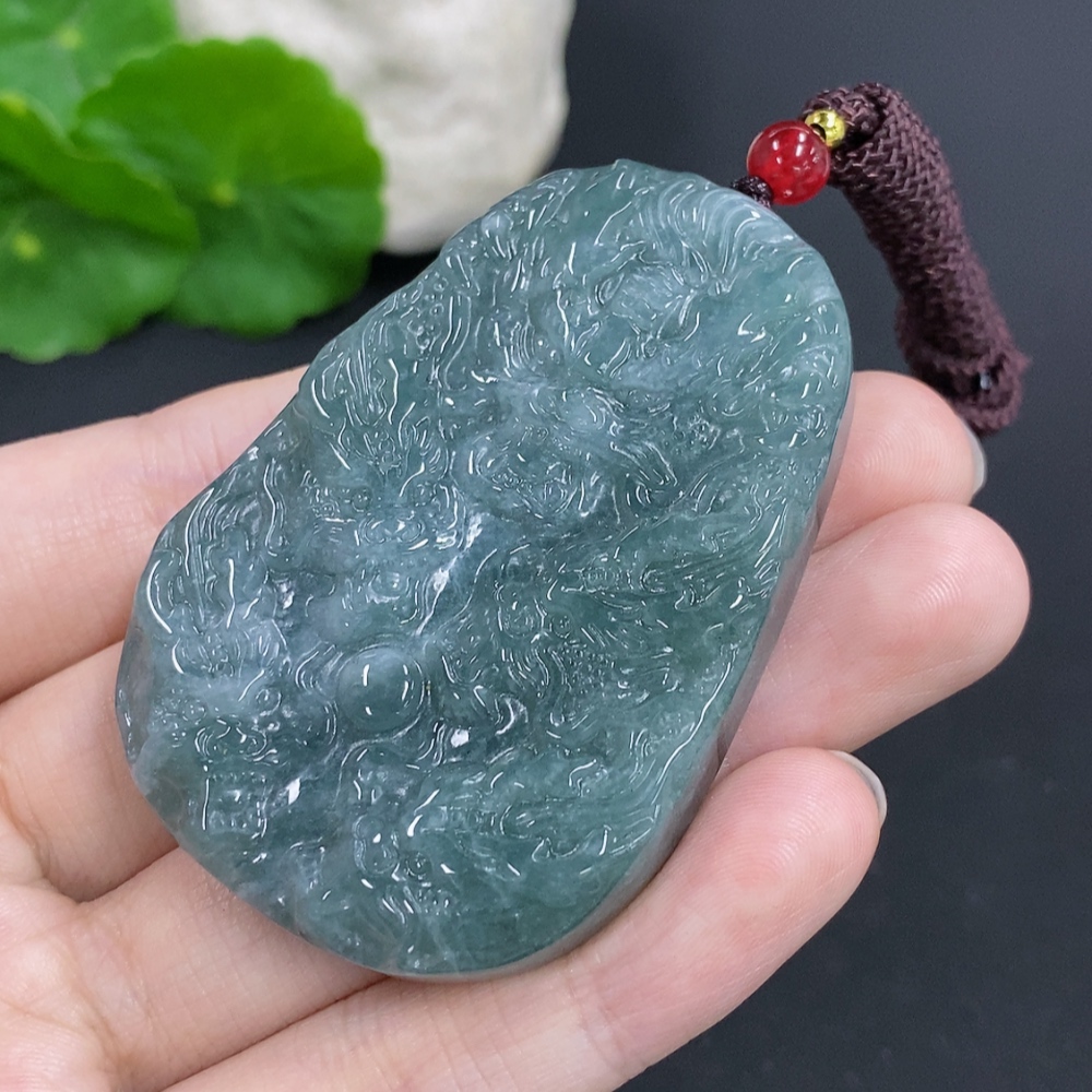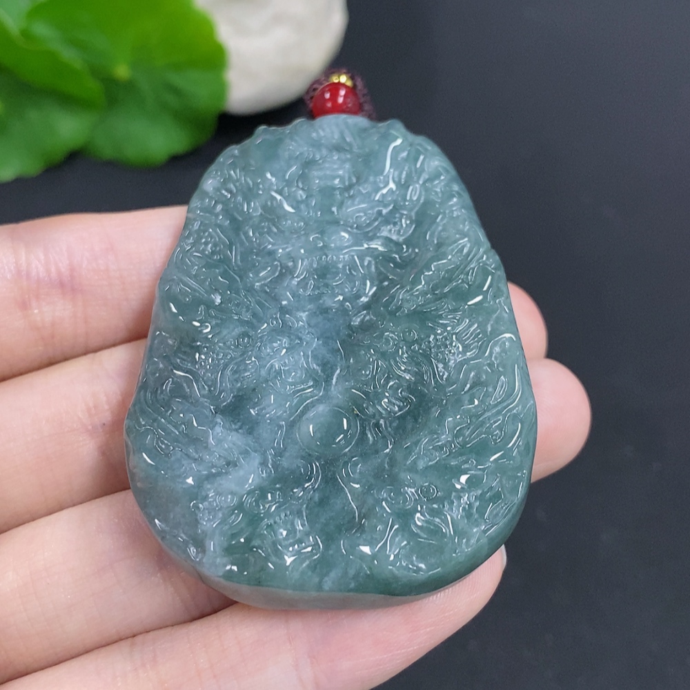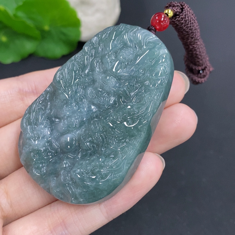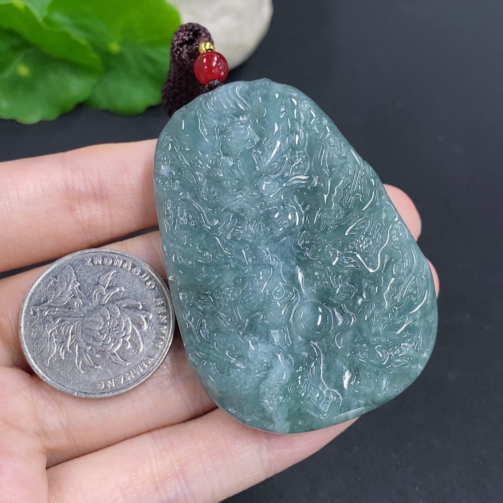 Jadeite Dragon Pendant Total Weight Including Rope Approximately 62.5g