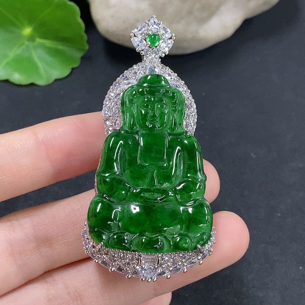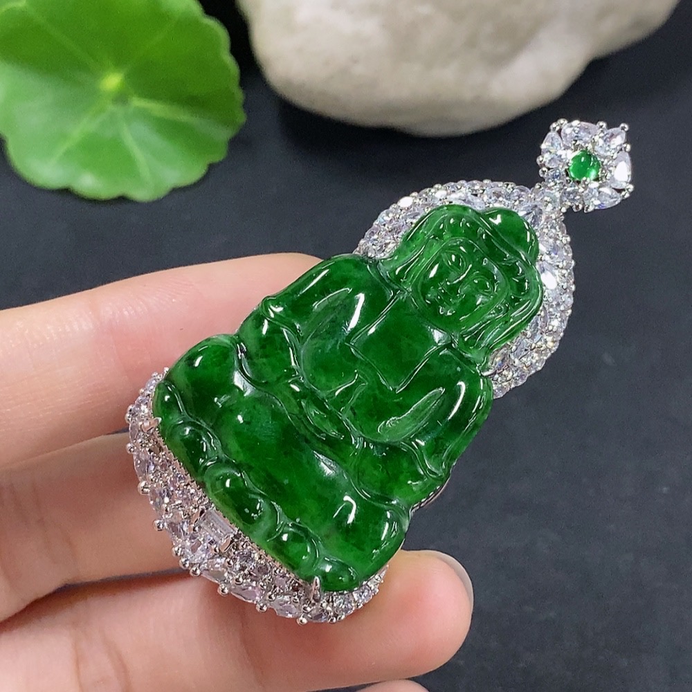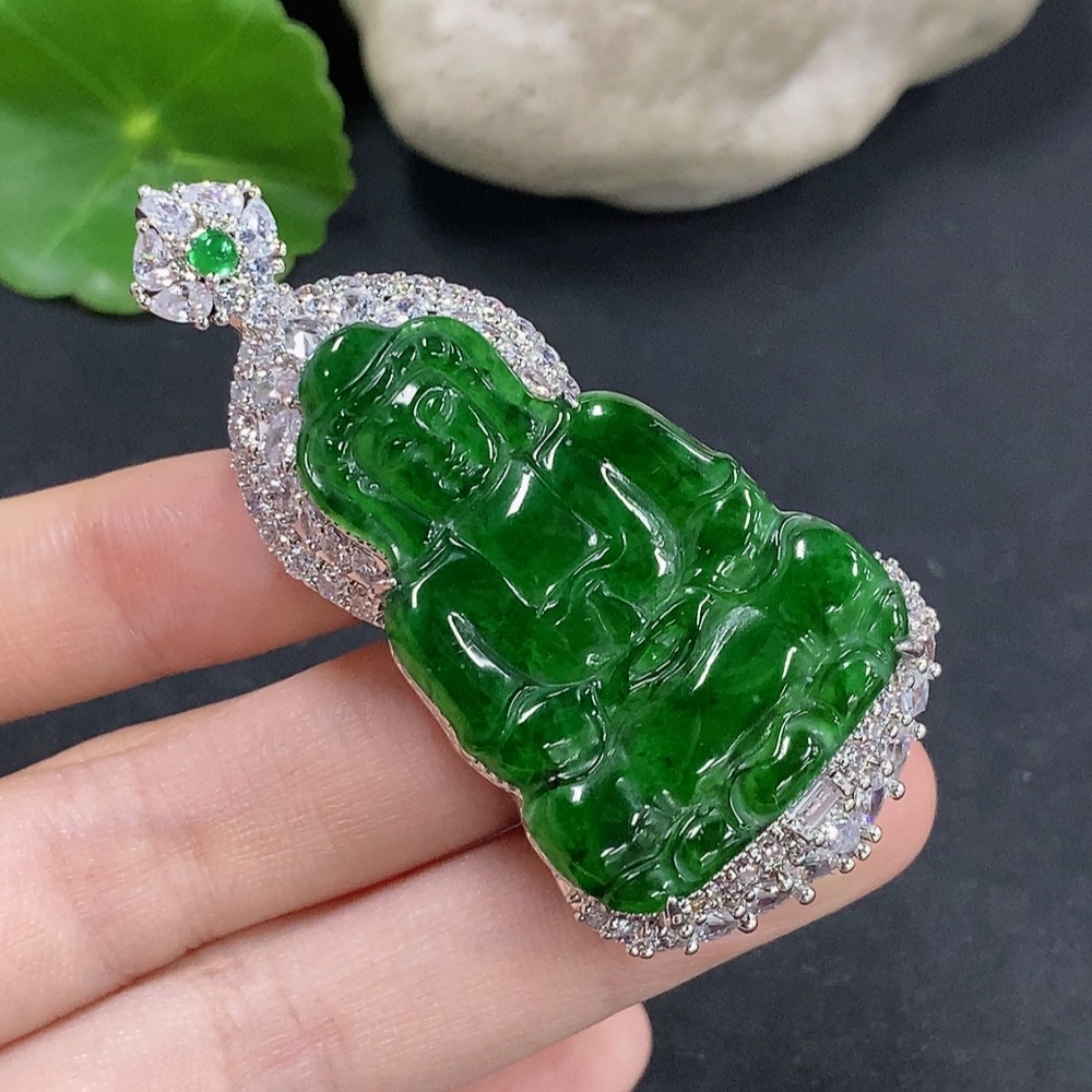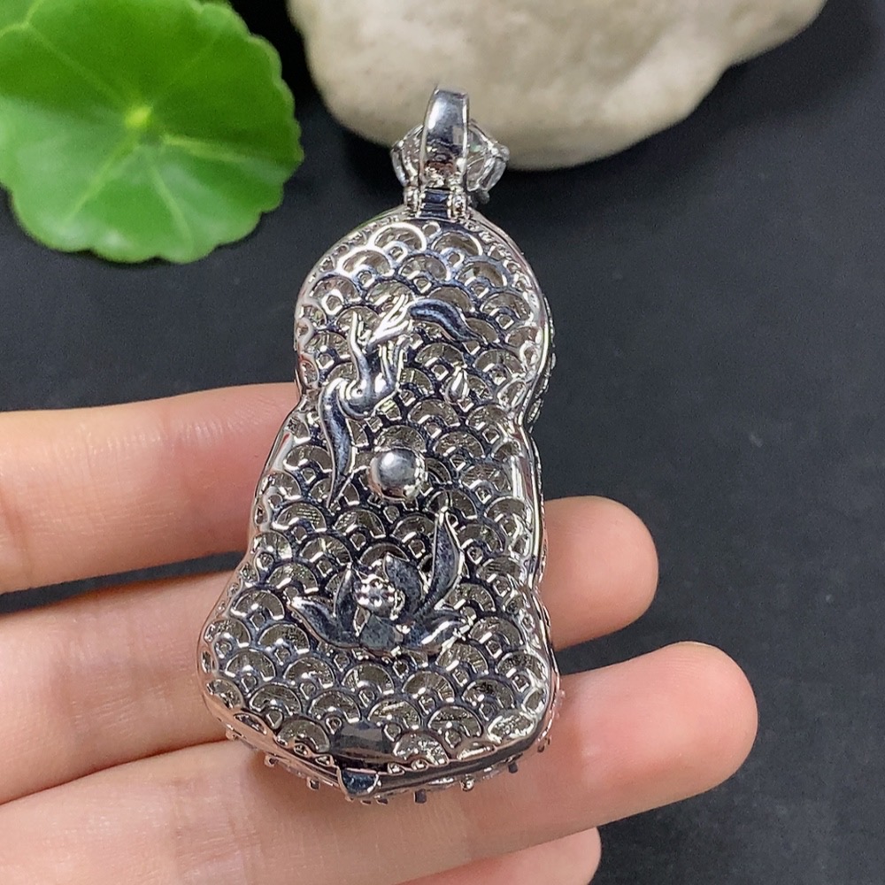 Jadeite Guanyin Inlaid Pendant Non-Gold Inlaid Total Weight About 29.78g