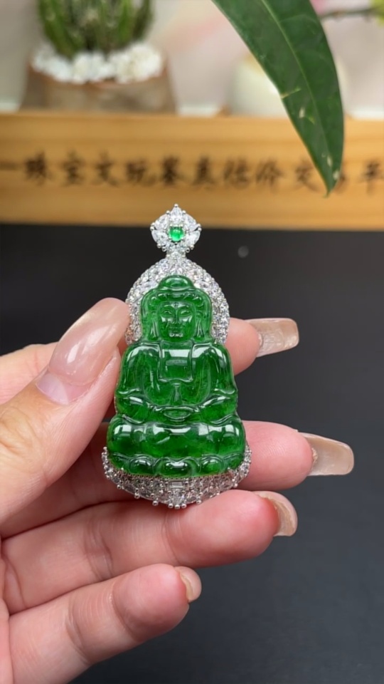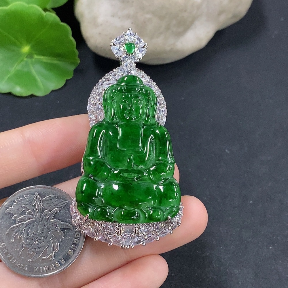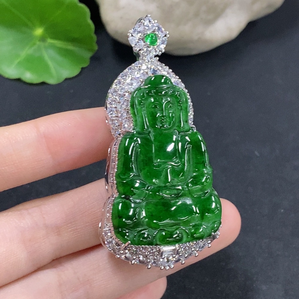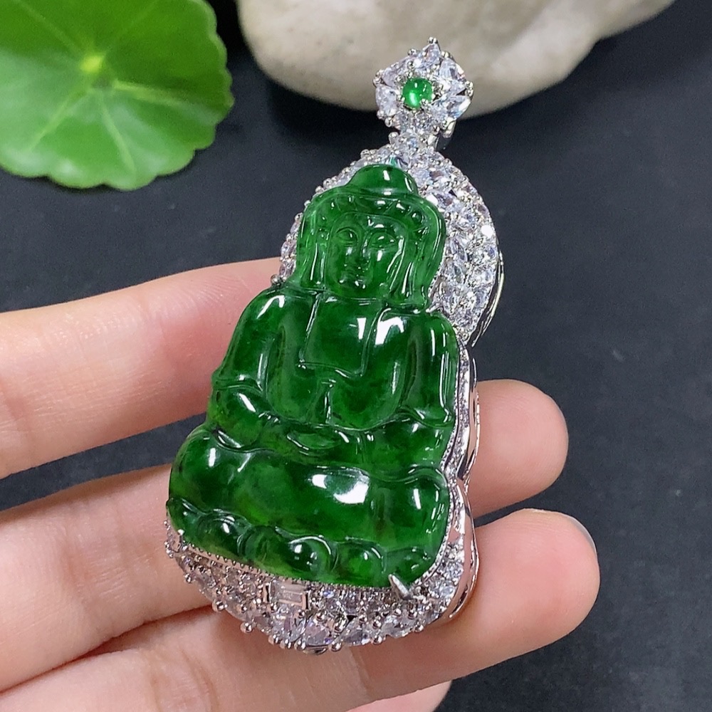 Jadeite Guanyin Inlaid Pendant Non-Gold Inlaid Total Weight About 29.78g