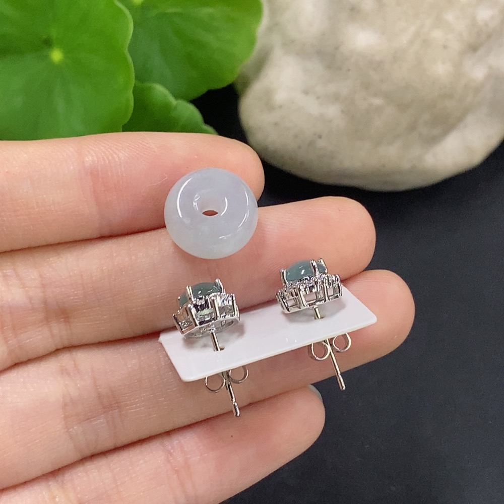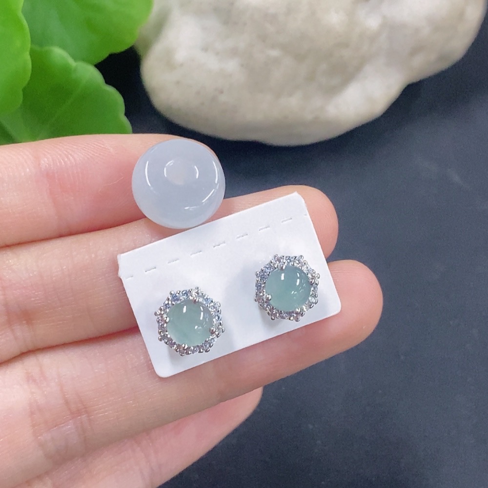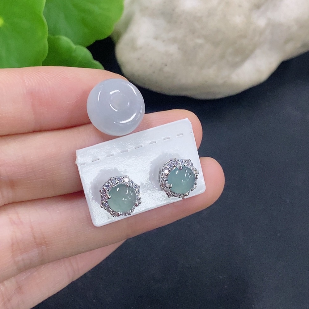 Jadeite Bezel-set Earrings/Ping An Kou Pendant Non-gold Inlay