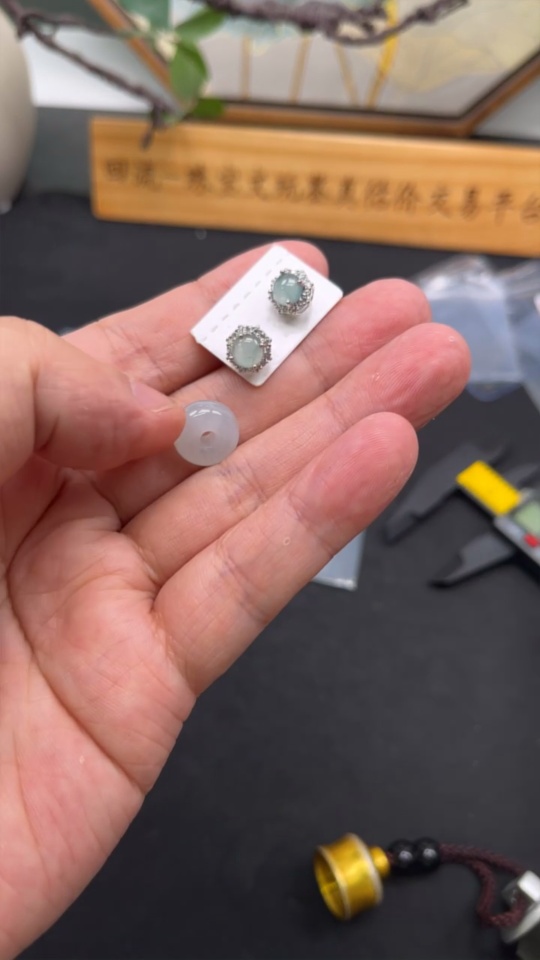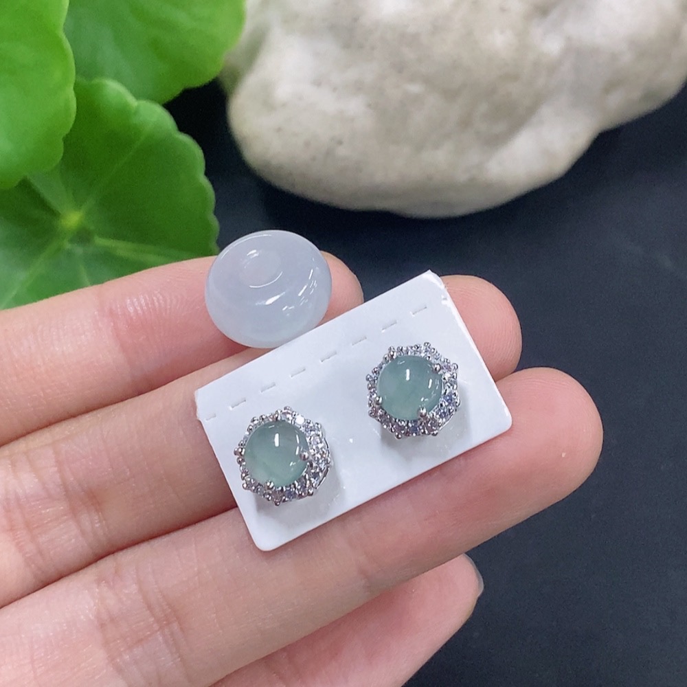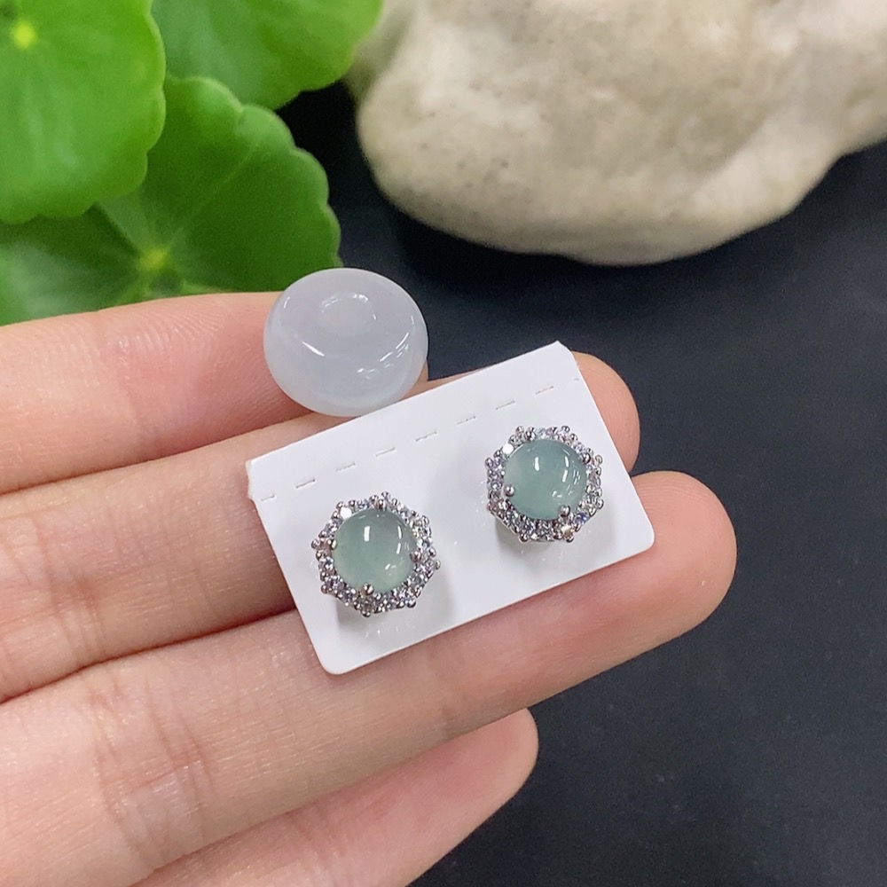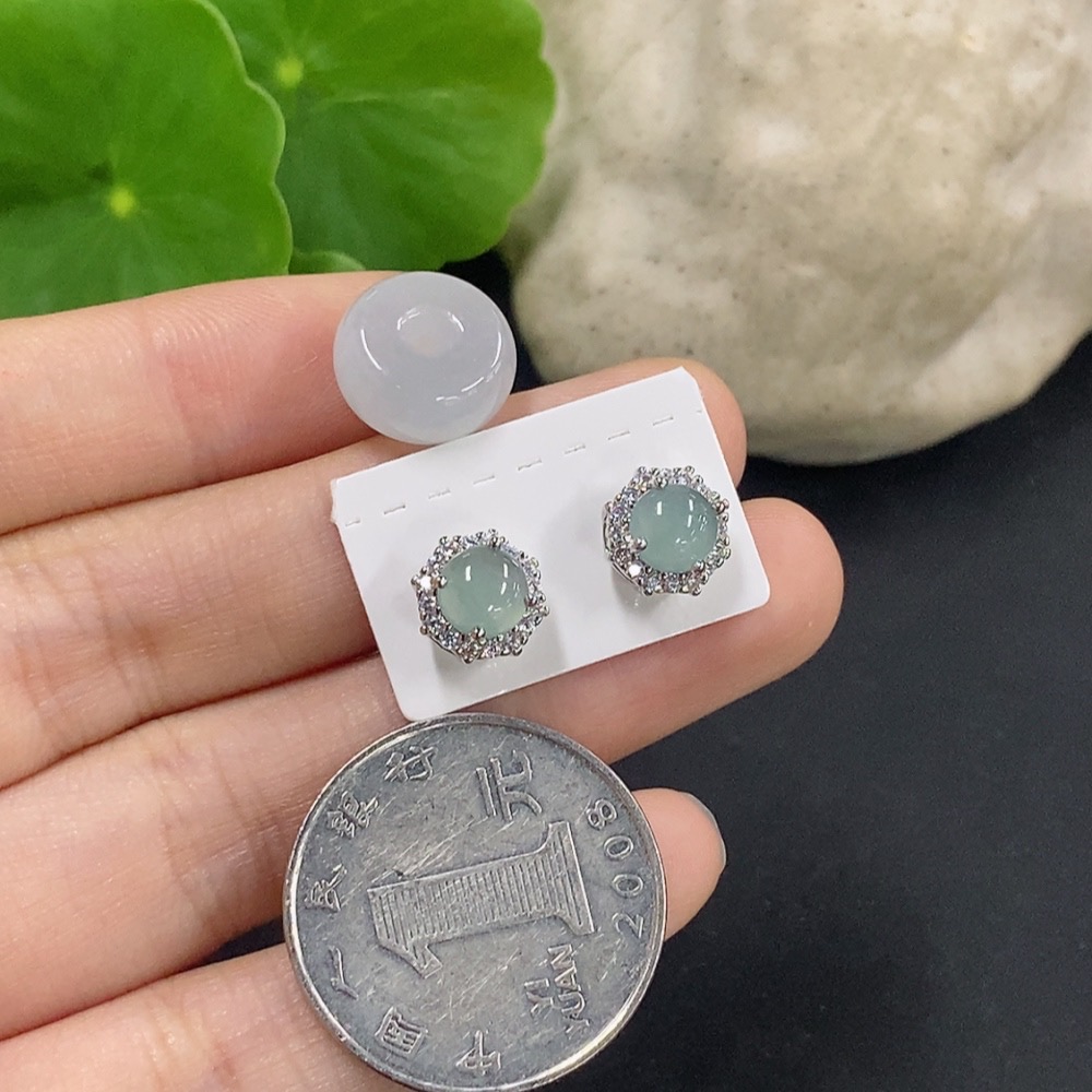 Jadeite Bezel-set Earrings/Ping An Kou Pendant Non-gold Inlay