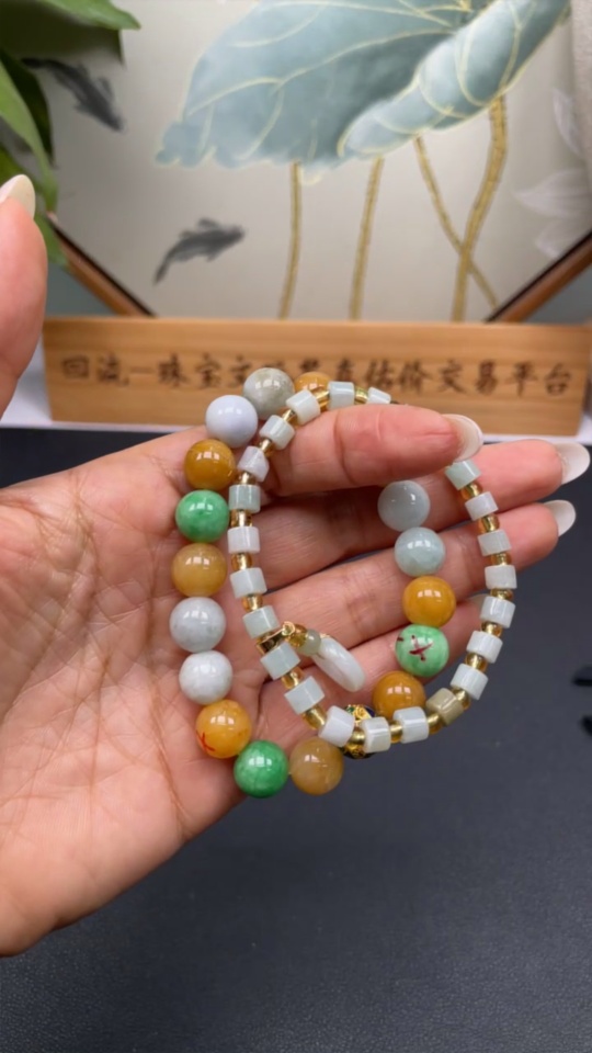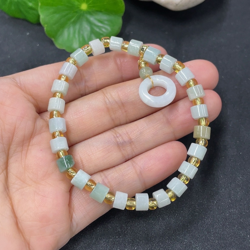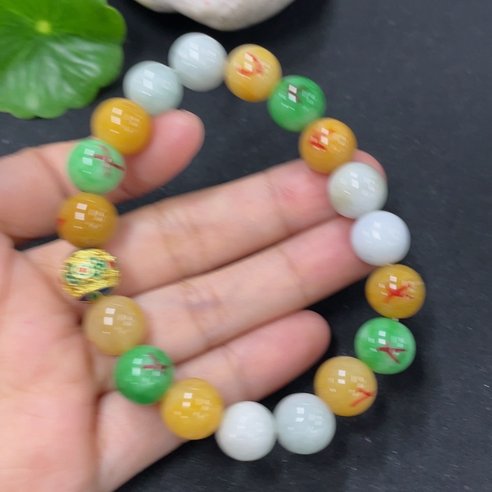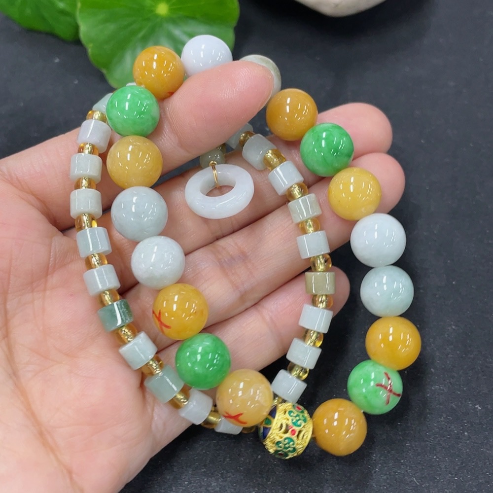 Jadeite Bracelet Sell as a Lot with Non-A Beads (Yellow, Green) Non-Gold