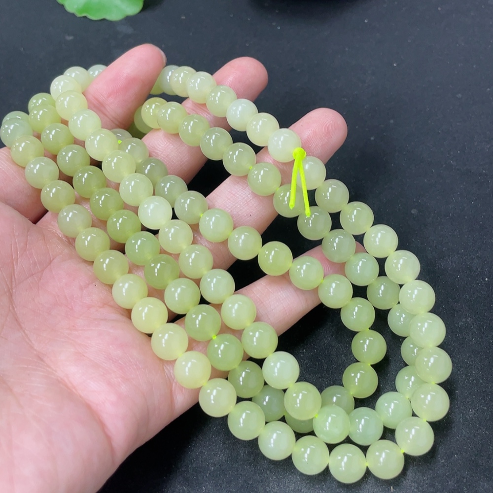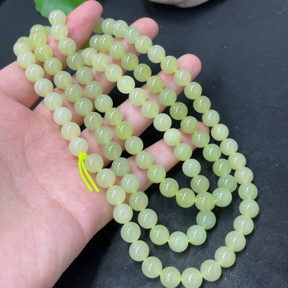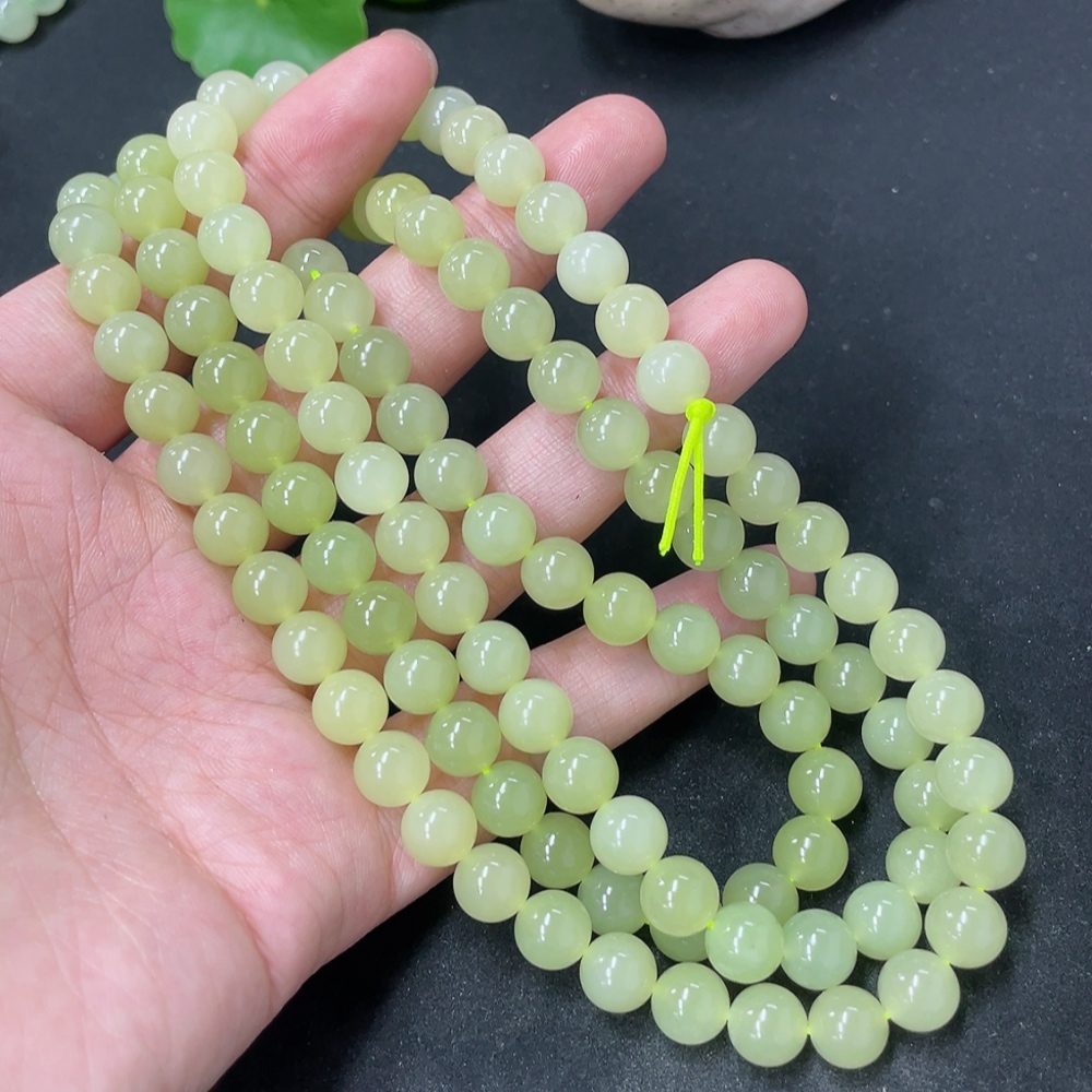 Hetian Jade Bead Necklace, Approx. 7.5mm, Total Weight Approx. 83g
