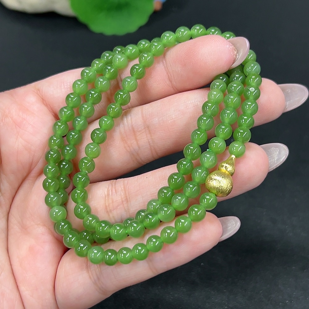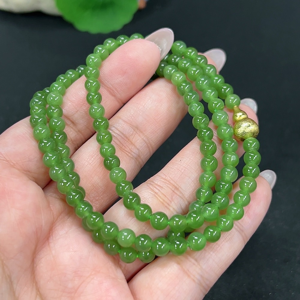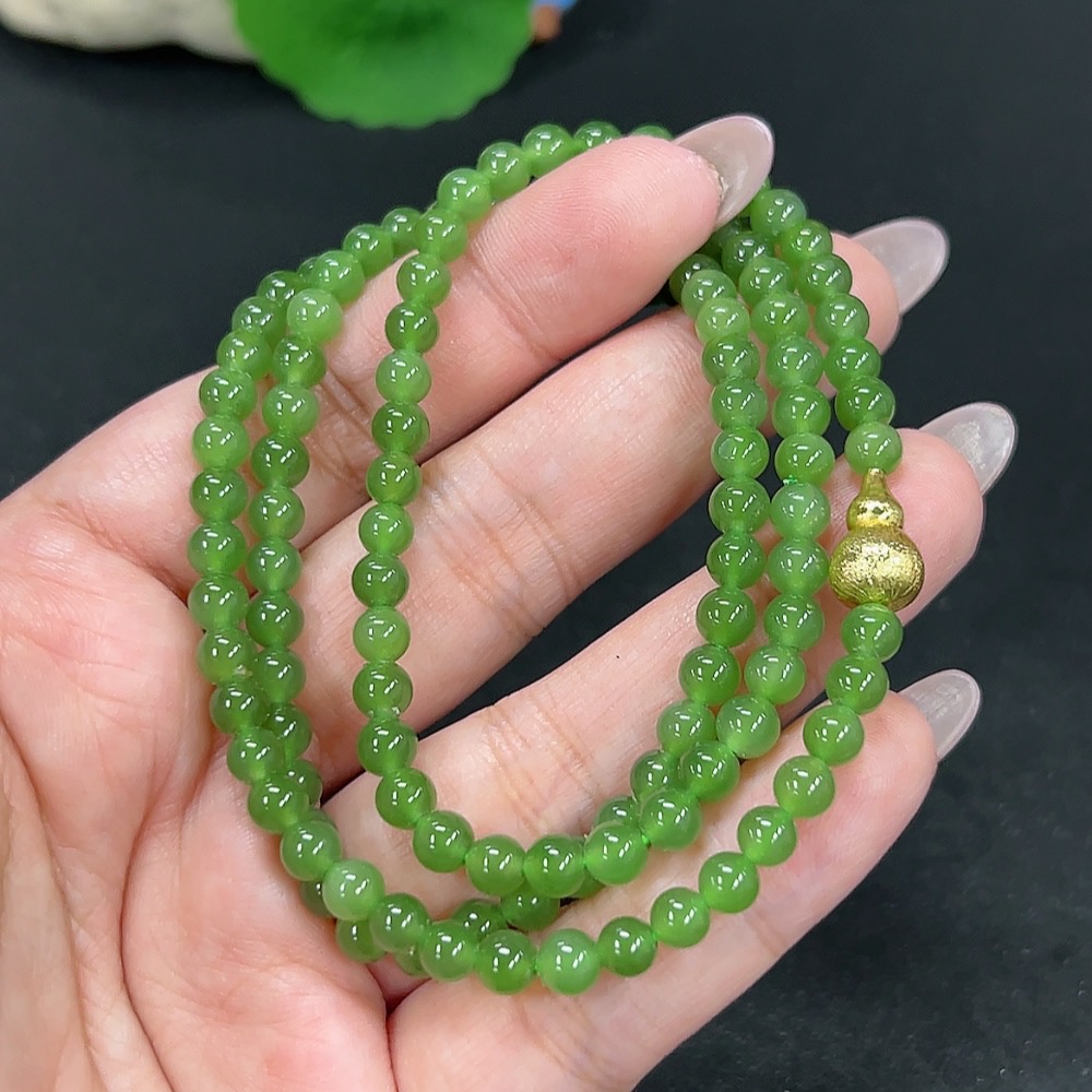 Hetian Jade Bead Necklace Approx. 4.6mm Non-Gold Total Weight Approx. 25.7g