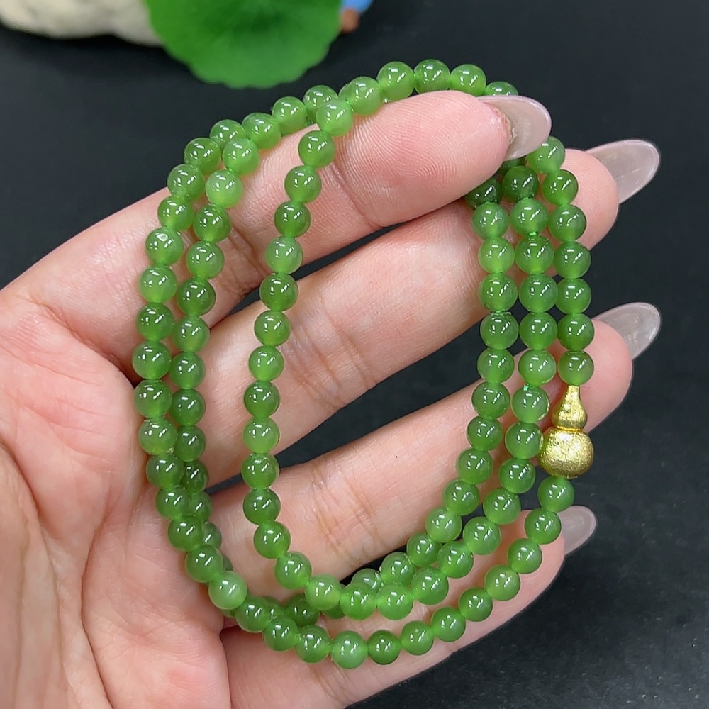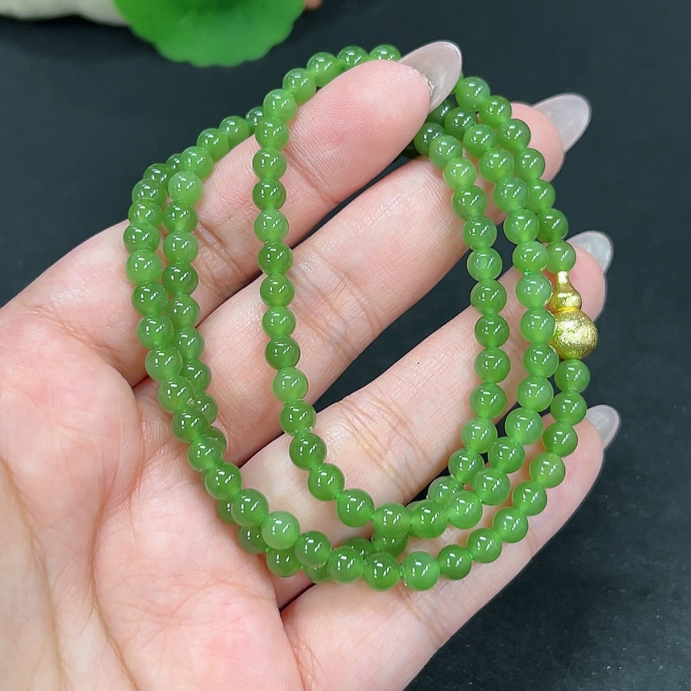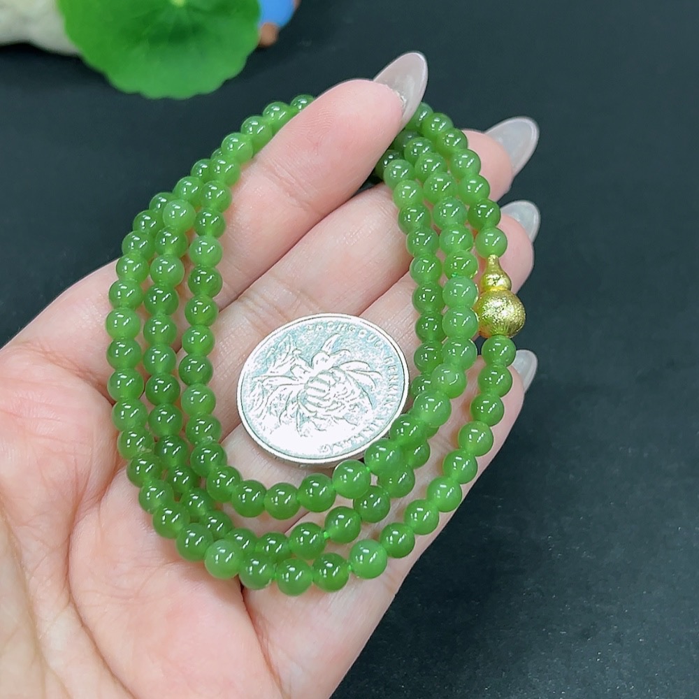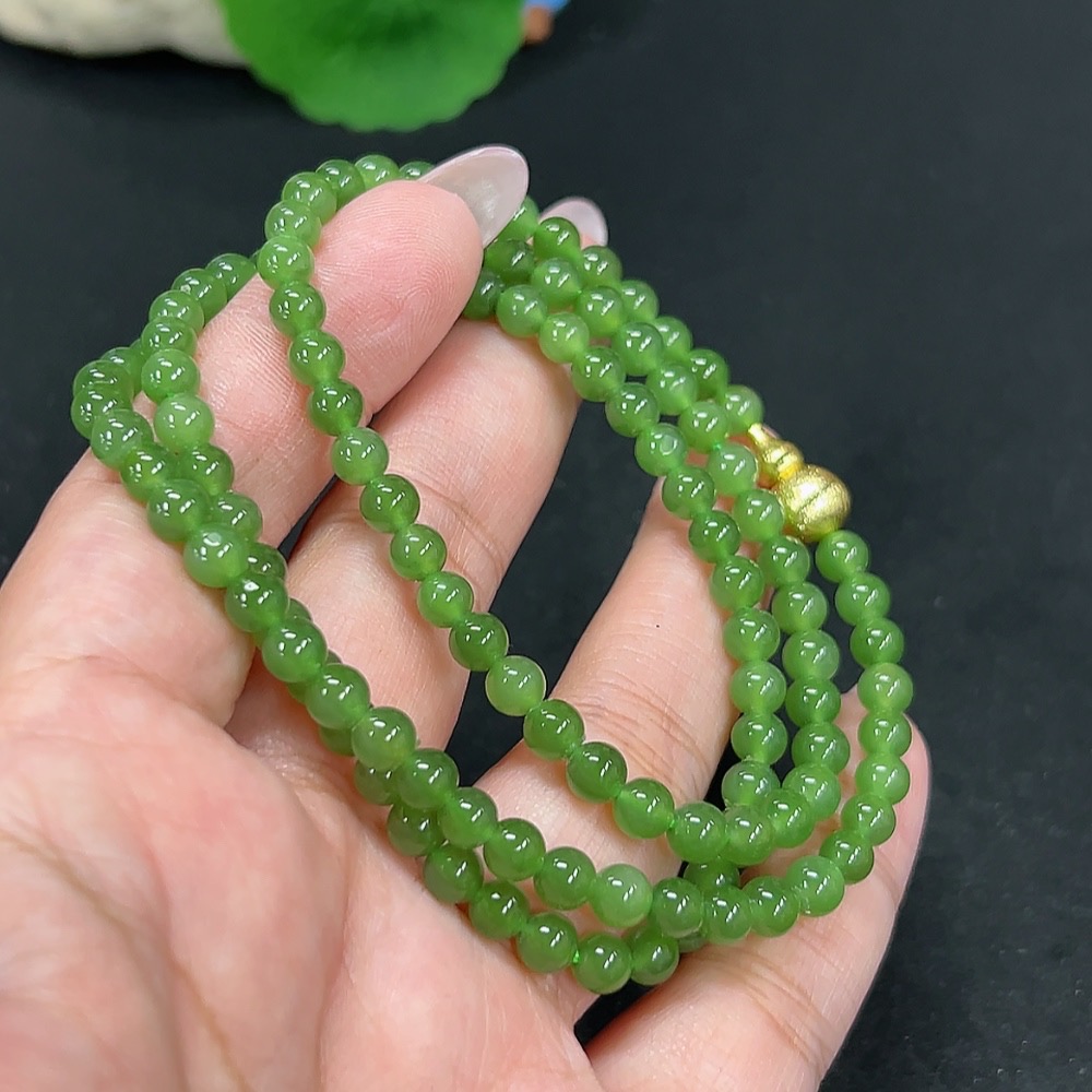 Hetian Jade Bead Necklace Approx. 4.6mm Non-Gold Total Weight Approx. 25.7g