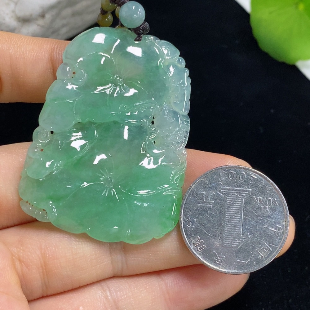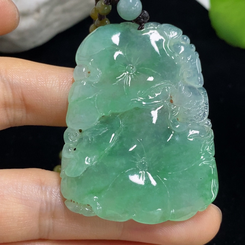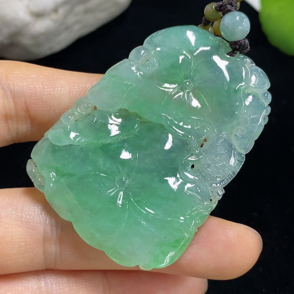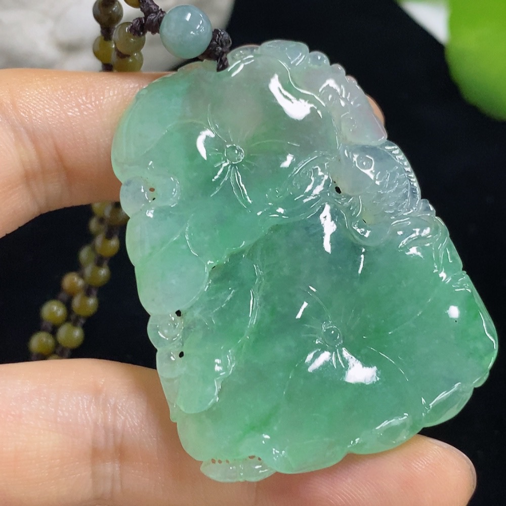 Jadeite Lotus Leaf Fish Pendant Total Weight Approx. 30.46g (Incl. Chain)