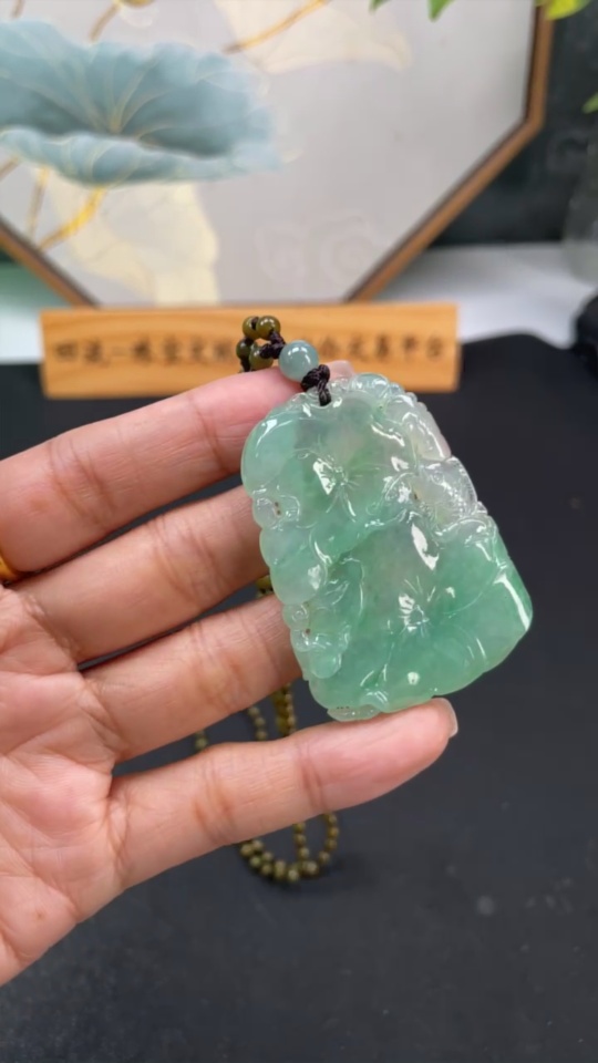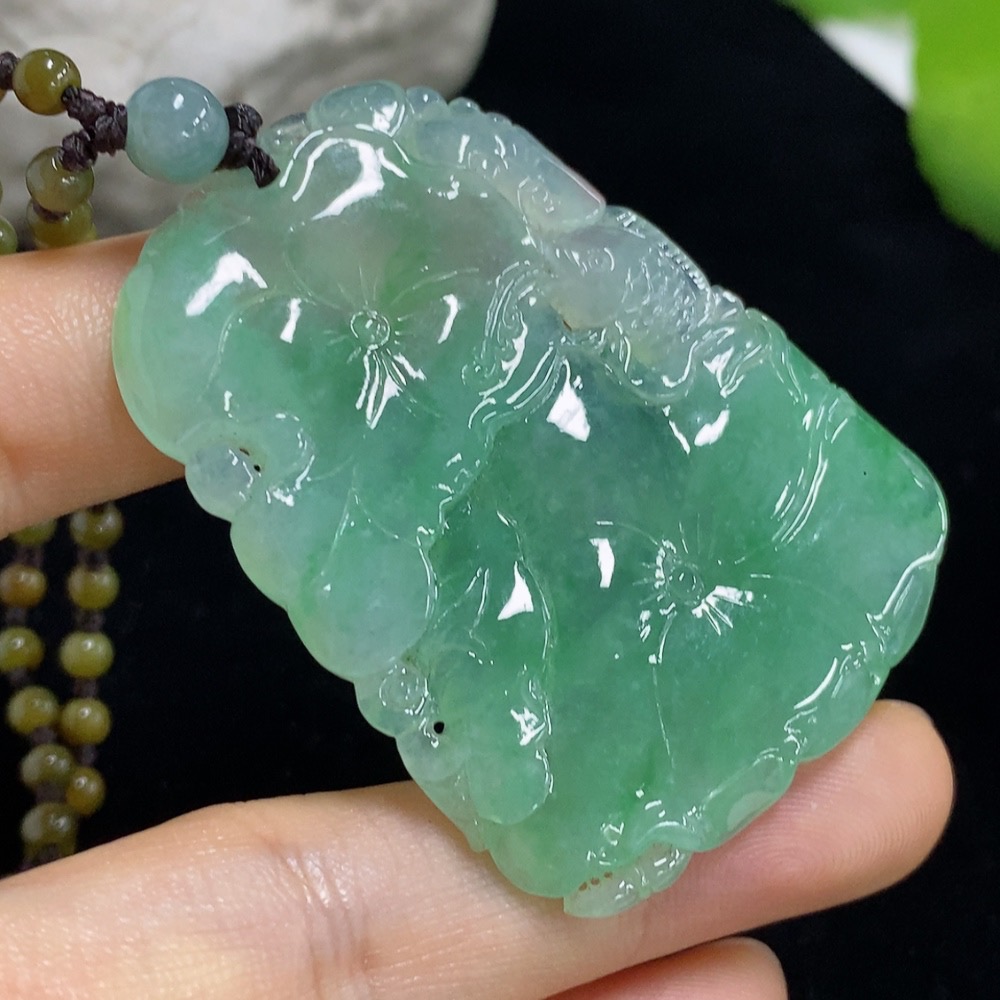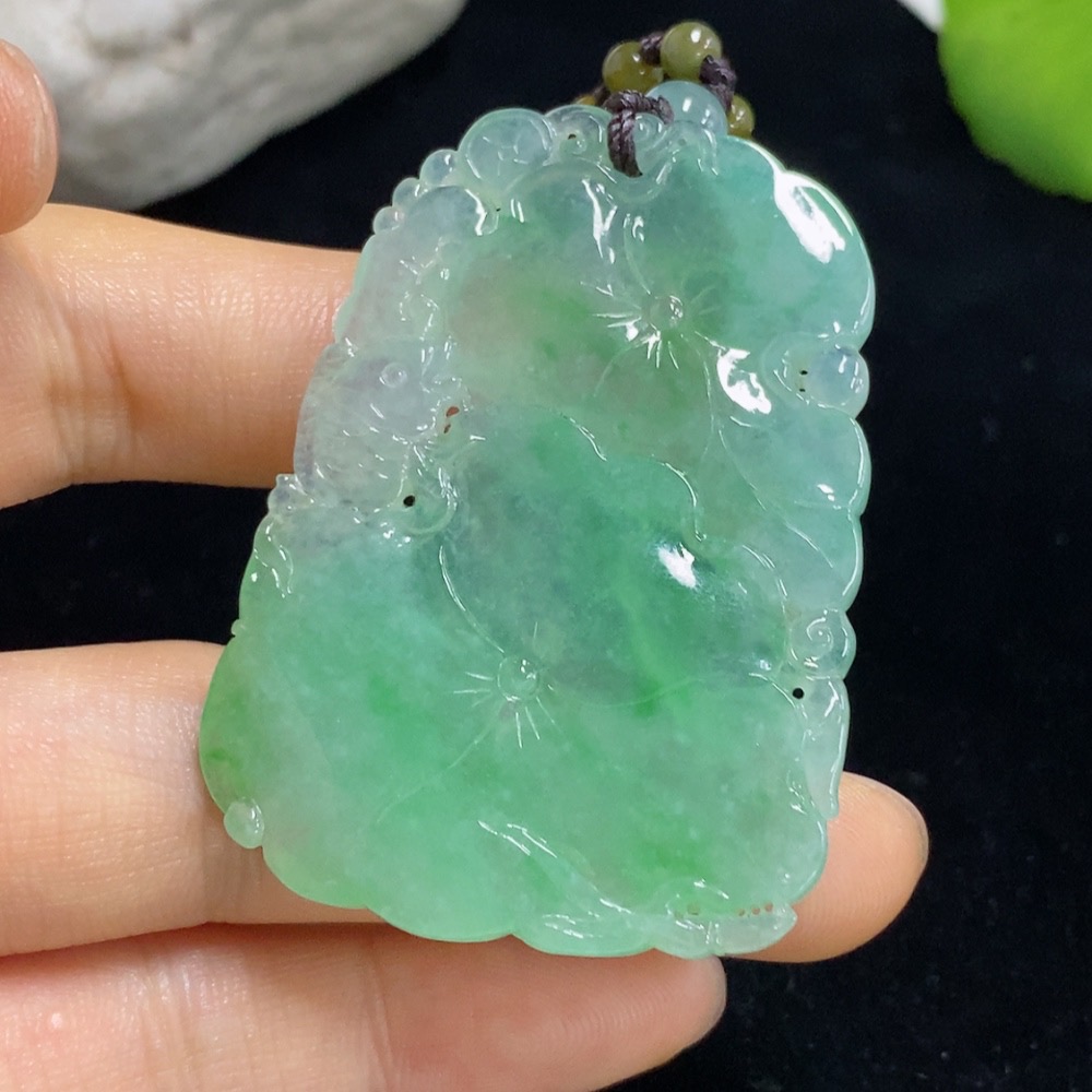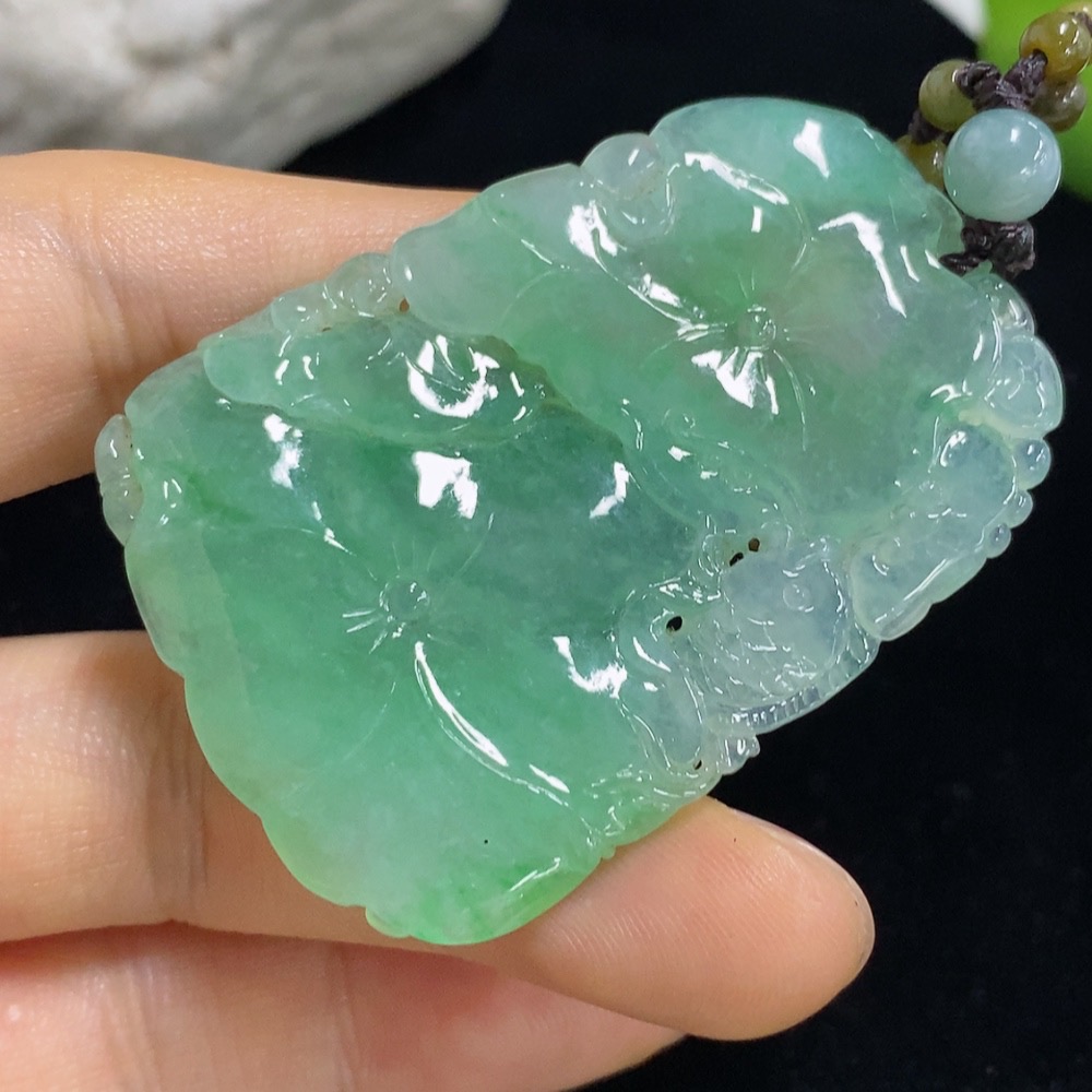 Jadeite Lotus Leaf Fish Pendant Total Weight Approx. 30.46g (Incl. Chain)