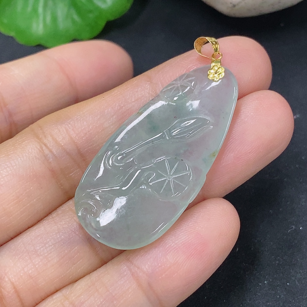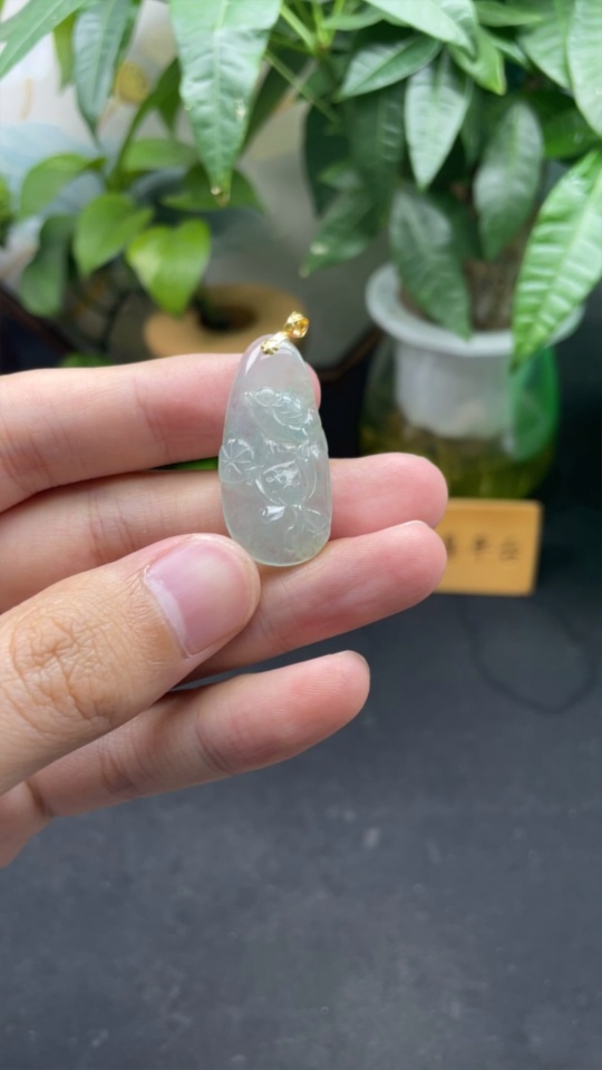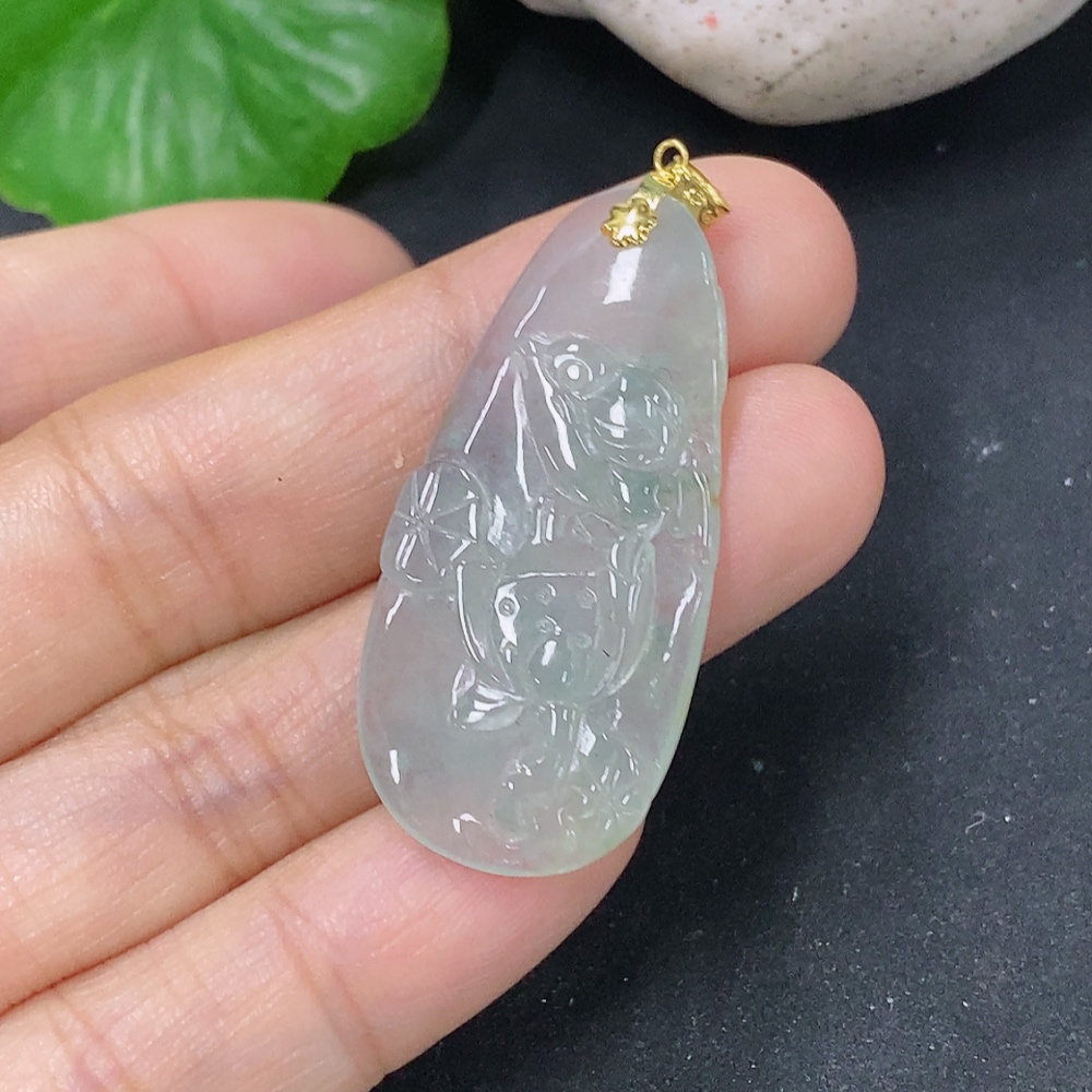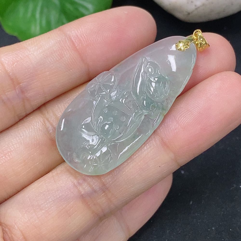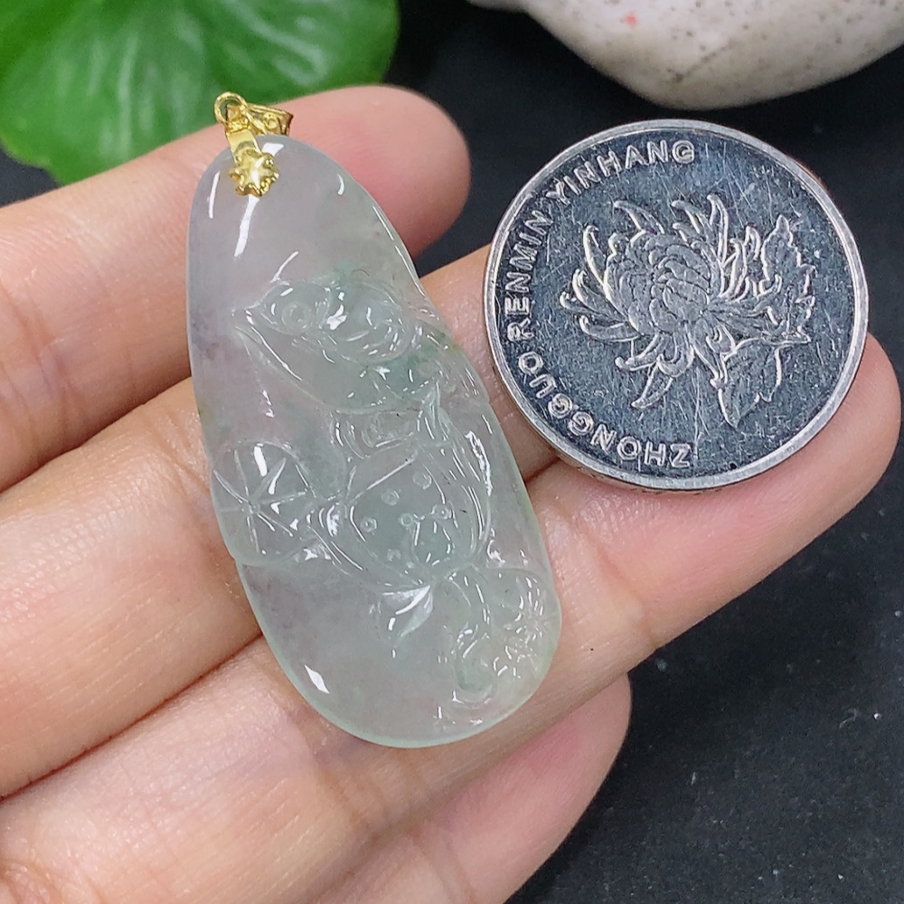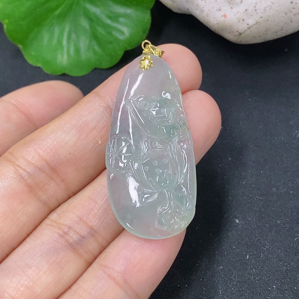 Jadeite Pendant Floral and Bird Plaque 18k Total Weight Approx. 5.34g