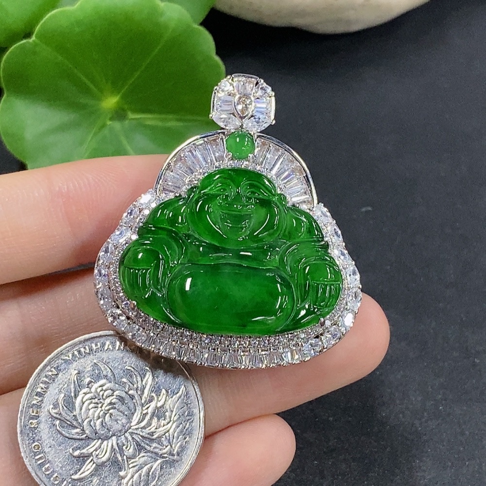 Jadeite Buddha Pendant Inlaid Without Gold Total Weight About 19.82g