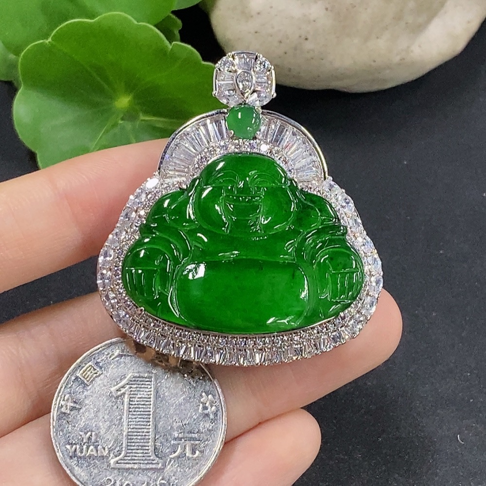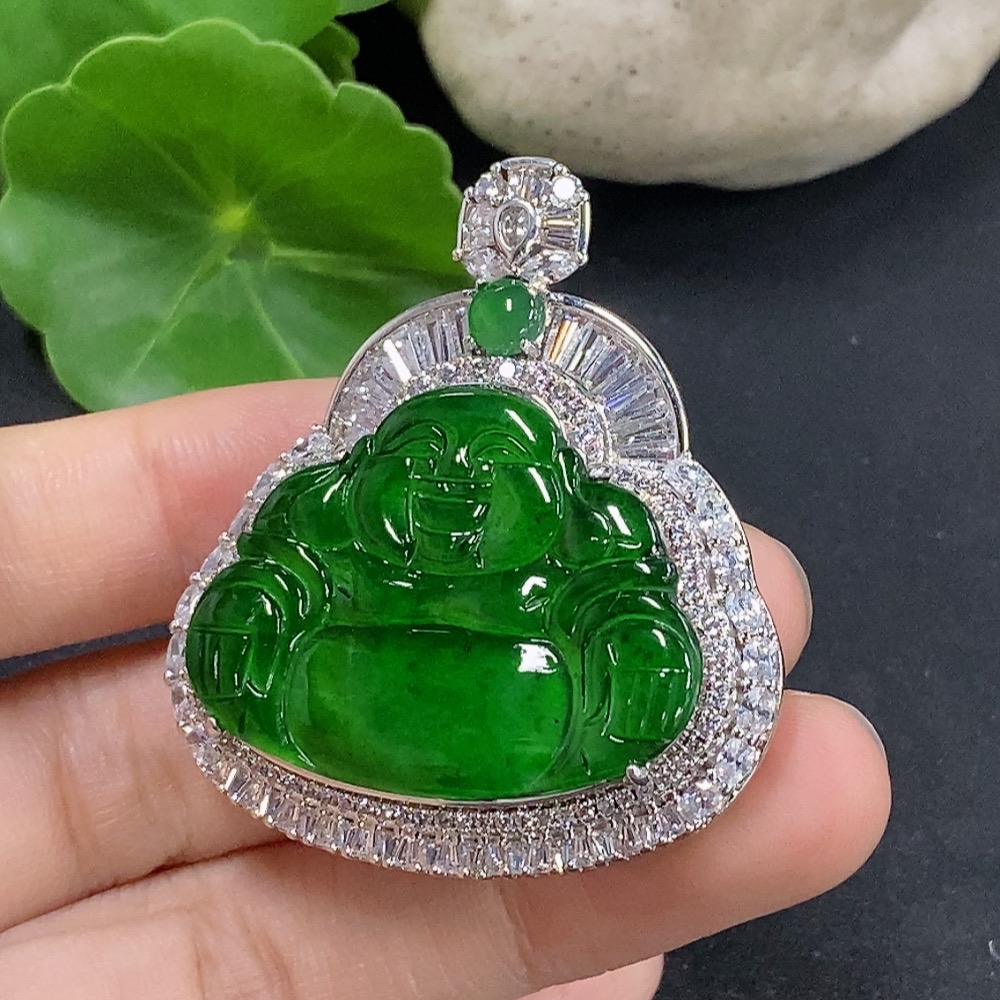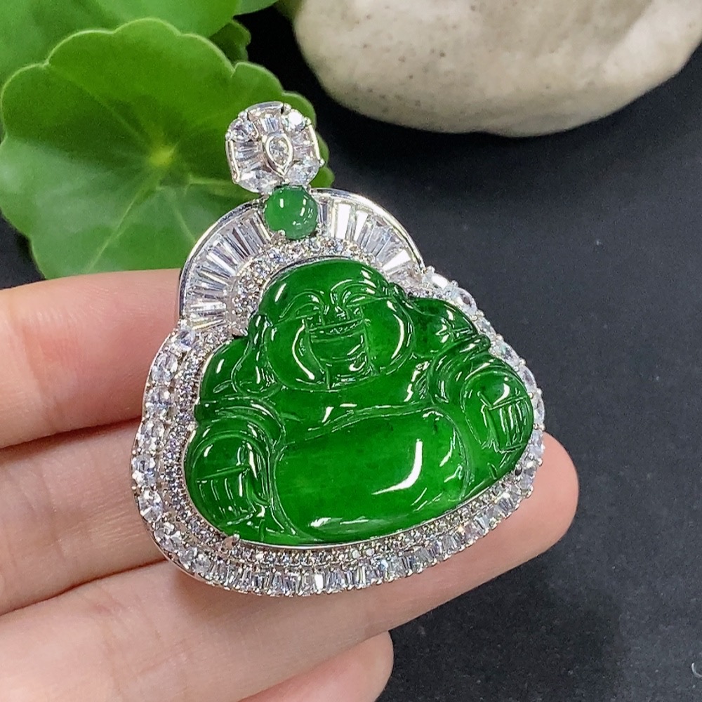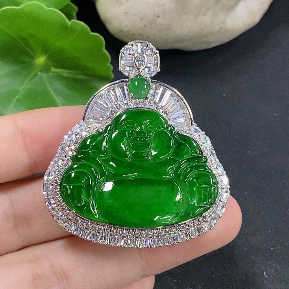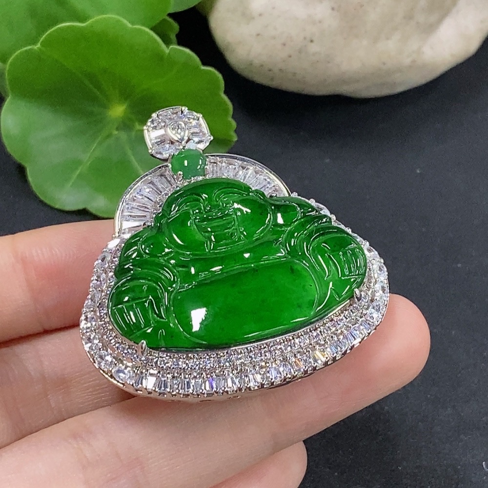 Jadeite Buddha Pendant Inlaid without Gold Total Weight Approx. 24.88g