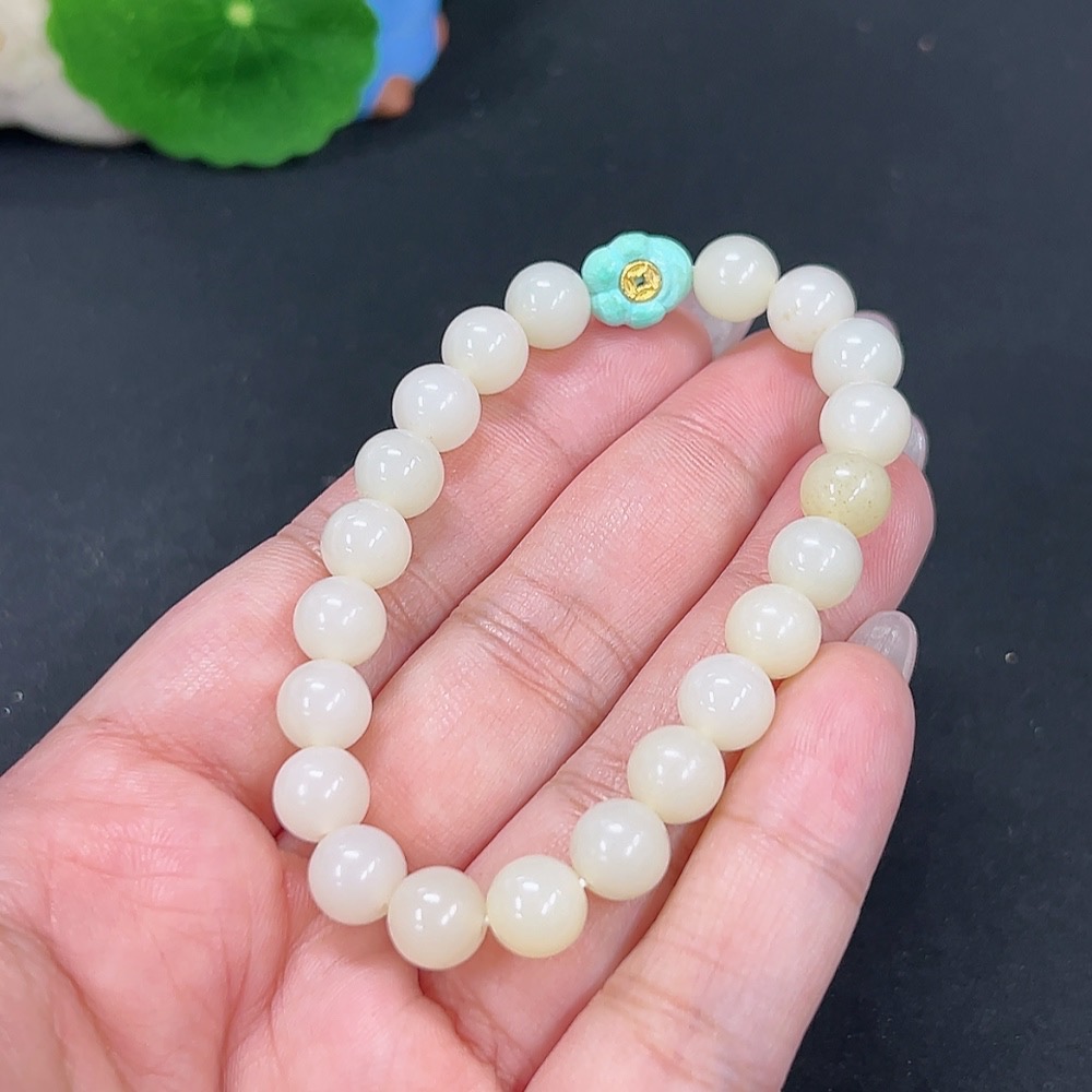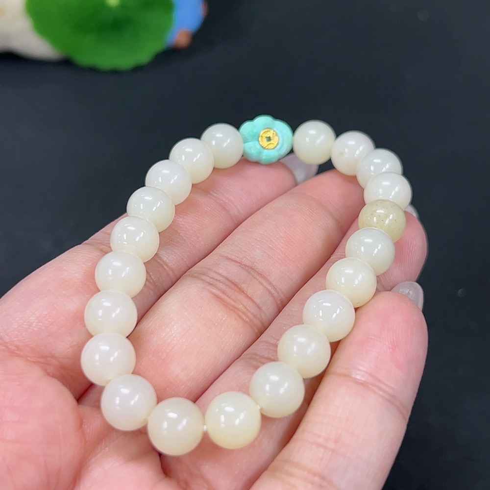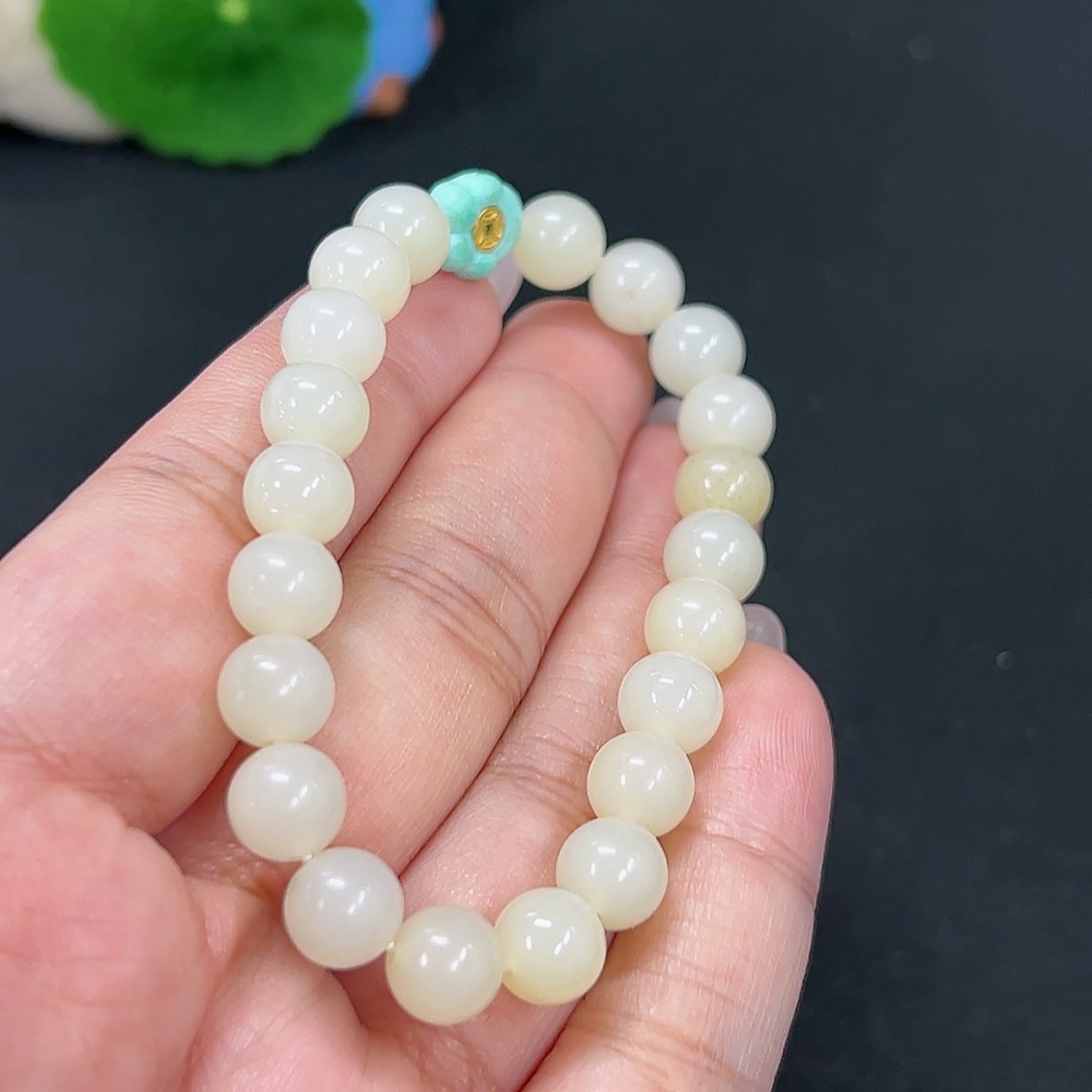Hetian Jade Bracelet, approx. 7.7mm, total weight about 17.2g, with non-Hetian Jade accessory beads, no imprint, tested gold content 18k