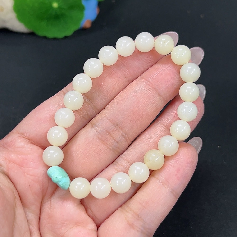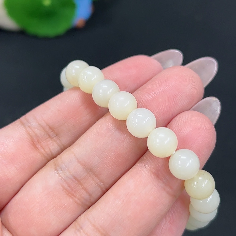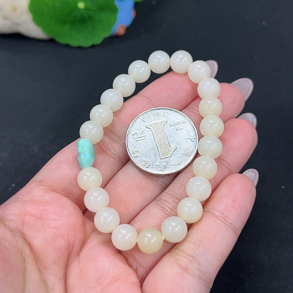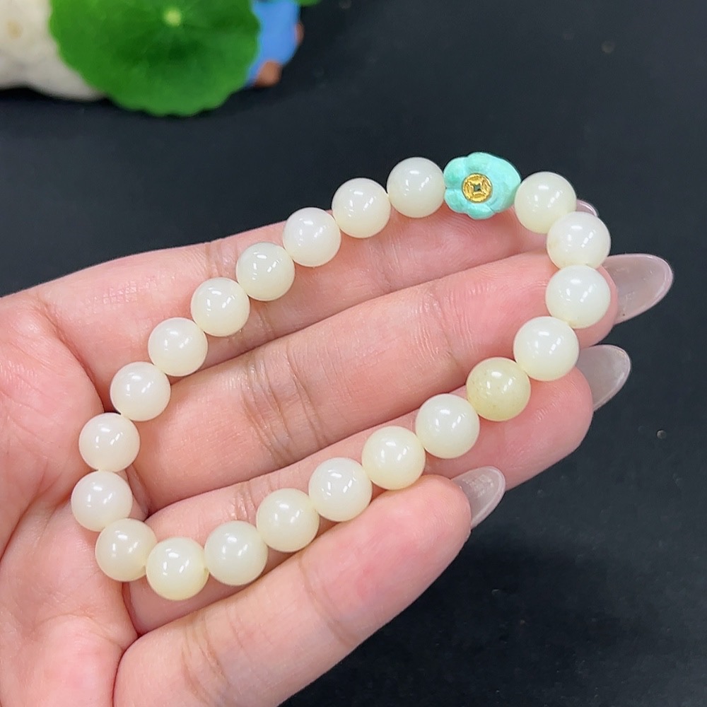 Hetian Jade Bracelet, approx. 7.7mm, total weight about 17.2g, with non-Hetian Jade accessory beads, no imprint, tested gold content 18k