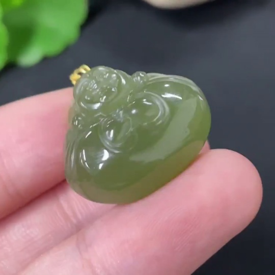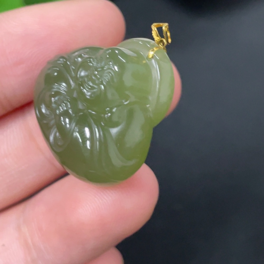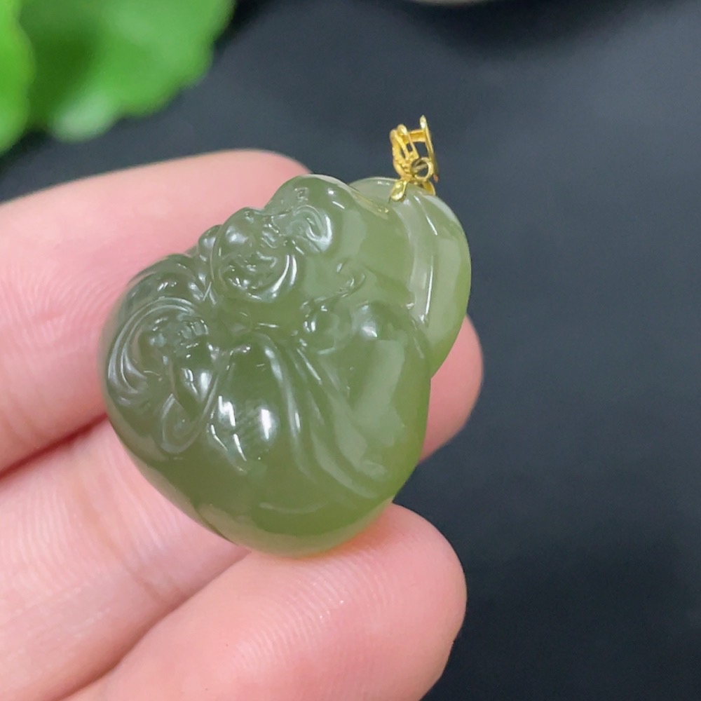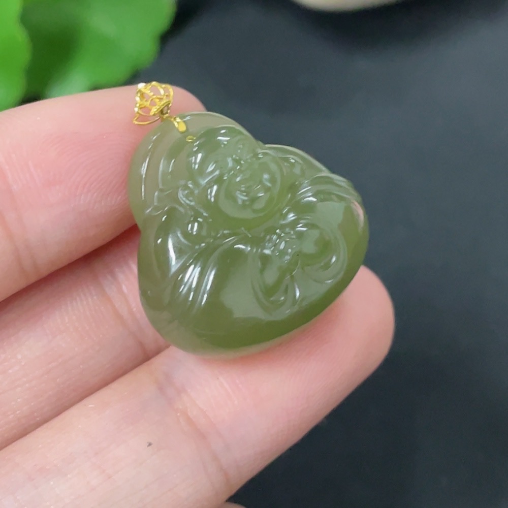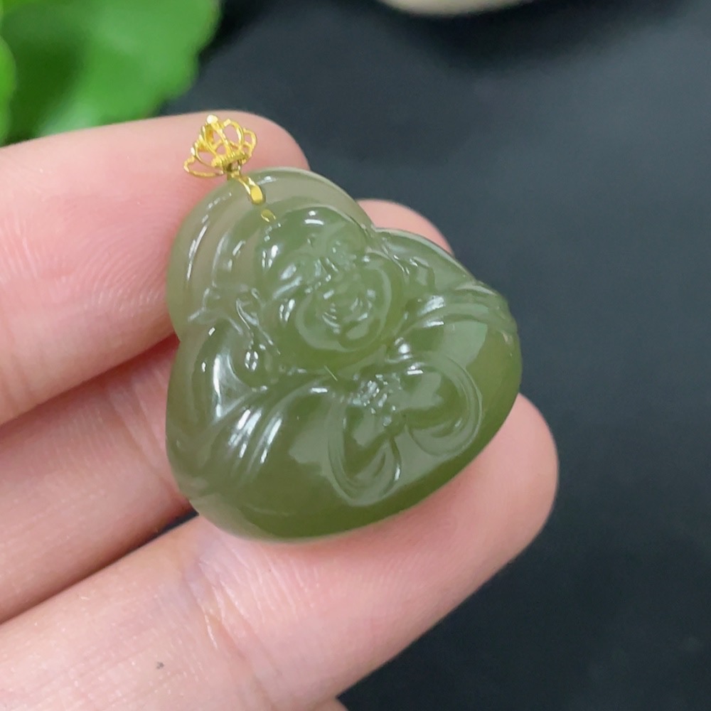 Hetian Jade Pendant - Buddha, 18K Gold, Total Weight Approx. 8.4g