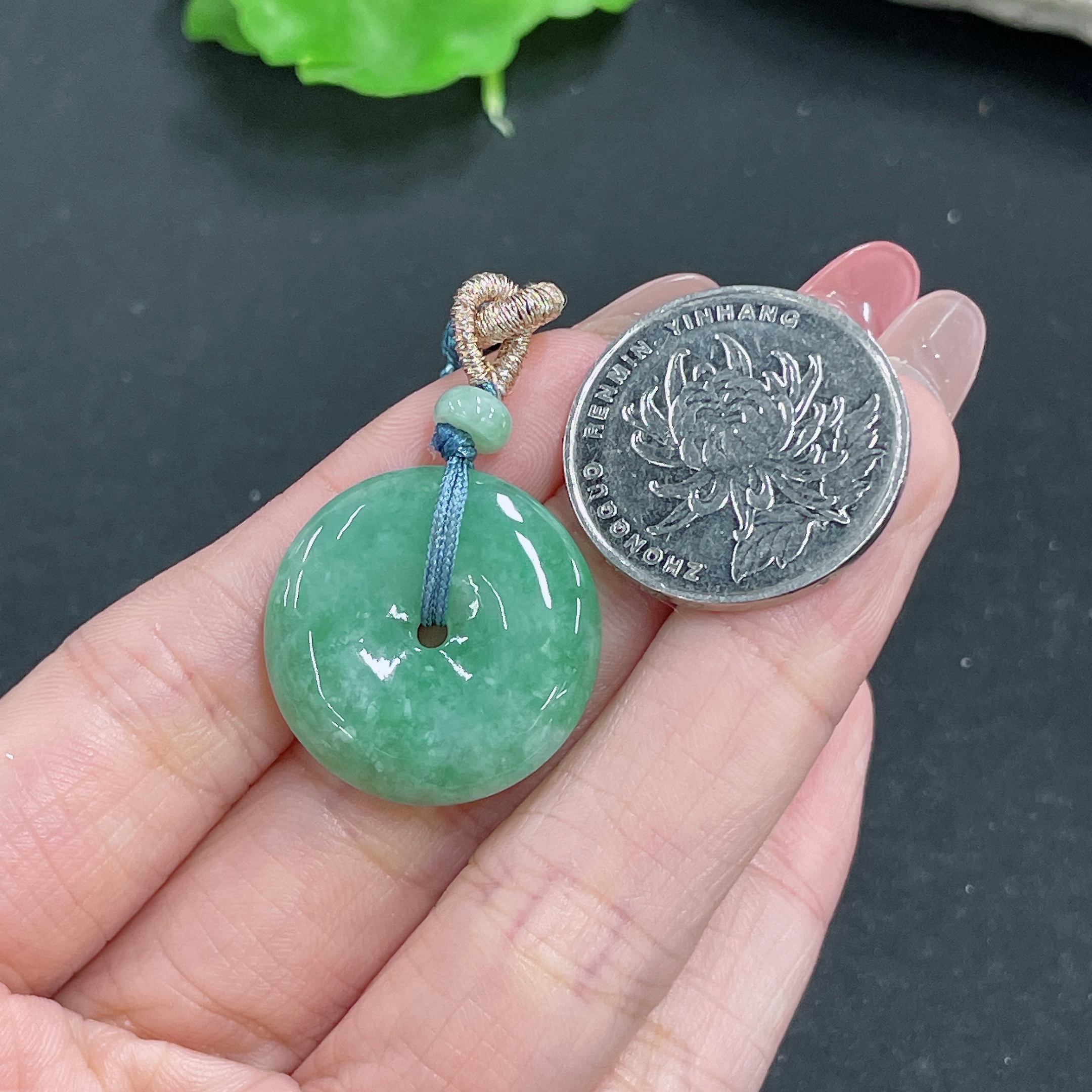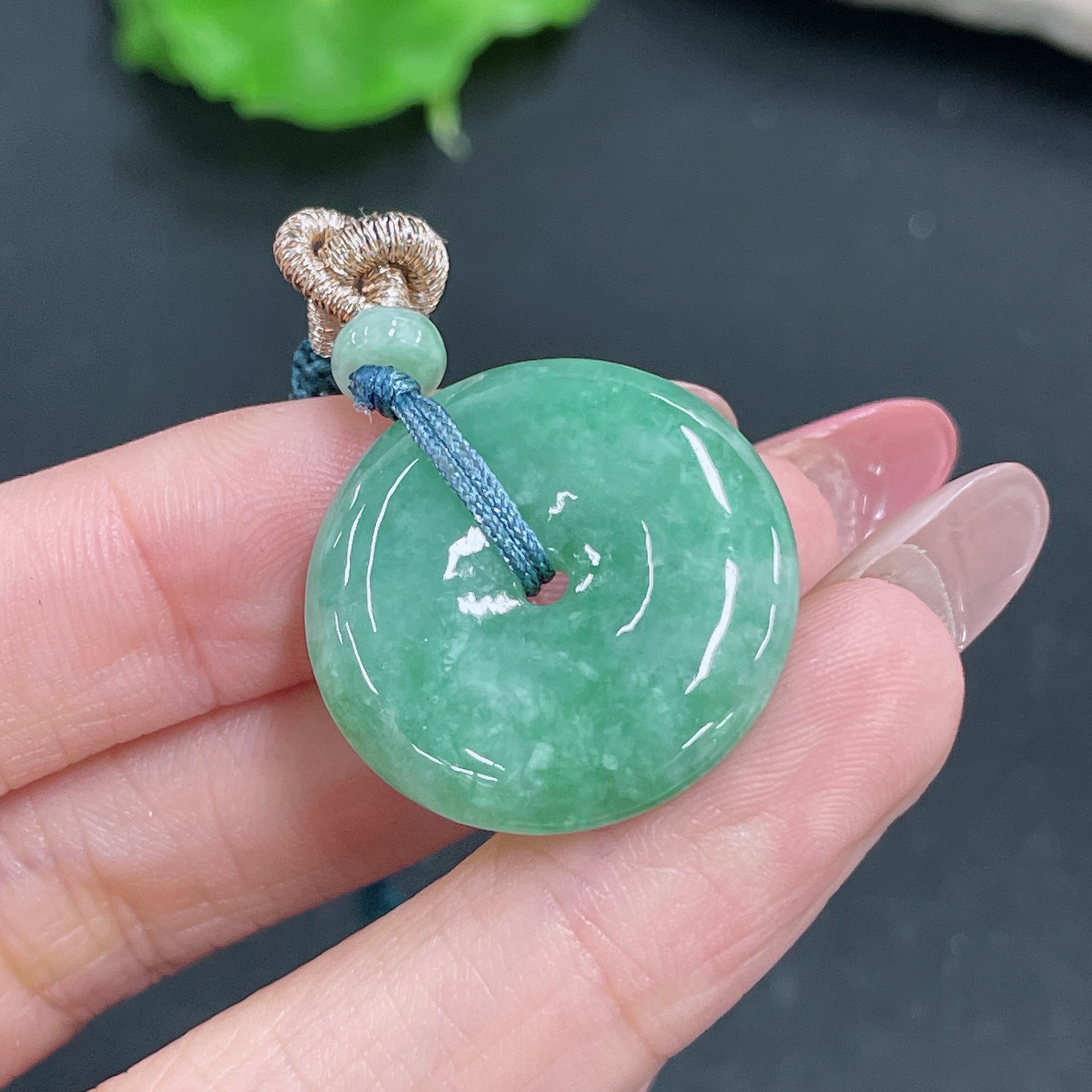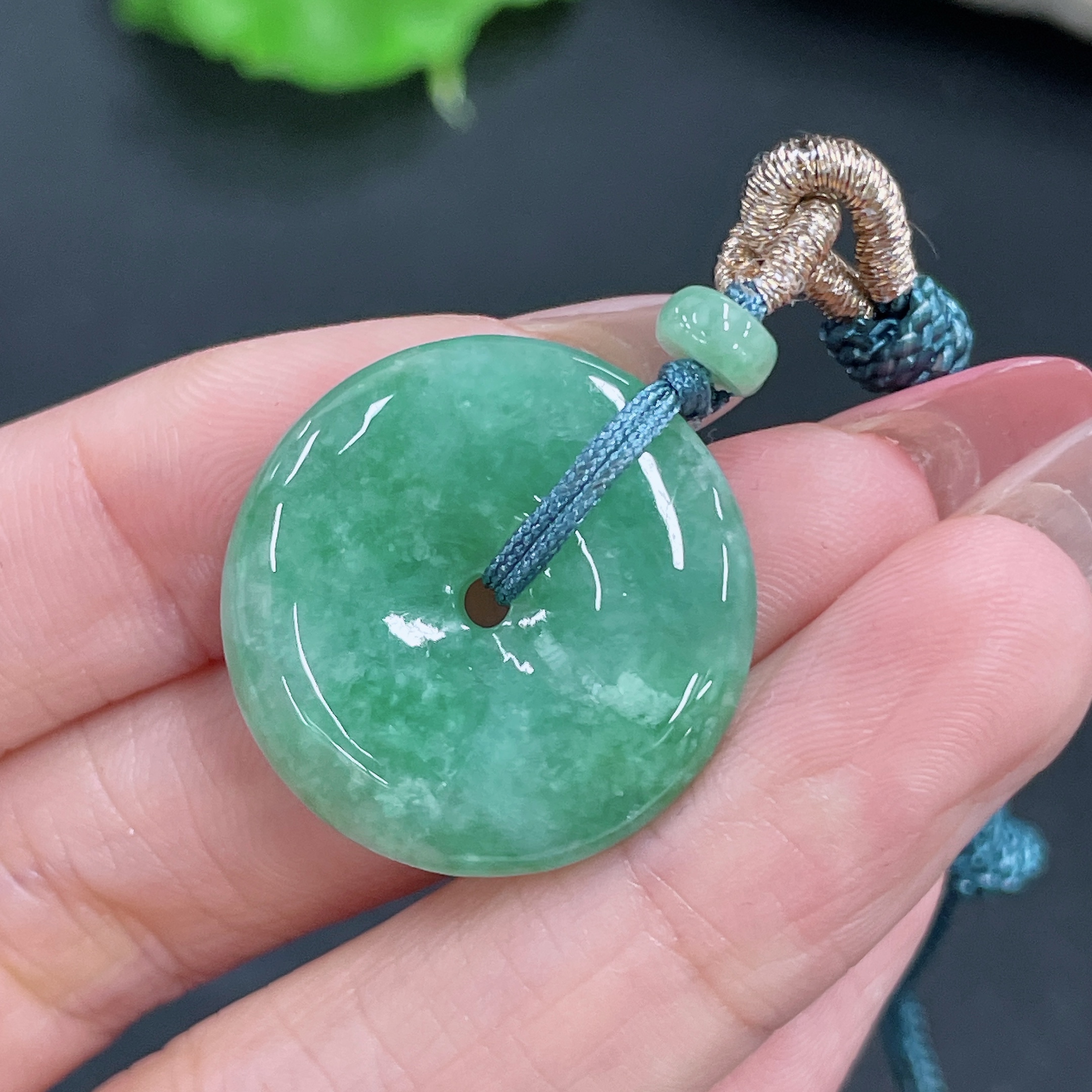 Jadeite Pendant Peace Buckle with Cord Total Weight Approx. 8.34g