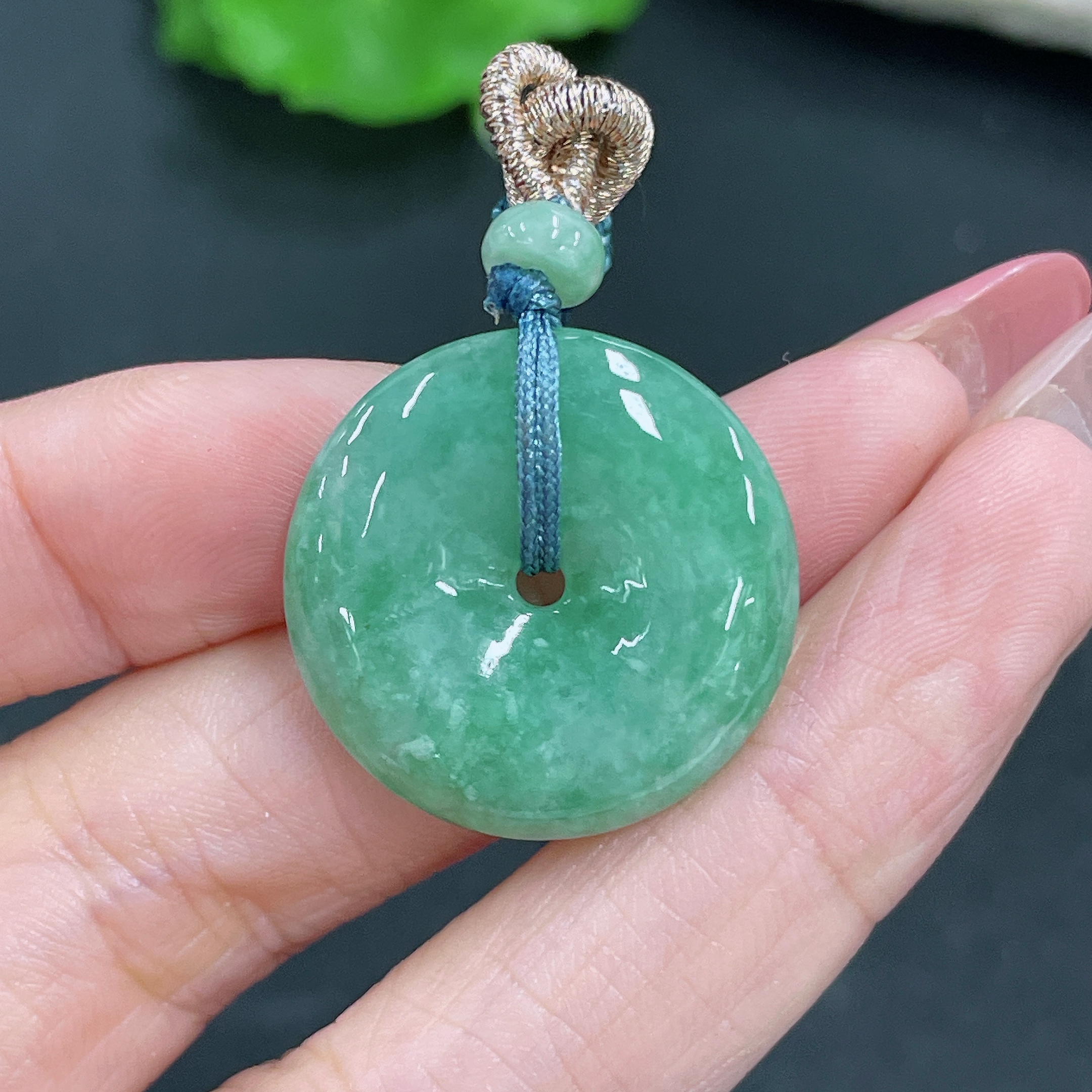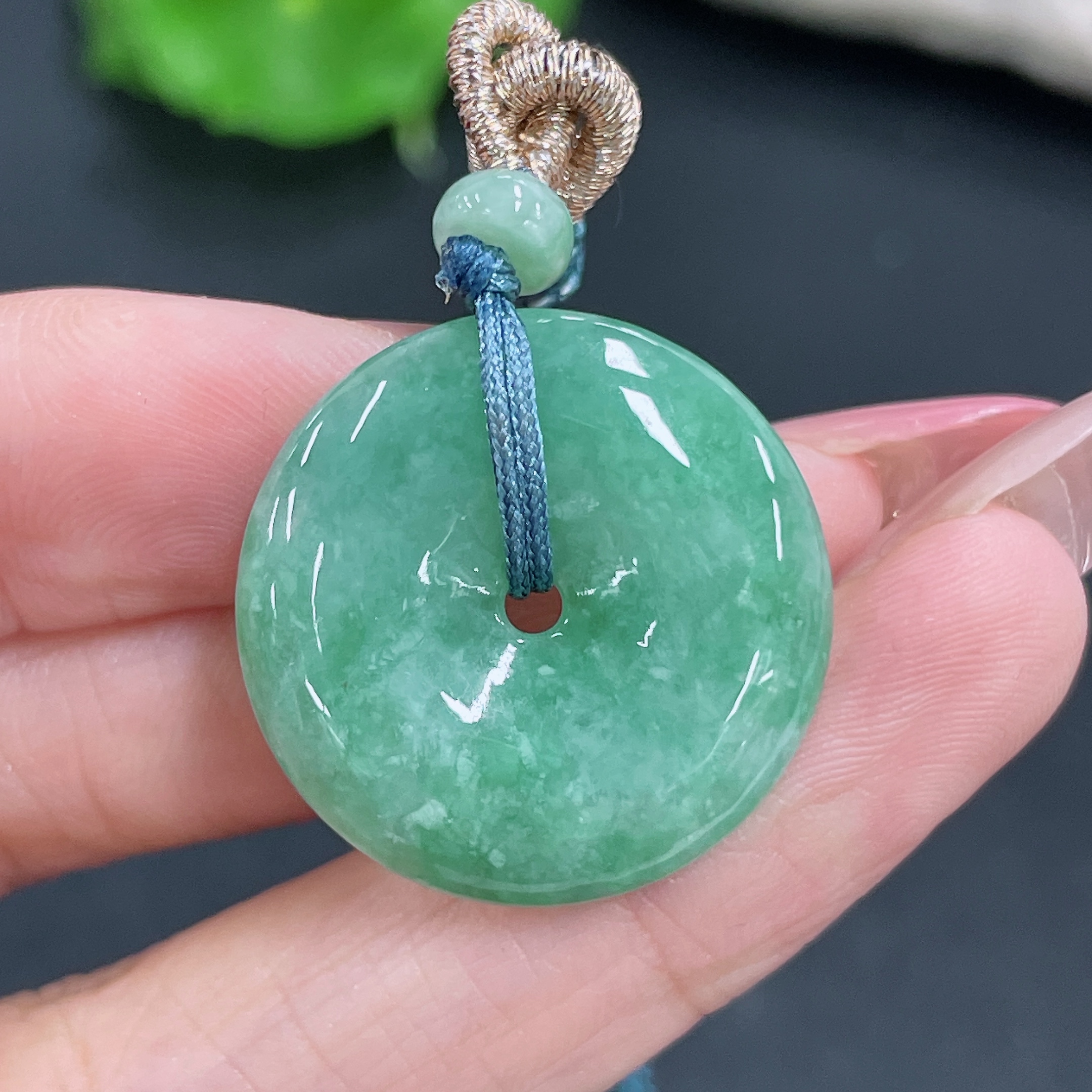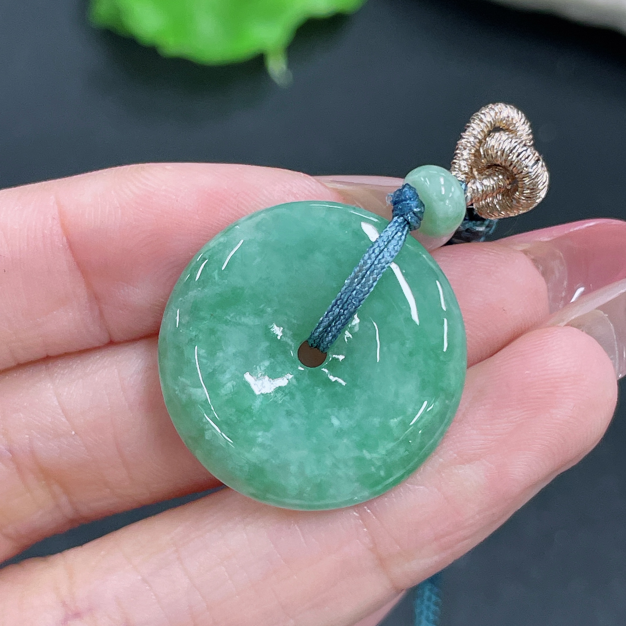 Jadeite Pendant Peace Buckle with Cord Total Weight Approx. 8.34g