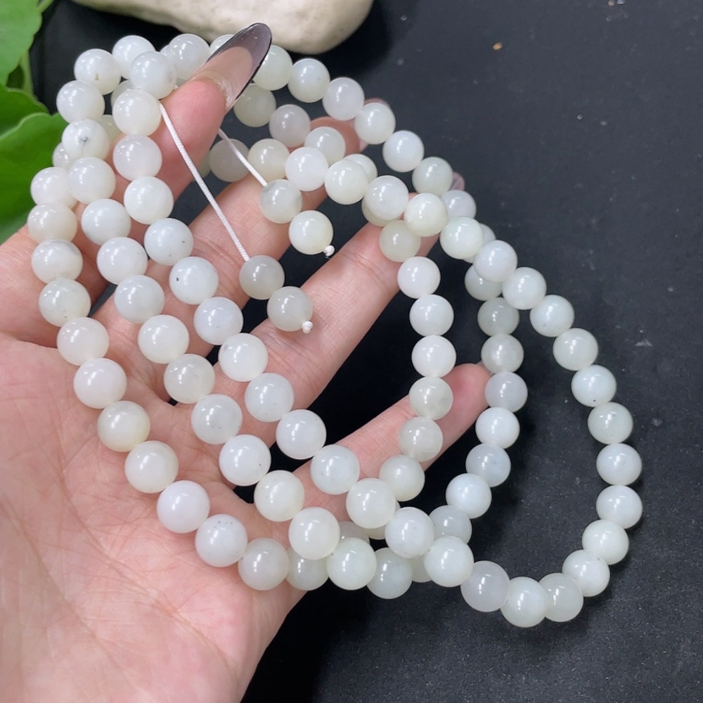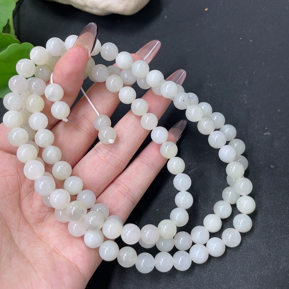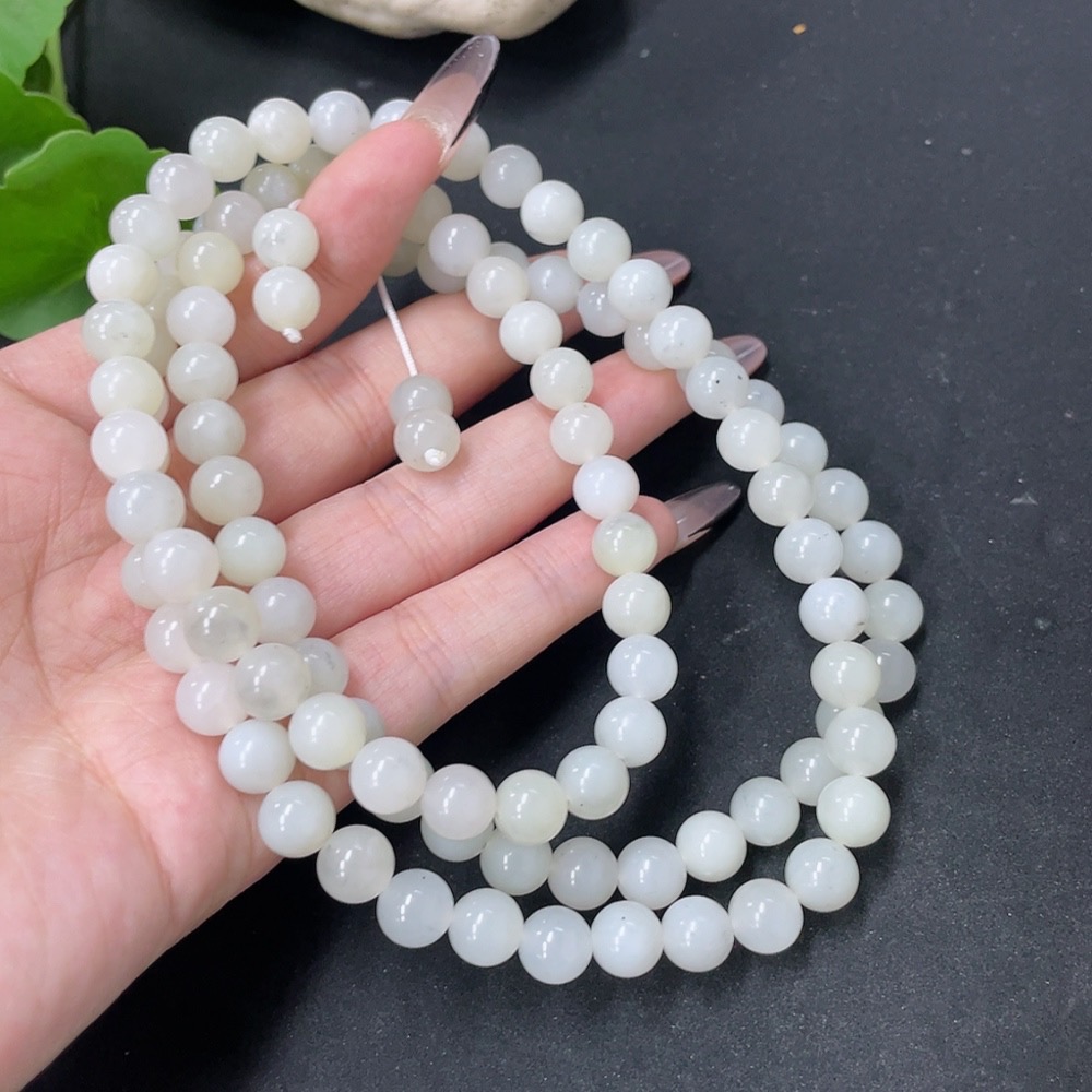 Hetian Jade Bead Necklace Approx. 7.8mm Total Weight Approx. 84.7g