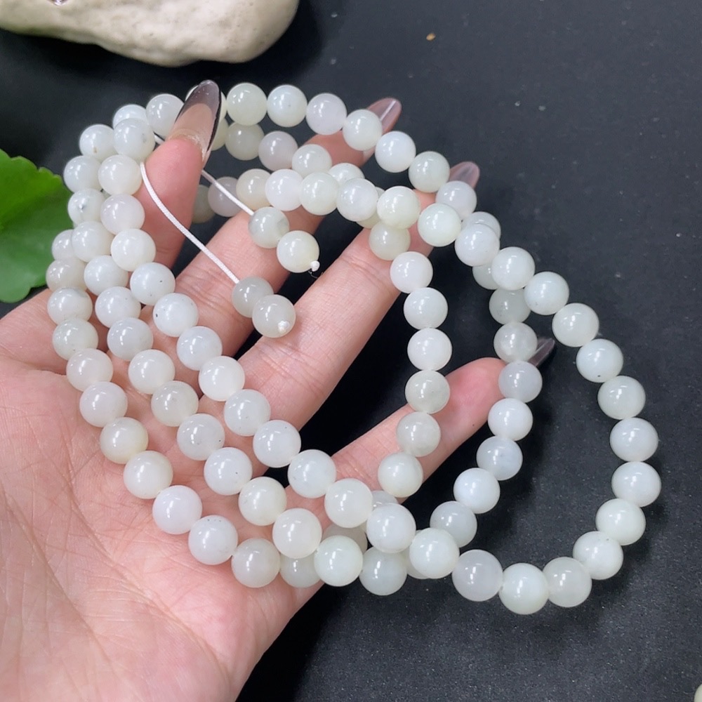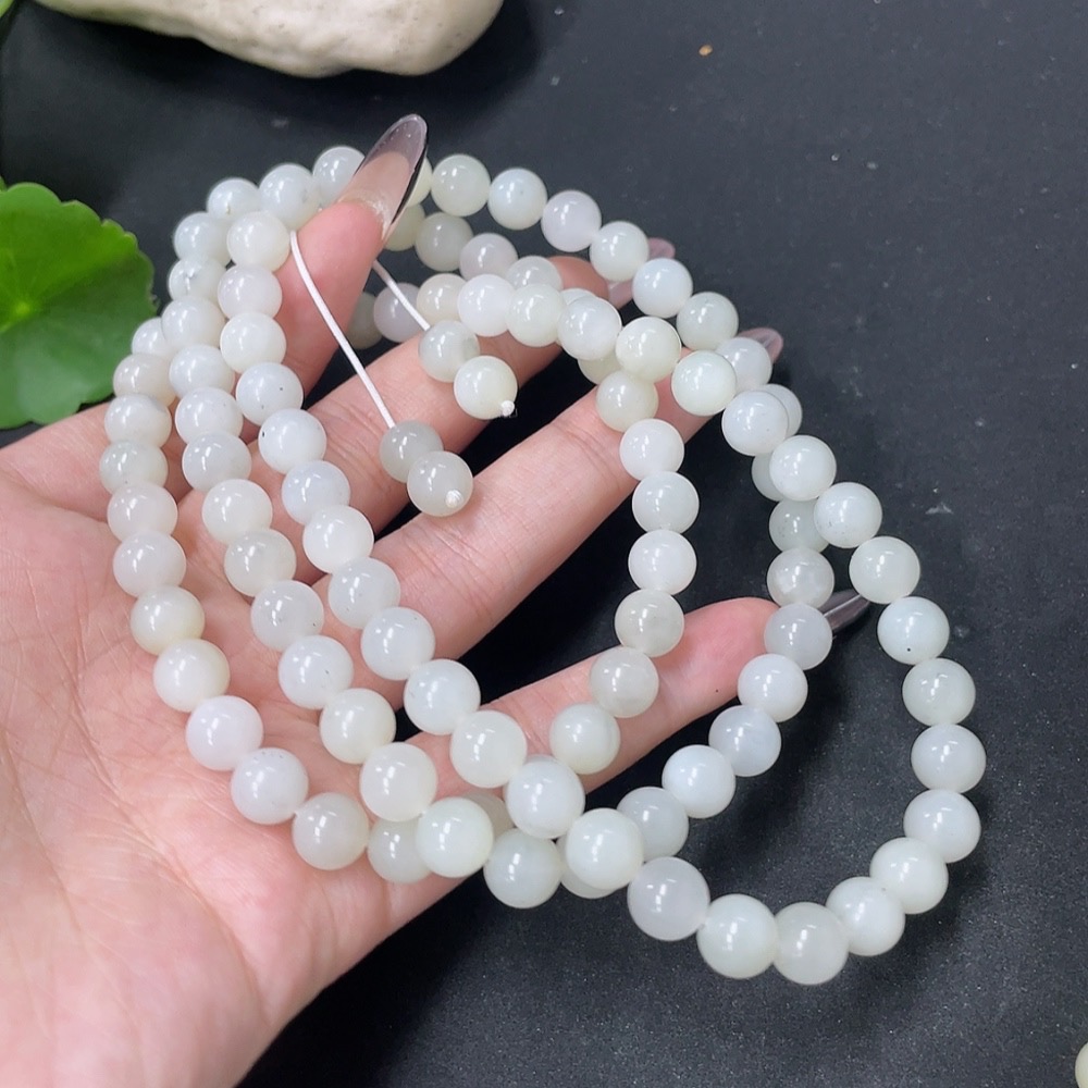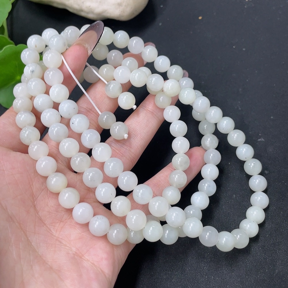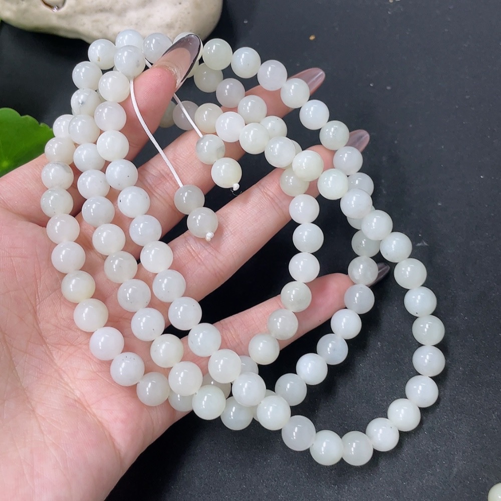 Hetian Jade Bead Necklace Approx. 7.8mm Total Weight Approx. 84.7g
